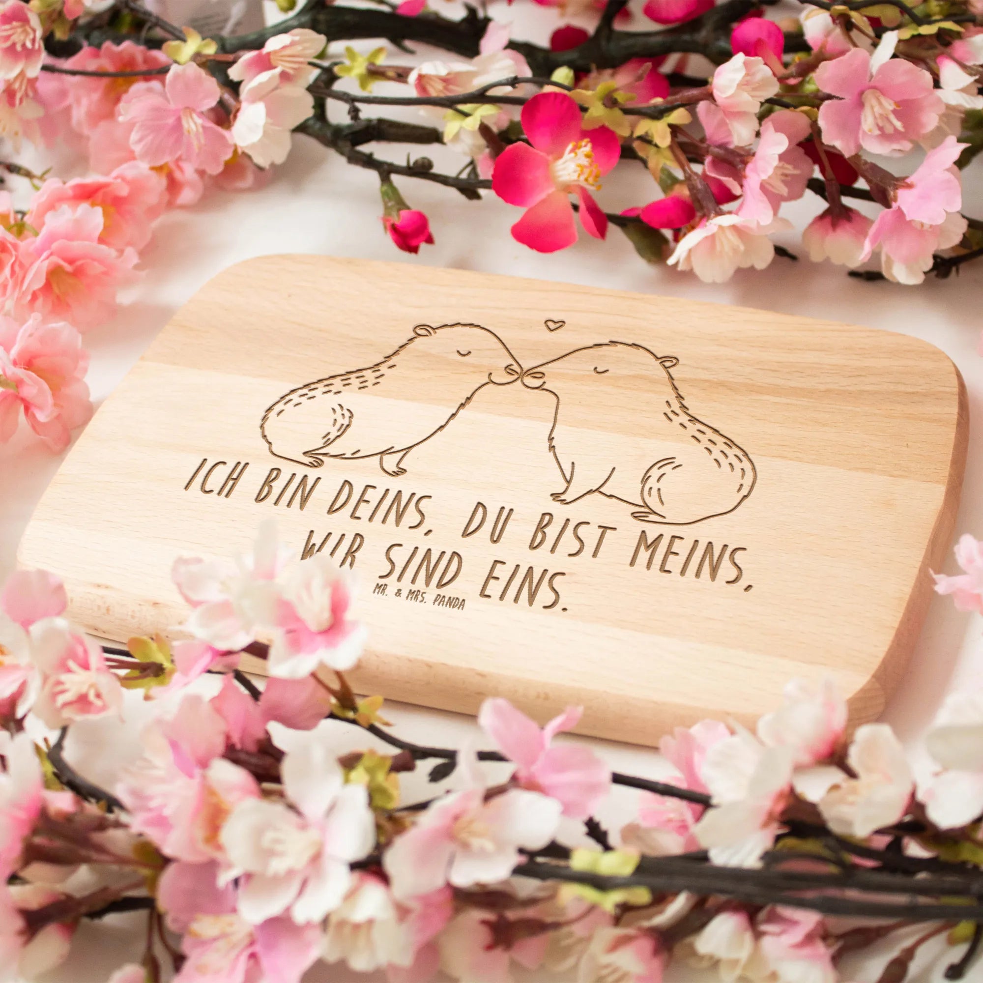 Auf diesem herzerwärmenden Motiv von Mr. & Mrs. Panda sehen wir zwei Capybaras, die ihre Zuneigung auf rührende Weise zeigen. Ihre Nasen berühren sich sanft und formen ein liebliches Herz, das von einem kleinen, roten Herzchen komplettiert wird, das über ihnen schwebt. Die braunen Fellstrukturen der Capybaras sind handgezeichnet und strahlen eine ruhige, glückliche Stimmung aus. Der liebevolle Spruch 'Ich bin deins, du bist meins, wir sind eins.' rundet das Bild perfekt ab und macht es zu einem idealen romantischen Geschenk für verschiedene Anlässe wie Jahrestage, Valentinstage oder Hochzeitstage. Dieses sanfte und friedliche Motiv erinnert jeden Tag daran, wie schön es ist, einen besonderen Menschen an seiner Seite zu haben.
