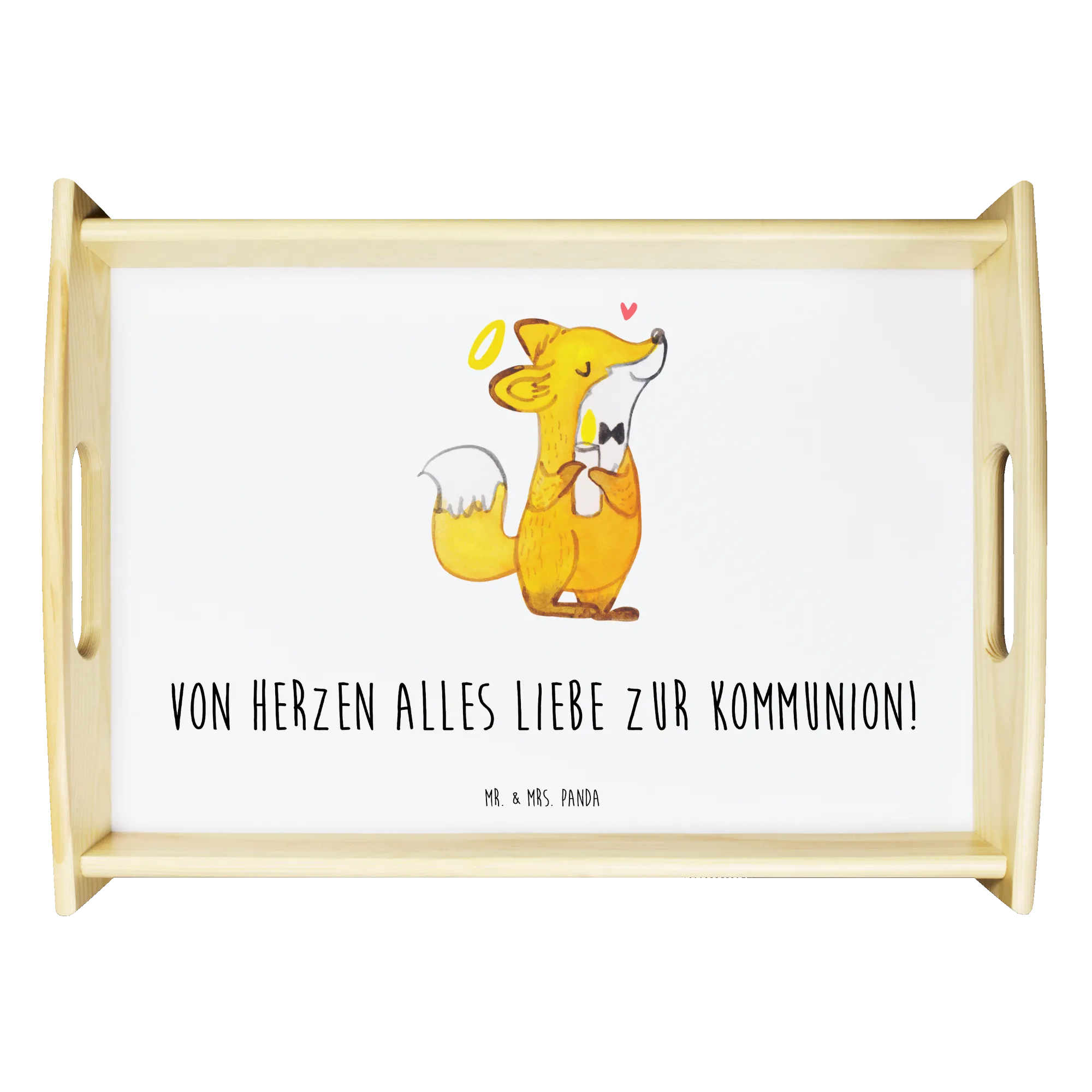 Discover the playful charm of our little fox, holding a glowing candle and adorned with a halo. This joyful motif is a beautiful representation of Communion, a day where faith intertwines with love and gratitude. Our fox symbolizes the glory of belief and the warmth of community during these special moments. With the saying 'Von Herzen alles Liebe zur Kommunion!' encapsulating the spirit of the day, this design serves as a perfect reminder to cherish and celebrate the connections we hold dear. Whether gifted or kept as a memento, let this fox inspire you to shine your light, just as he does, on such a meaningful occasion.
