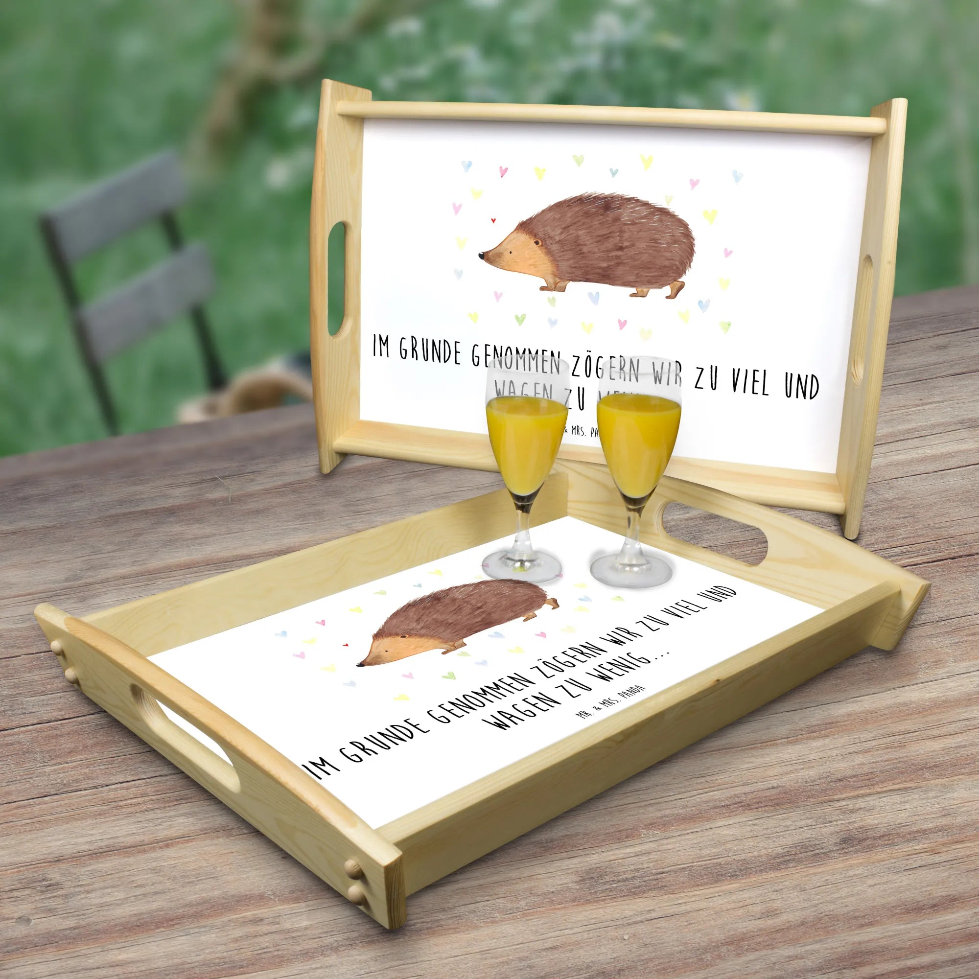 Serving tray Hedgehog hearts - with saying - White