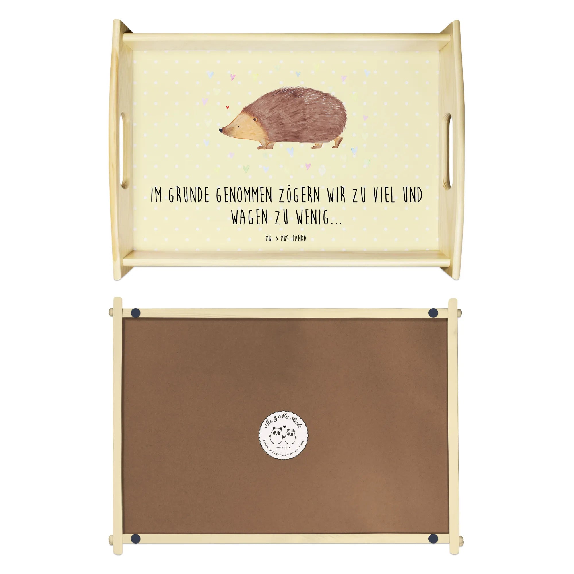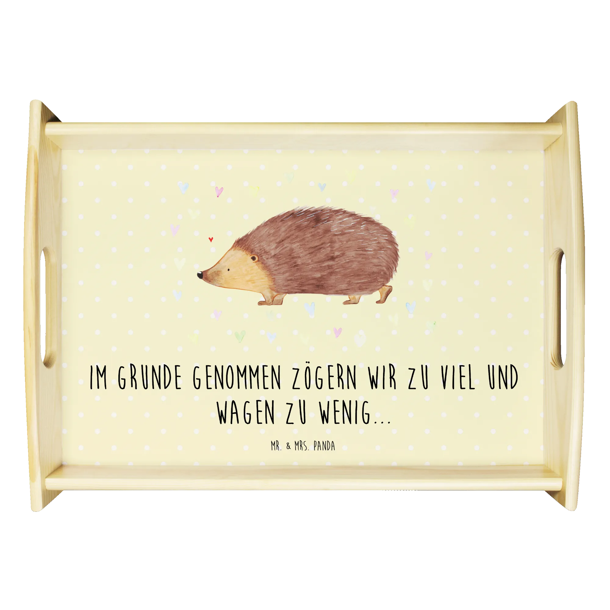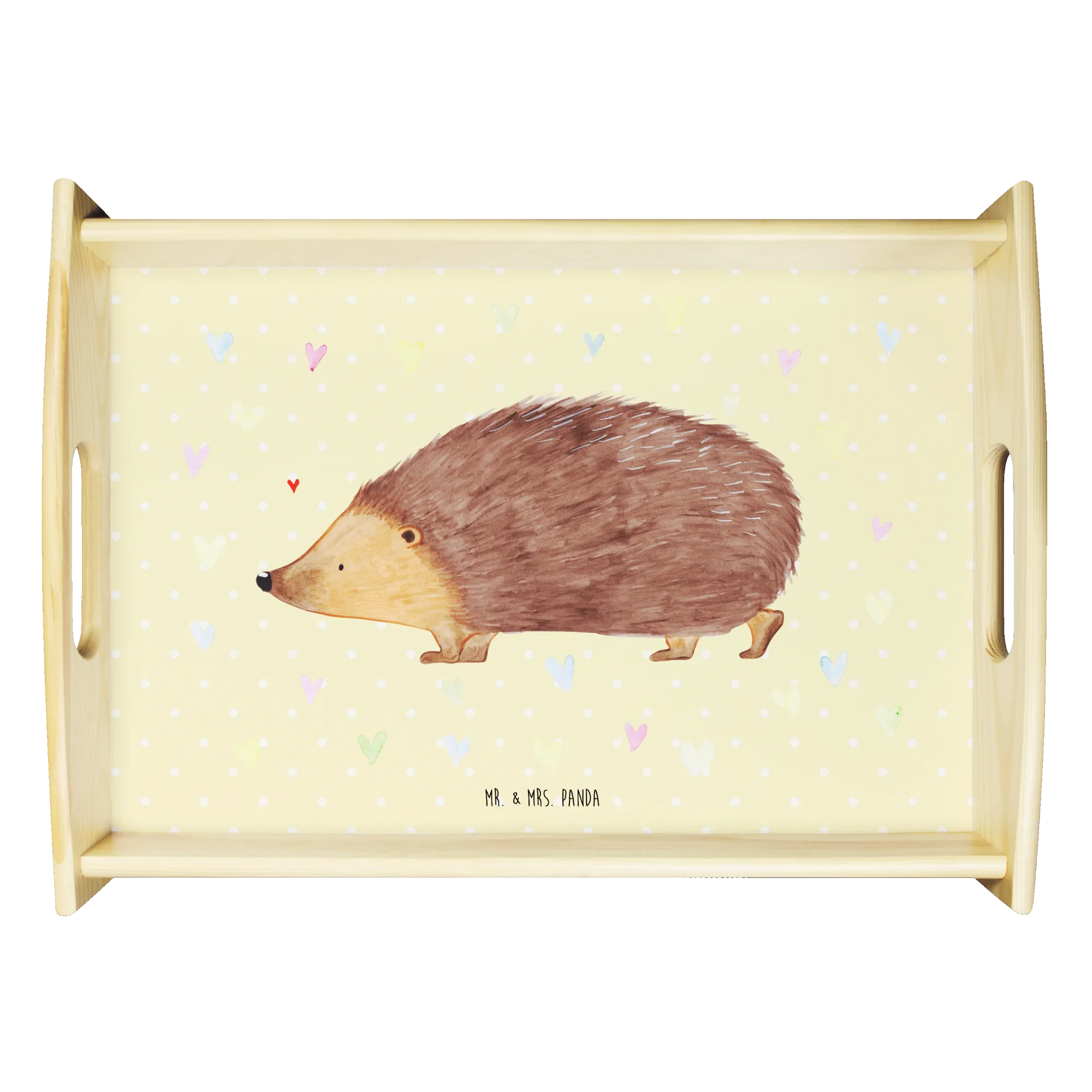 As part of the Small World collection, which showcases a variety of whimsical motifs, this serving tray is a reflection of the joyful spirit of Mr. & Mrs. Panda. The lovely hedgehog and colorful hearts symbolize trust, love, and life itself. It’s a gentle reminder to embrace the small, joyful moments that bring happiness into our busy lives.