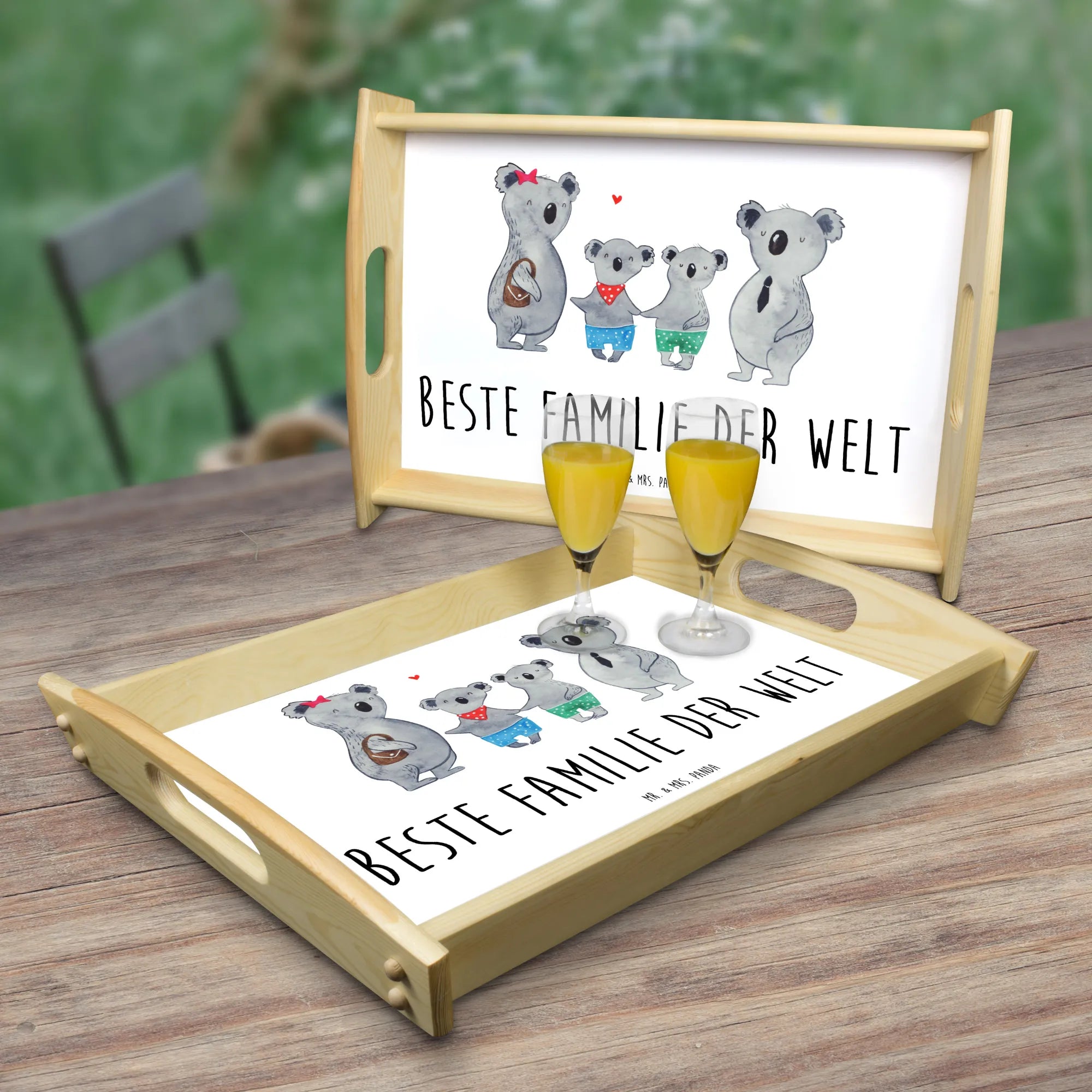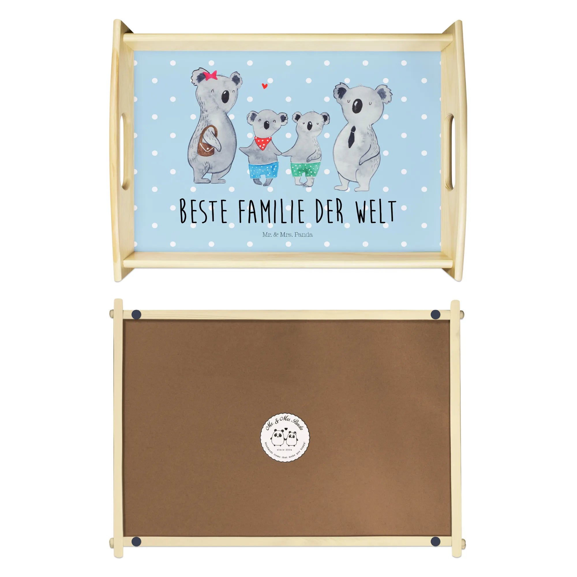Serving tray Koala family with two kids - with saying - White
