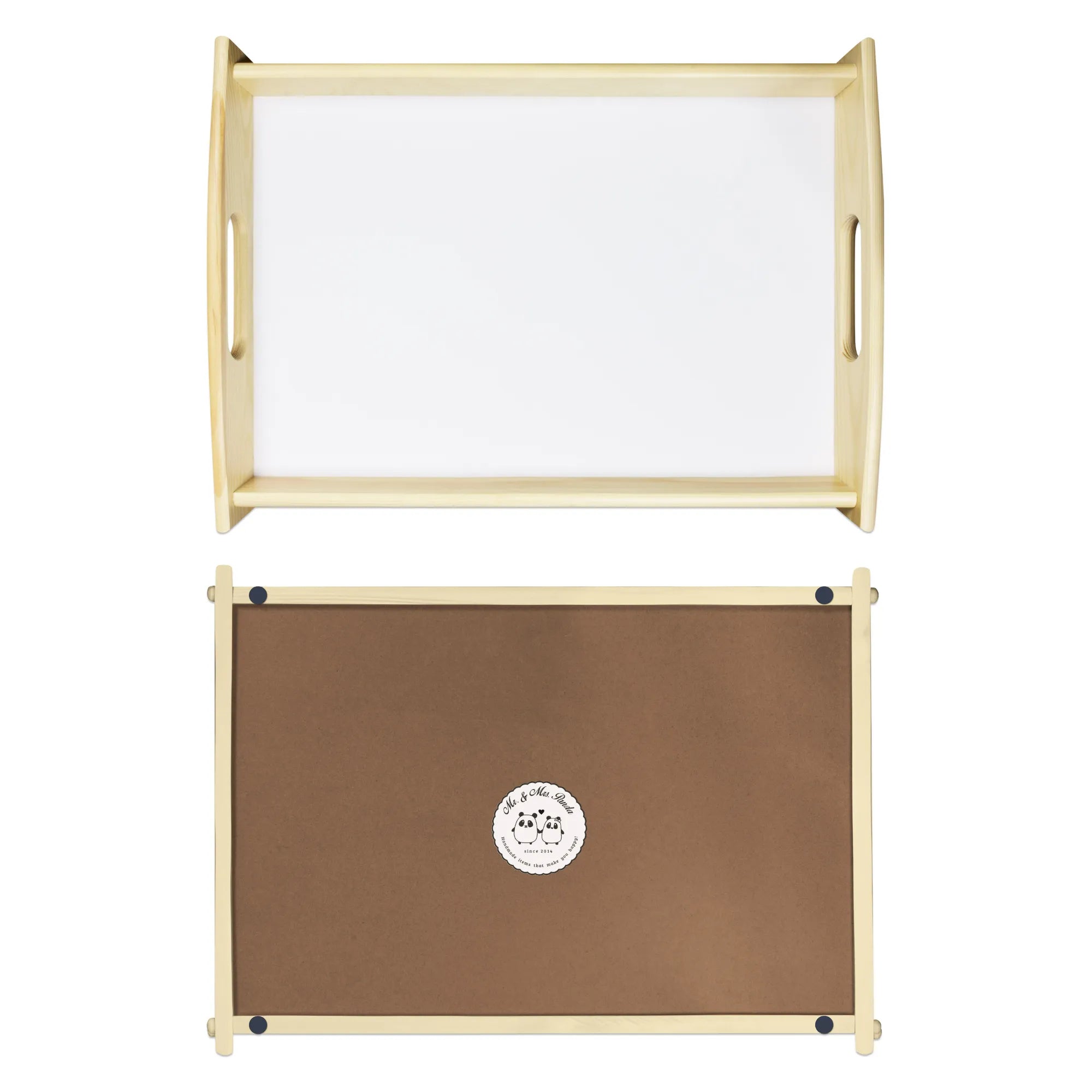 🐼 Durable, scratch-resistant wood tray with easy-carry handles.