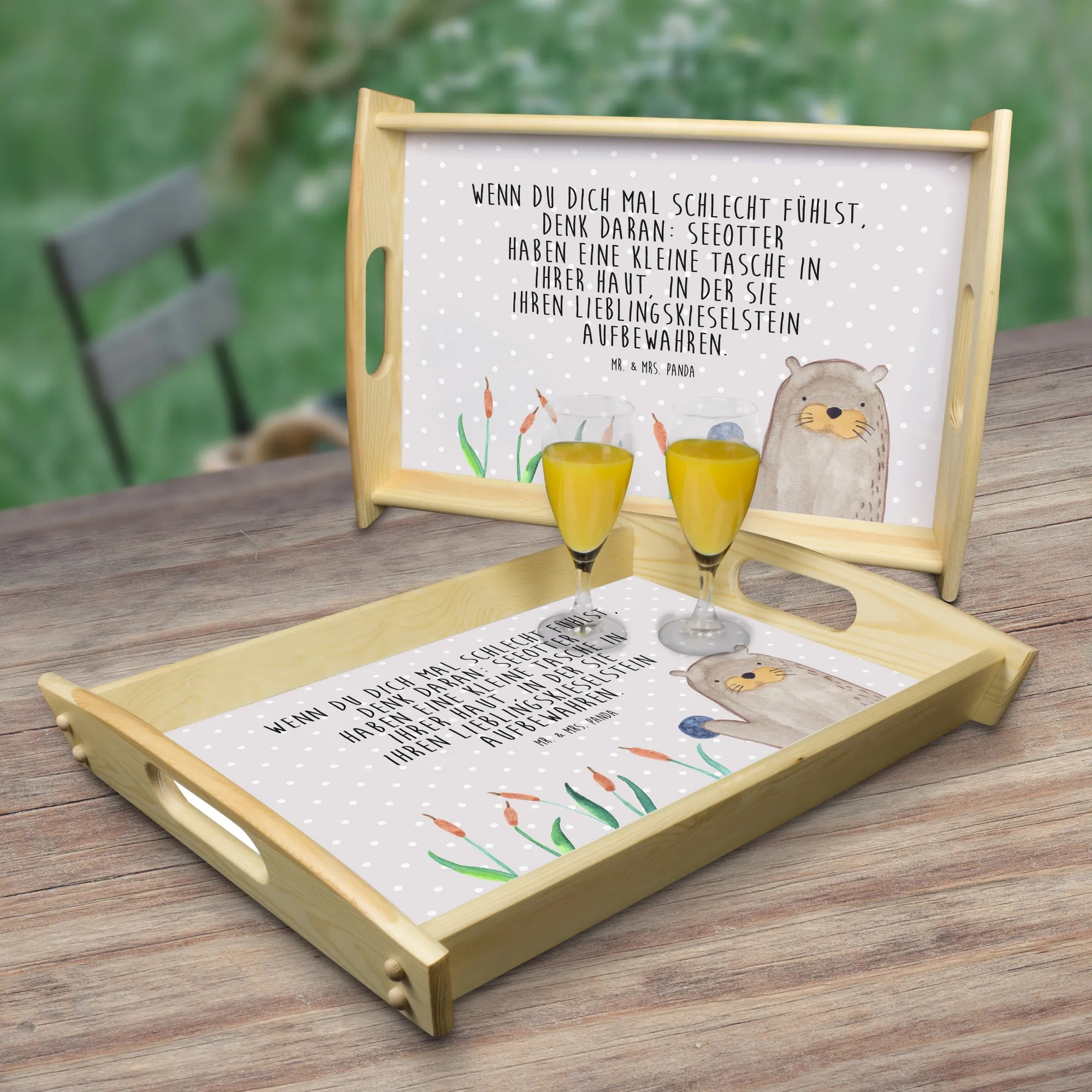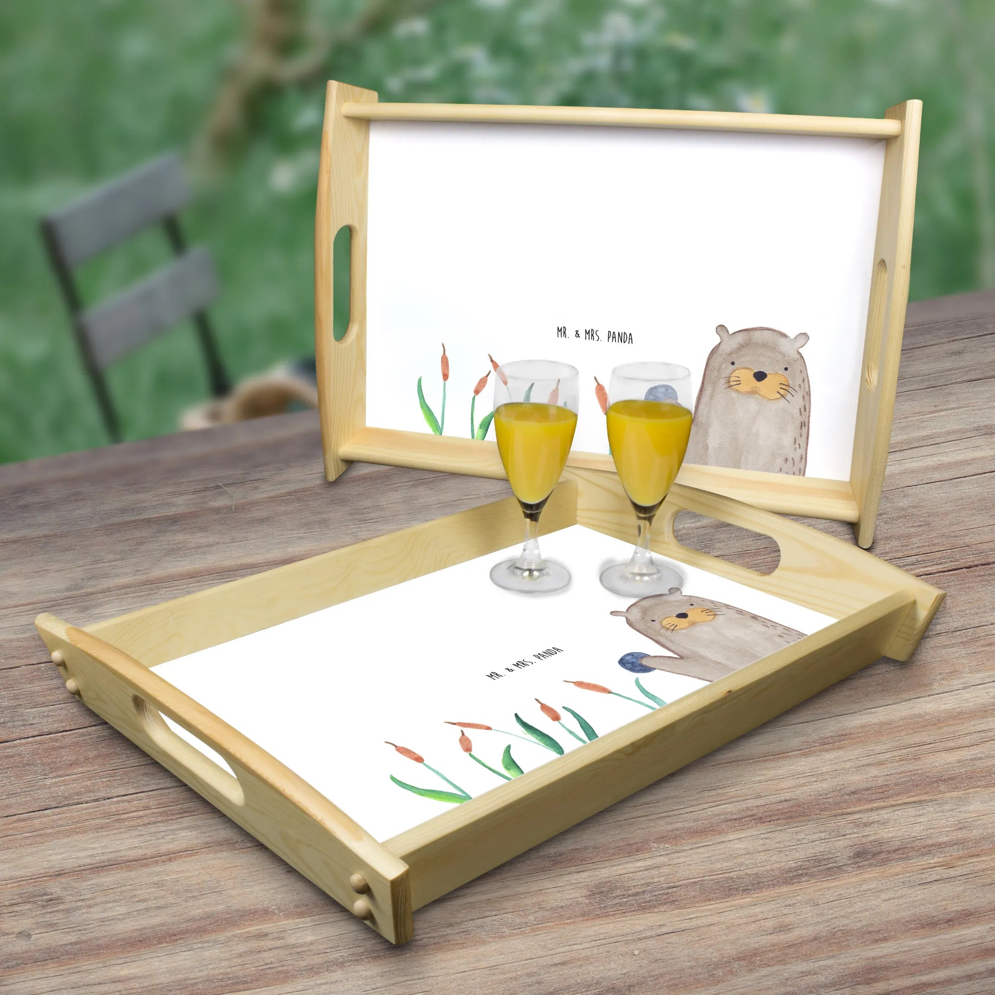 Ein ideales Geschenk: Suchst du ein Otter Geschenk, ein hübsches Holztablett oder ein Frühstückstablett als Präsent zum Einzug, Geburtstag oder einfach so? Dieses Tablett zaubert ein Lächeln und passt perfekt zu Otter Deko und Tierliebhabern. Es ist nicht personalisierbar, dafür aber einzigartig gestaltet von Mr. & Mrs. Panda.