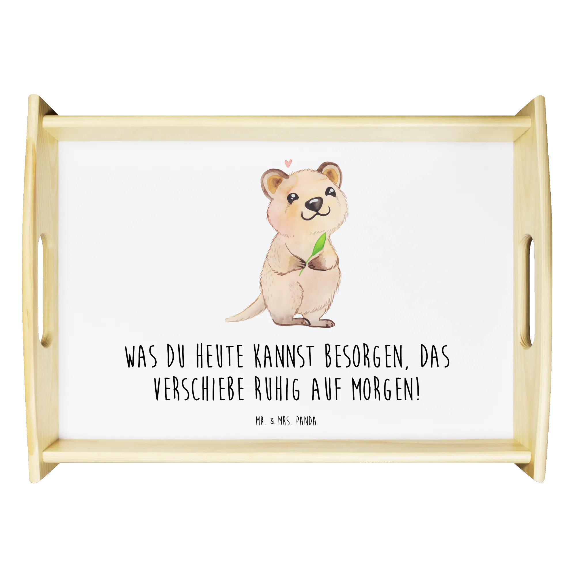Meet our whimsical Quokka, a little creature that’s bursting with happiness! Its captivating smile, holding a green leaf, is a gentle reminder to embrace contentment in life. Floating above is a soft pink heart, embodying the warmth and love that surrounds us. The saying, 'Was du heute kannst besorgen, das verschiebe ruhig auf morgen!' perfectly highlights the Quokka's philosophy on living. It’s a playful nudge to remind us not to stress about what’s on our checklist, but to focus instead on the joys in the here and now. Let this delightful Quokka inspire you to let go and enjoy the ride!