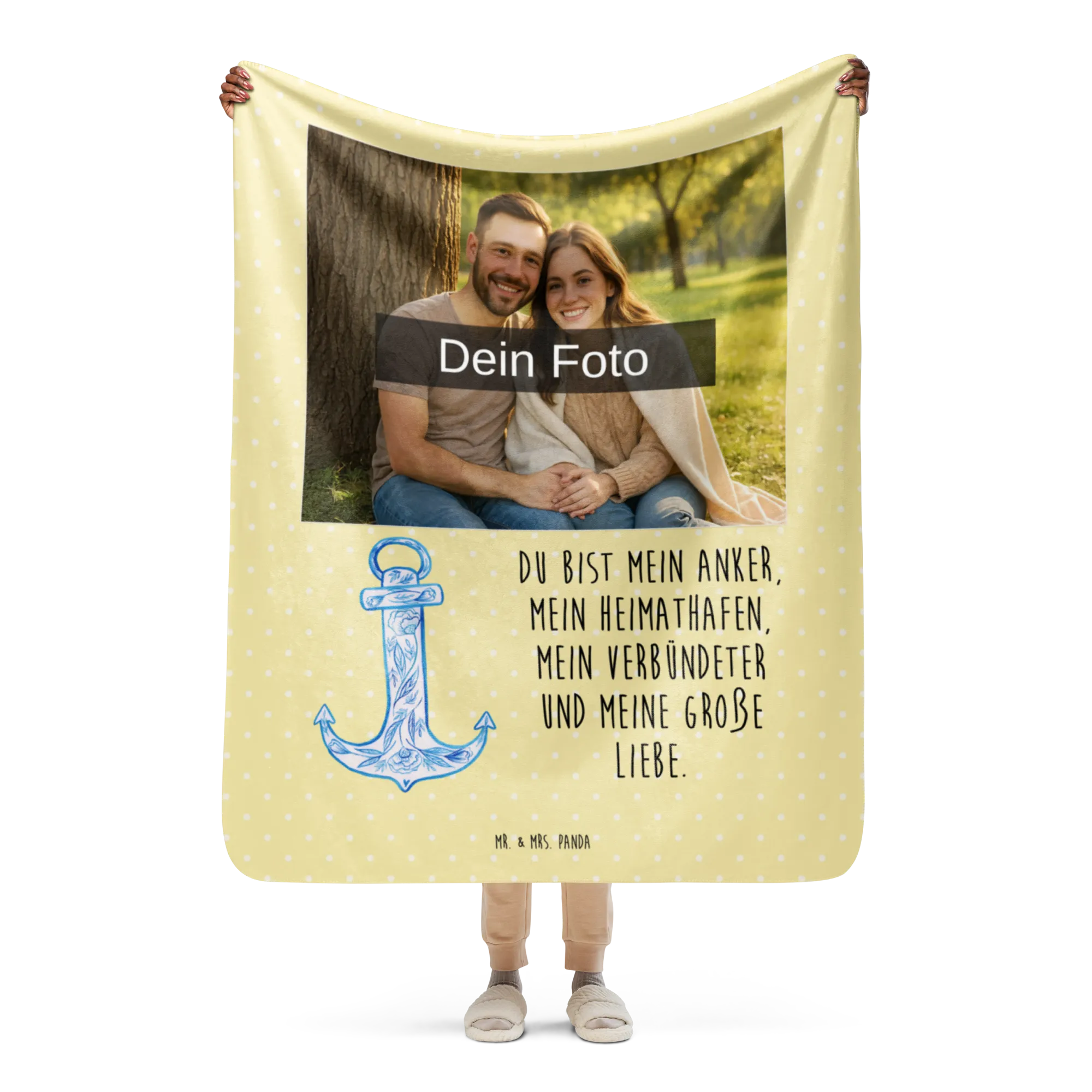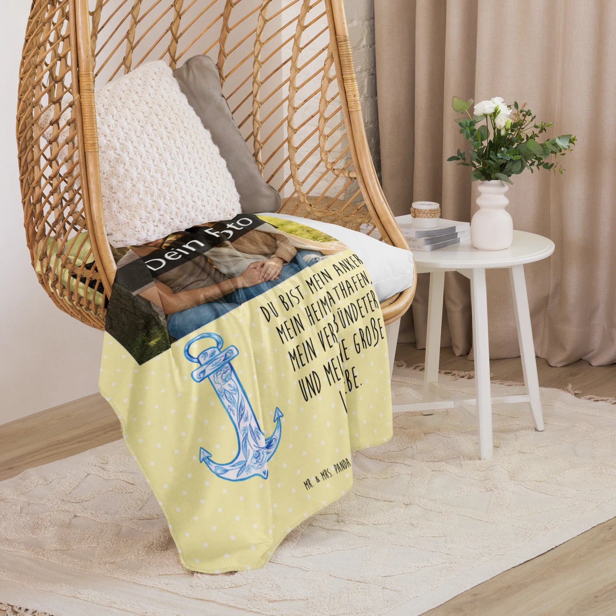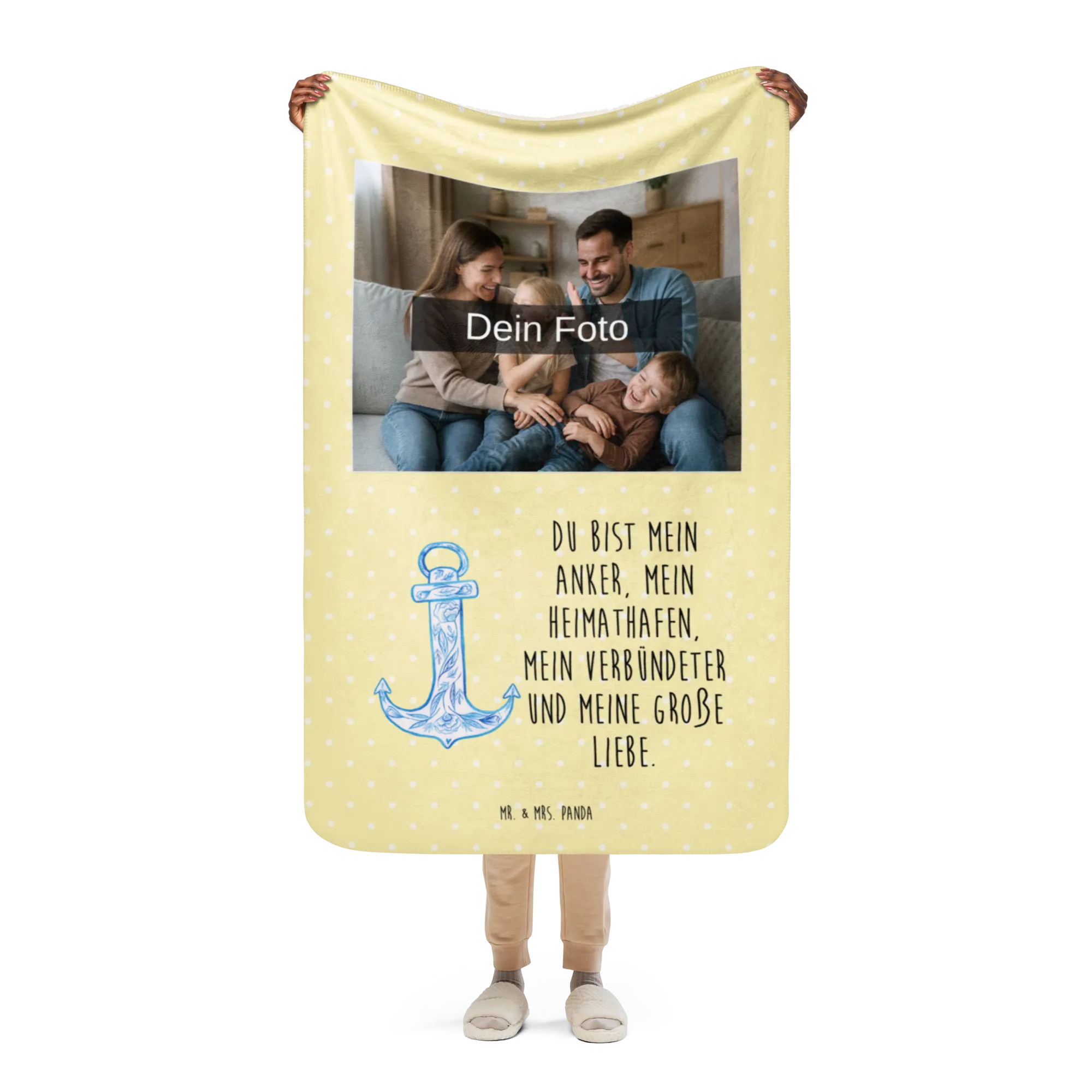 Sherpa Photo Cuddle Blanket anchor Blue - 130 x 155 cm
