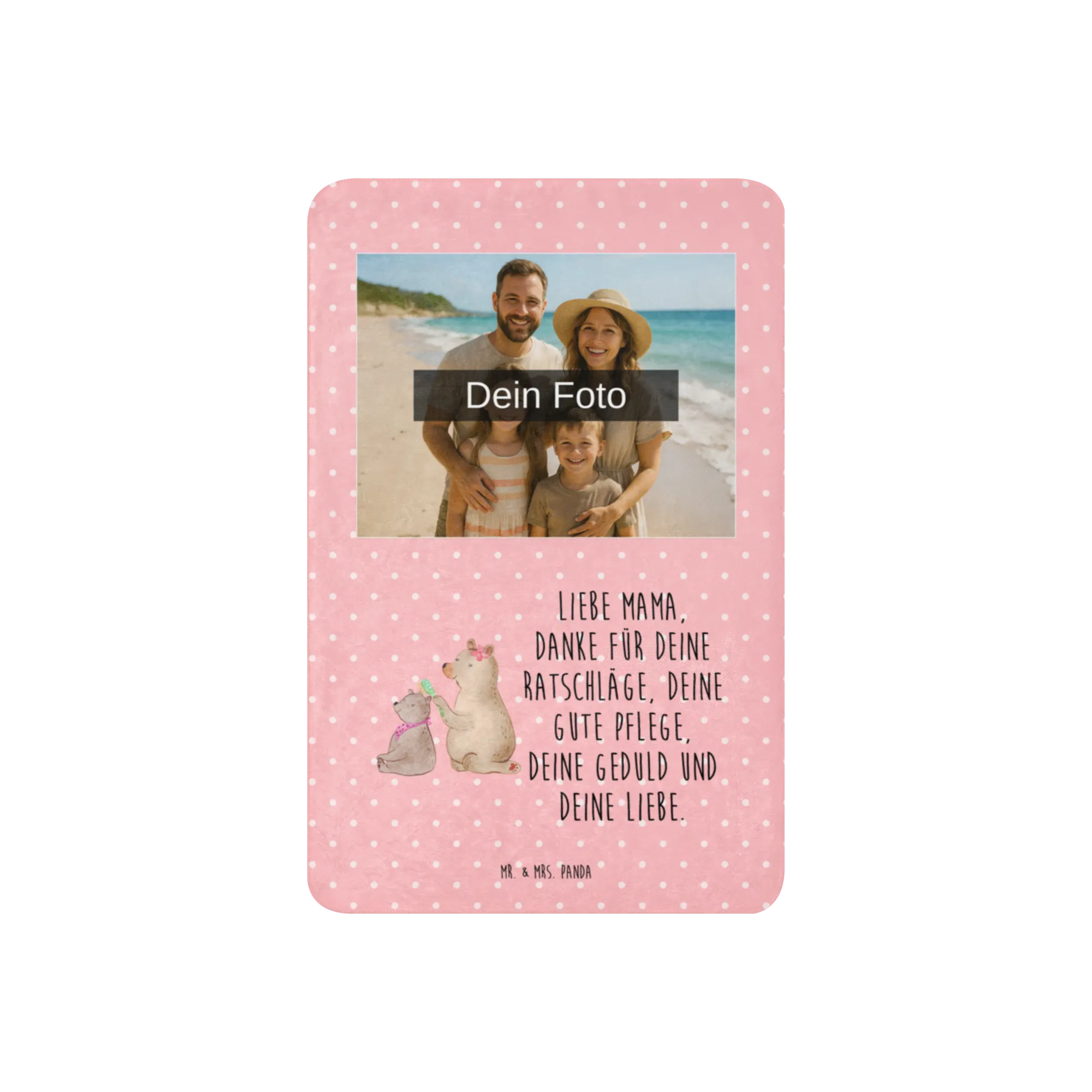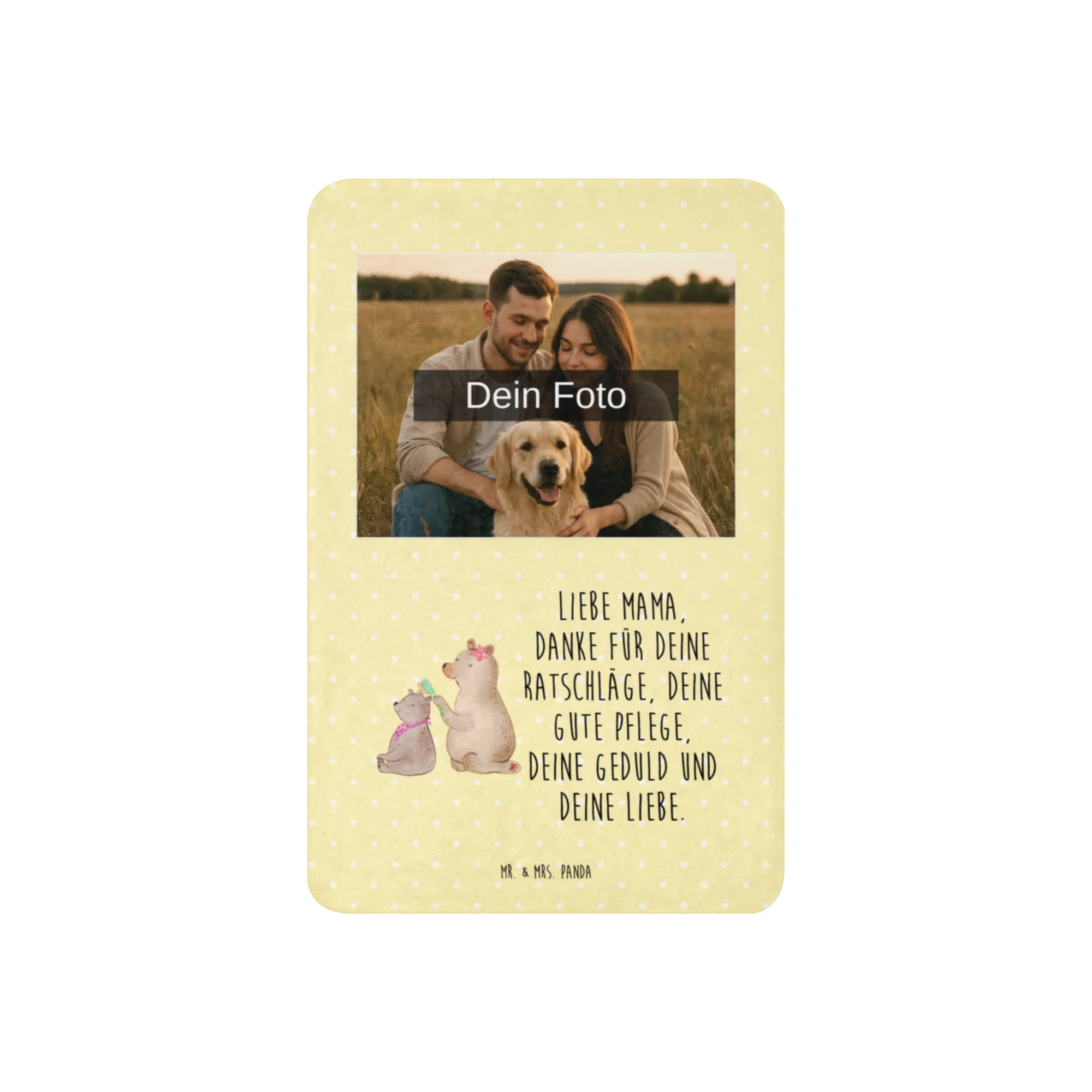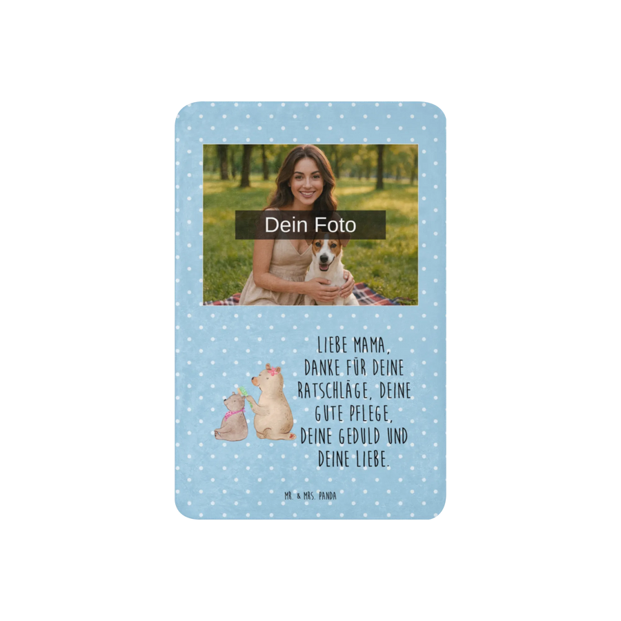 Dieses schöne Motiv von Mr. & Mrs. Panda fängt einen ganz besonderen Moment zwischen einem großen Bären und seinem kleinen Bärenkind ein. Der große Bär bürstet liebevoll das Haar des kleinen Bären, der sichtlich entspannt und glücklich ist. Bewundernd zeigt sich die vertraute Beziehung, die zwischen ihnen besteht – geprägt von Vertrauen, Geduld und Fürsorge. Das Motto 'Liebe Mama, danke für deine Ratschläge, deine gute Pflege, deine Geduld und deine Liebe' ist eine einfühlsame Würdigung der Mütter, die Tag für Tag für ihre Kinder da sind. Dieses Motiv eignet sich perfekt als Geschenk zum Muttertag oder um einfach Danke zu sagen! Es verkörpert nicht nur die Beziehung zwischen Mutter und Kind, sondern auch die Schönheit der einfachen, aber tiefen Momente im Leben.