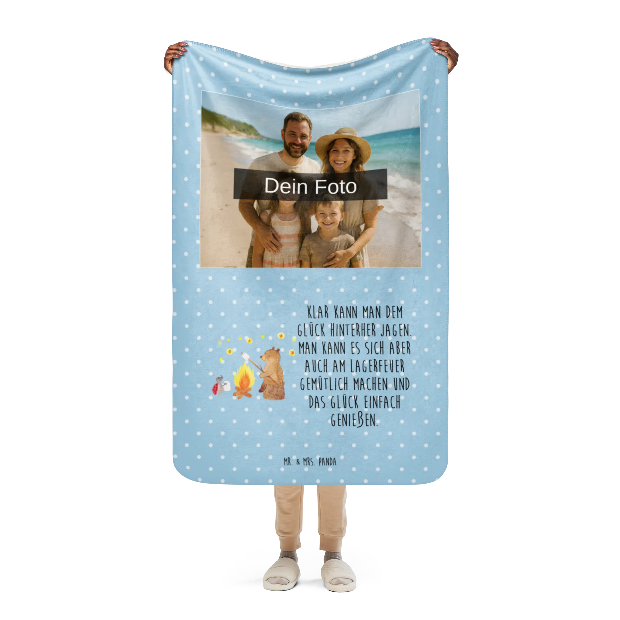 Discover unparalleled coziness with our Sherpa photo cuddle blanket. This customizable blanket combines high-quality printing with an incomparably soft fabric made from ultra-soft polyester fibers. Snuggle up while enjoying the vibrant colors and cute designs of Mr. & Mrs. Panda along with your favorite photo. Our blanket, perfect as a throw or for relaxing hours on the couch, offers not only unmatched warmth but also a personalized experience.
