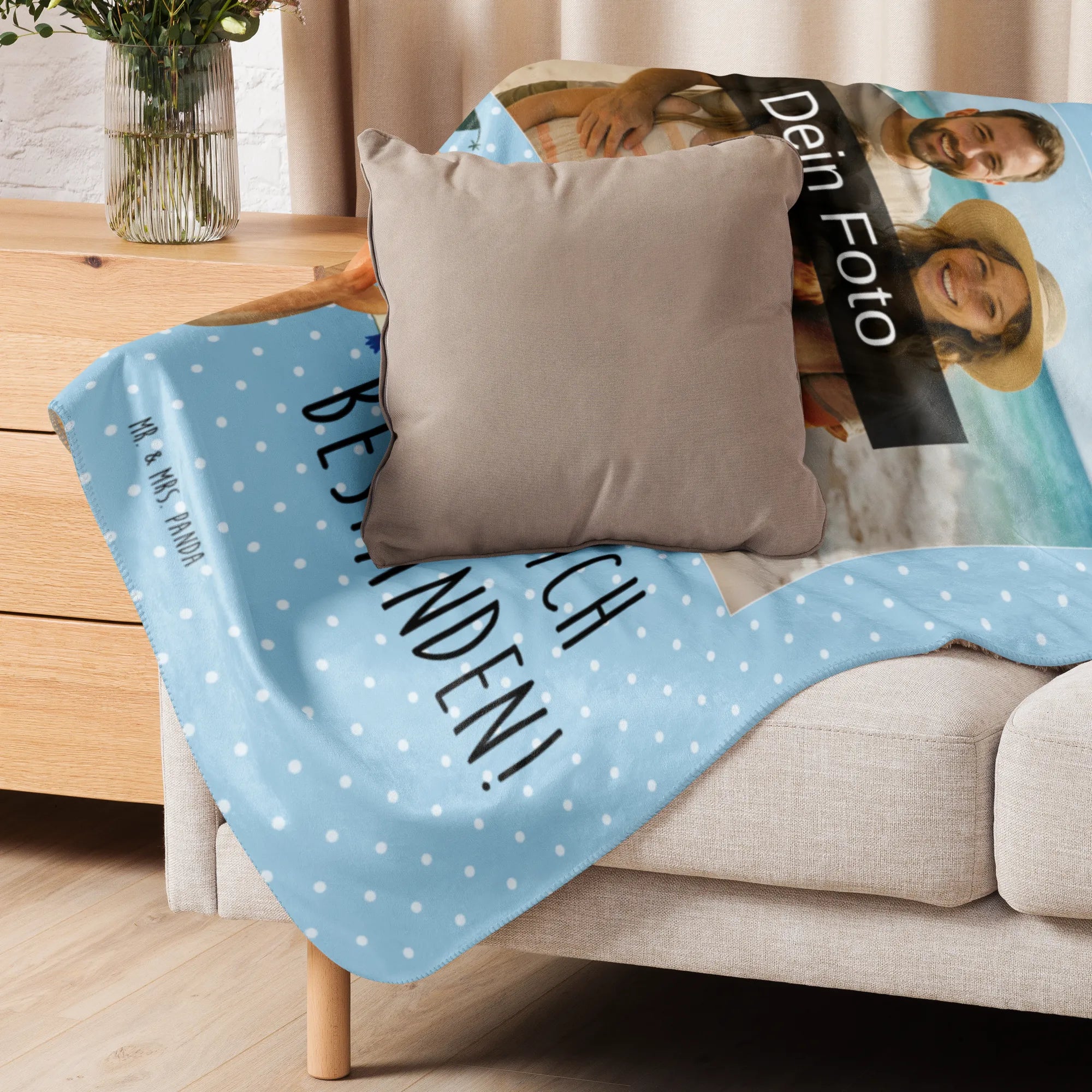 Erfreue dich an der exquisiten Sherpa Foto Kuscheldecke von Mr. & Mrs. Panda! Sie misst 1300 mm x 1550 mm und ist der Inbegriff von Komfort und Stil. Hergestellt aus 100 % ultrweichen Polyesterfasern, vereint sie 51,5 % glattes Obermaterial mit 48,5 % weichem Sherpa. Die Decke hat ein Gewicht von 220 g/m² für den glatten Stoff und 240 g/m² für das kuschelweiche Sherpa. Damit ist sie nicht nur eine tolle Wärmequelle, sondern auch ein dekoratives Element für deinen Raum. Die strahlenden Farben und das kreative Design mit Sprüche von Mr. & Mrs. Panda bringen Freude und Gemütlichkeit in dein Zuhause. Perfekt für den nächsten Filmabend oder einfach zum Entspannen am Abend. Bitte lege Wert darauf, die Decke vor der ersten Nutzung zu waschen!