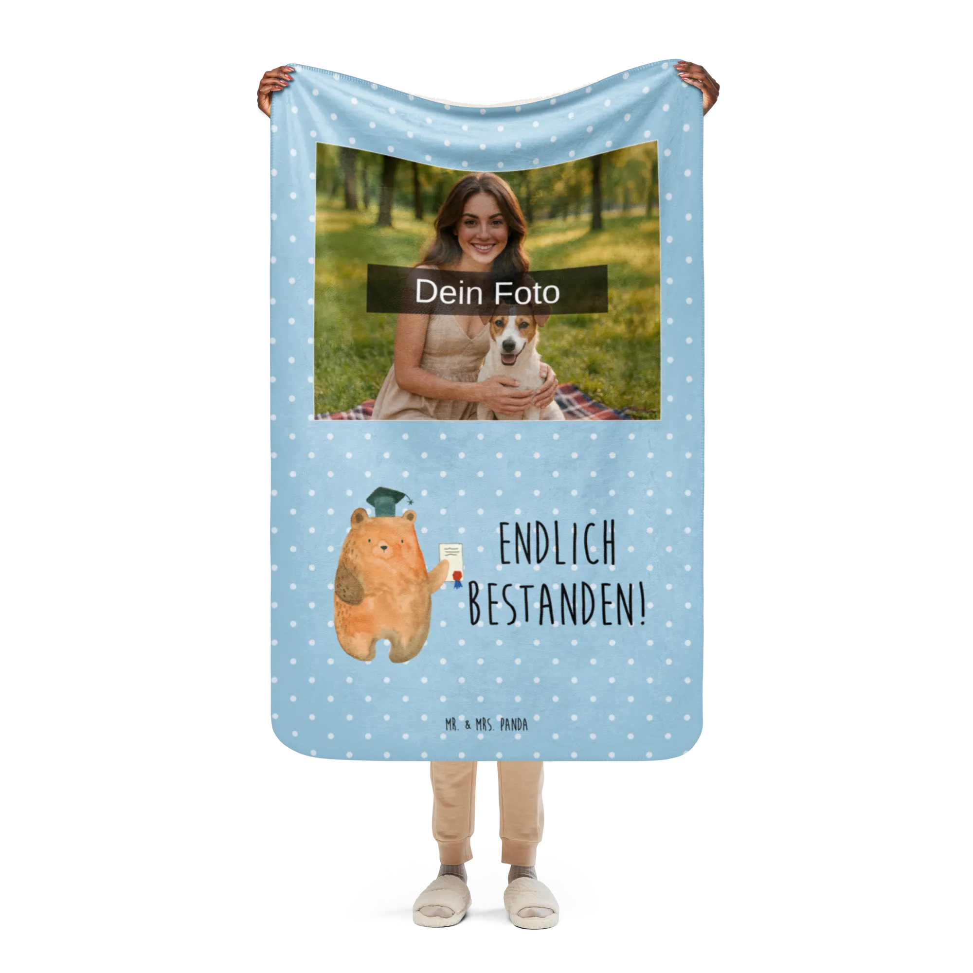 Sherpa Photo Cuddle Blanket bear Test Foto Kuscheldecke, Bär, Teddy, Teddybär, Prüfung bestanden, Abschlusszeugnis, Prüfungen, Abschluss, Abitur, Zeugnis