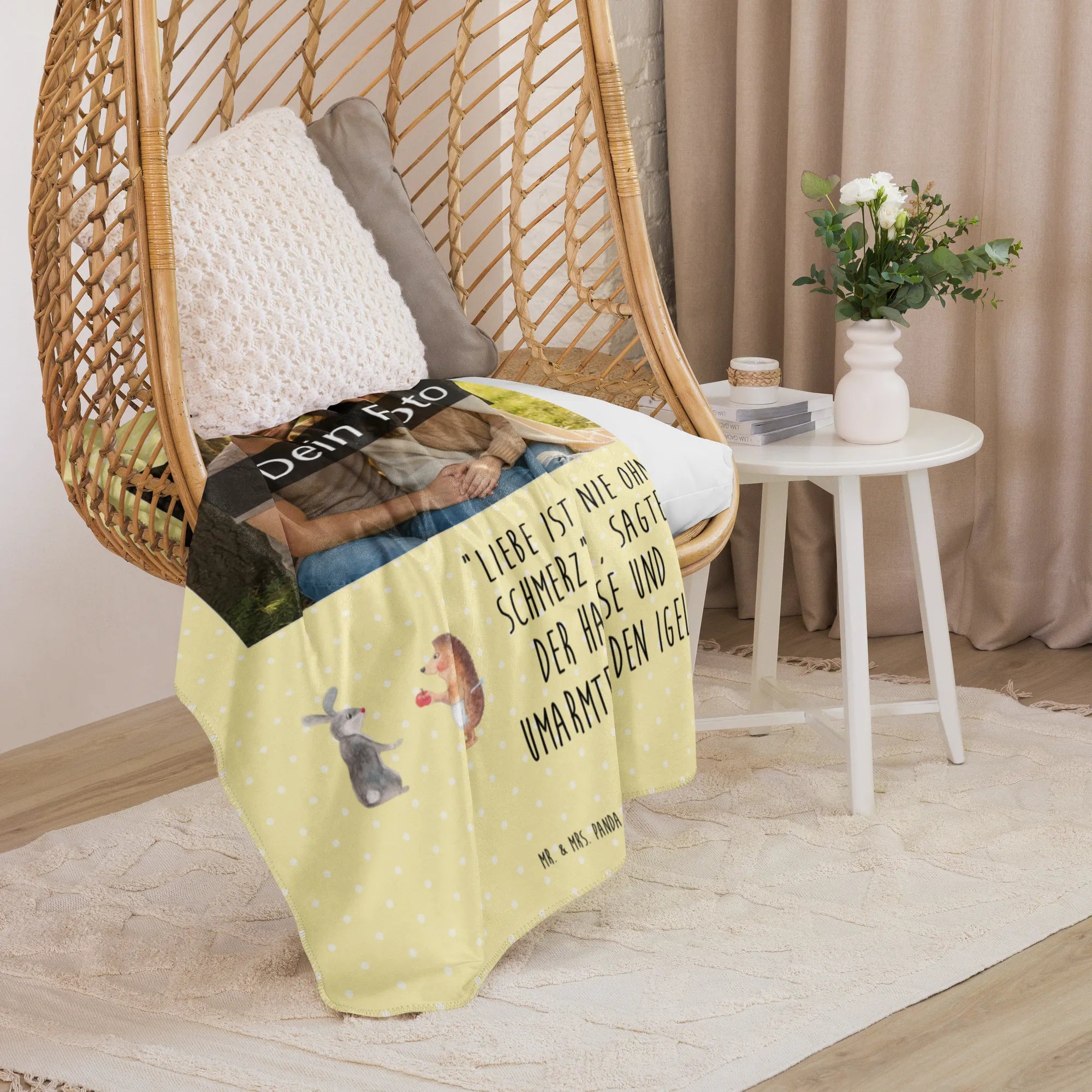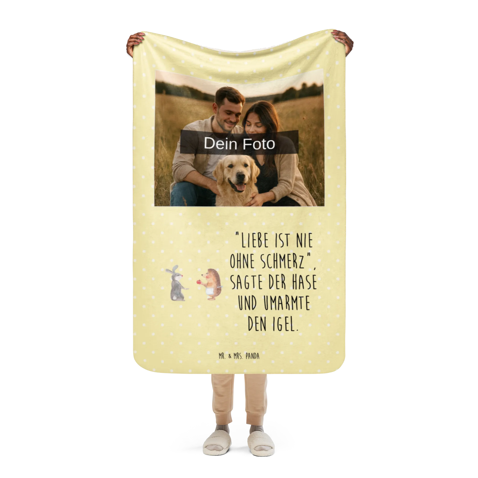 Sherpa Photo Cuddle Blanket Hare Hedgehog small animals, cute, funny, cute animal motives, hand drawn, small world, funny sayings, good mood, happy, gifts, gift ideas, special gifts, animal lover, card, lovesickness gift, Hedgehog, romantic saying, Hedgehog and hare, hare, consolation, pain of separation, love saying, heartache