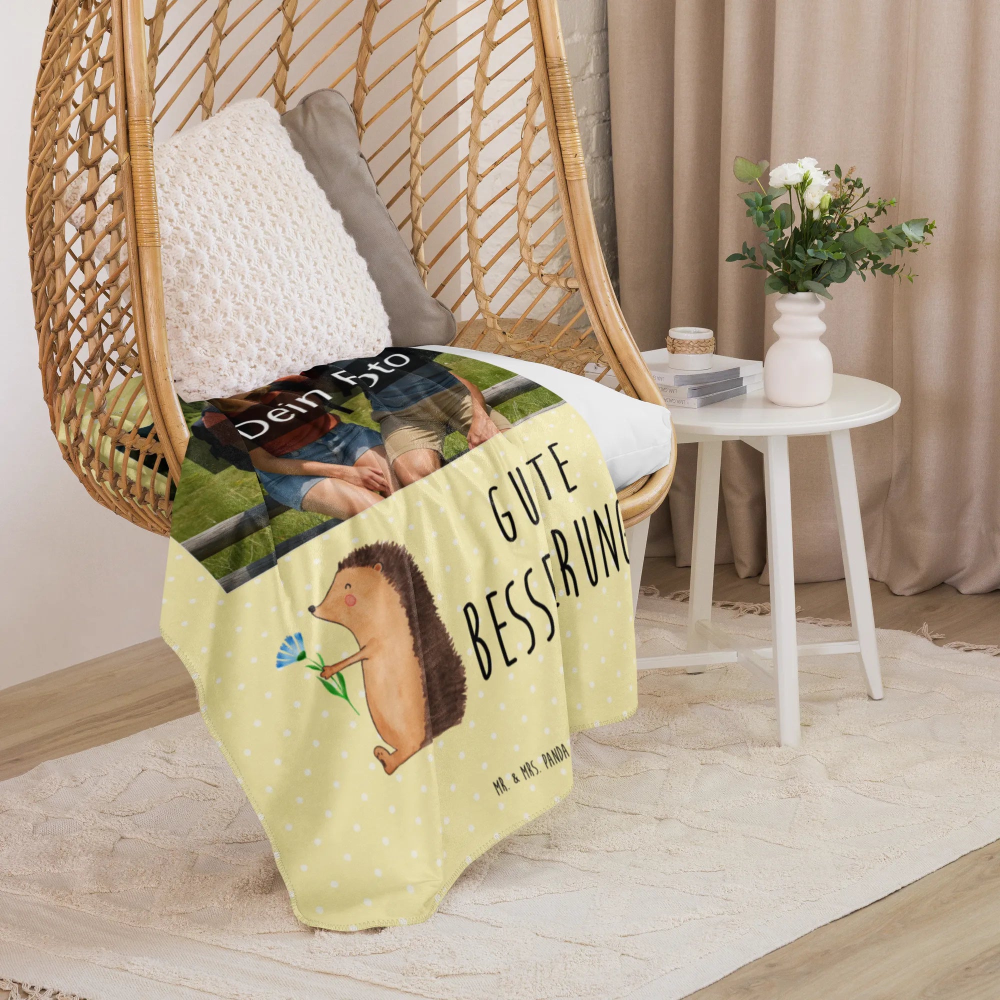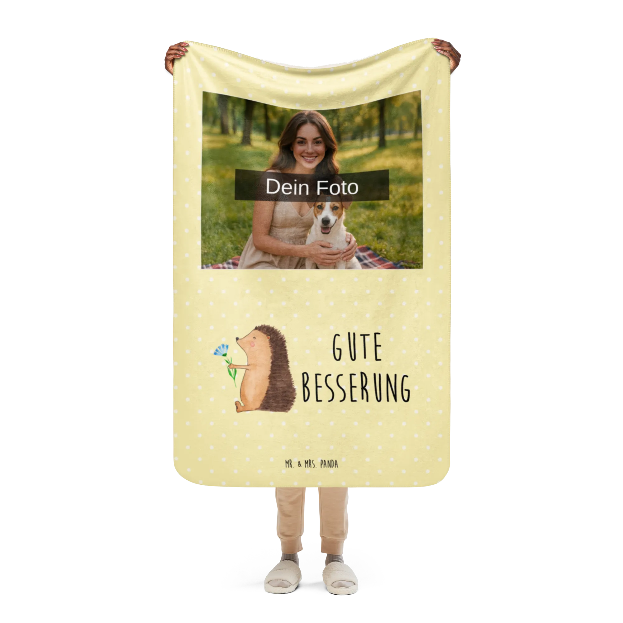 Sherpa Photo Cuddle Blanket Hedgehog Flower Foto Kuscheldecke, Tiermotive, Gute Laune, lustige Sprüche, Tiere, Gute Besserung, Genesungswünsche, krank, Besuch, Igel, Krankenhaus, Krankheit