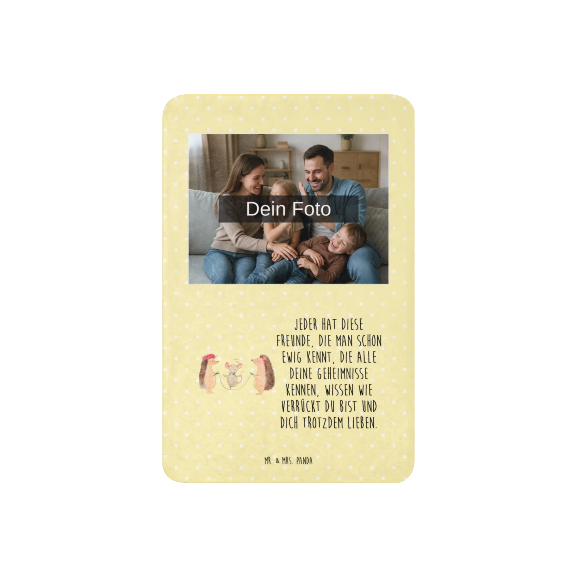 Das bezaubernde Igel Seilhüpfen-Motiv zeigt zwei entzückende Igel und eine kleine Maus, die gemeinsam voller Freude Seilspringen. Ihre lachenden Gesichter und die fröhliche Stimmung sind einfach ansteckend. Dieses Motiv ist eine liebevolle Hommage an die unerschütterliche Freundschaft, die uns von Kindertagen bis ins Erwachsenenalter begleitet. Der Spruch 'Jeder hat diese Freunde, die man schon ewig kennt, die alle deine Geheimnisse kennen, wissen wie verrückt du bist und dich trotzdem lieben' erinnert uns daran, wie wertvoll und selten solche Freundschaften sind. Diese magischen Momente mit unseren Vertrauten prägen unser Leben und machen es reich und bunt.