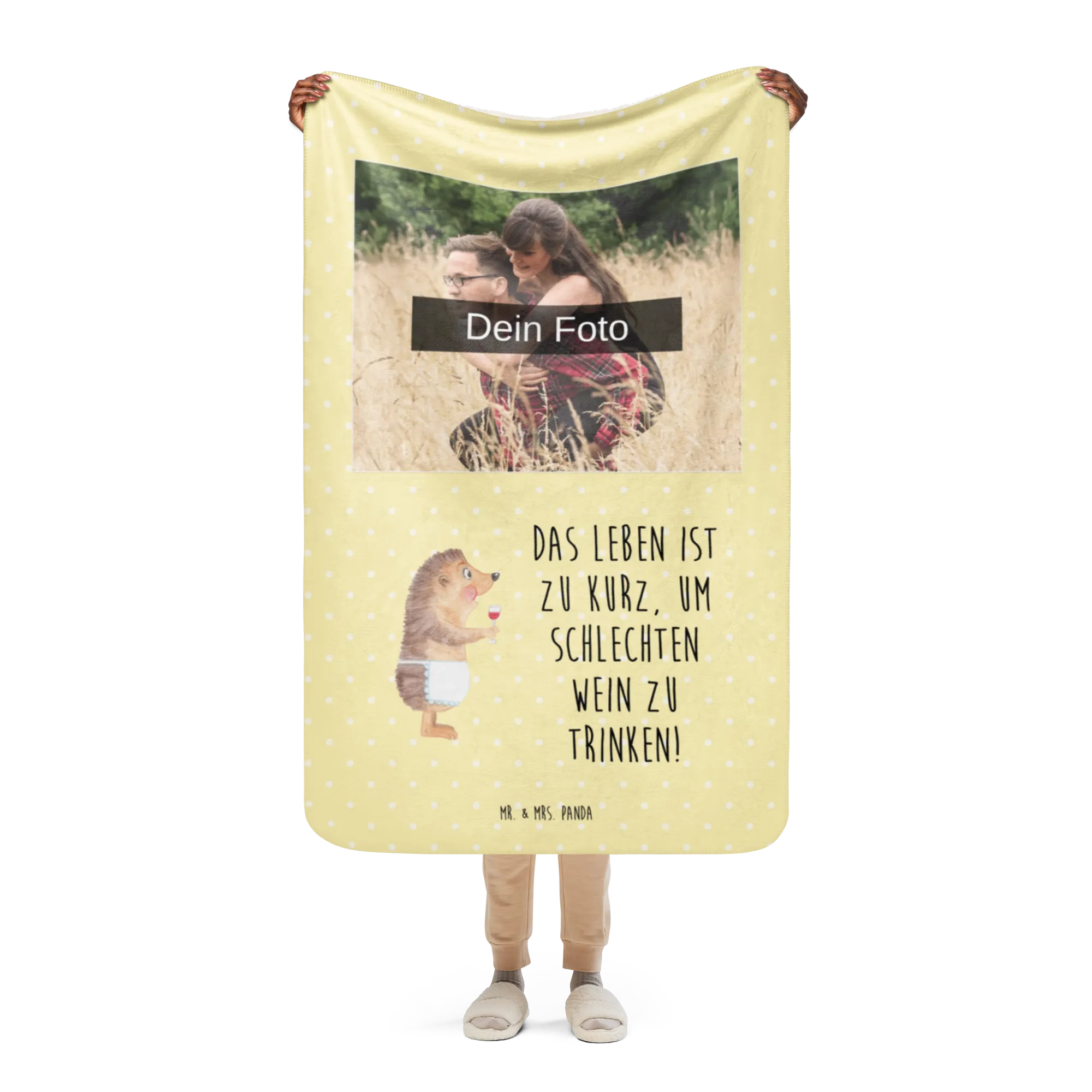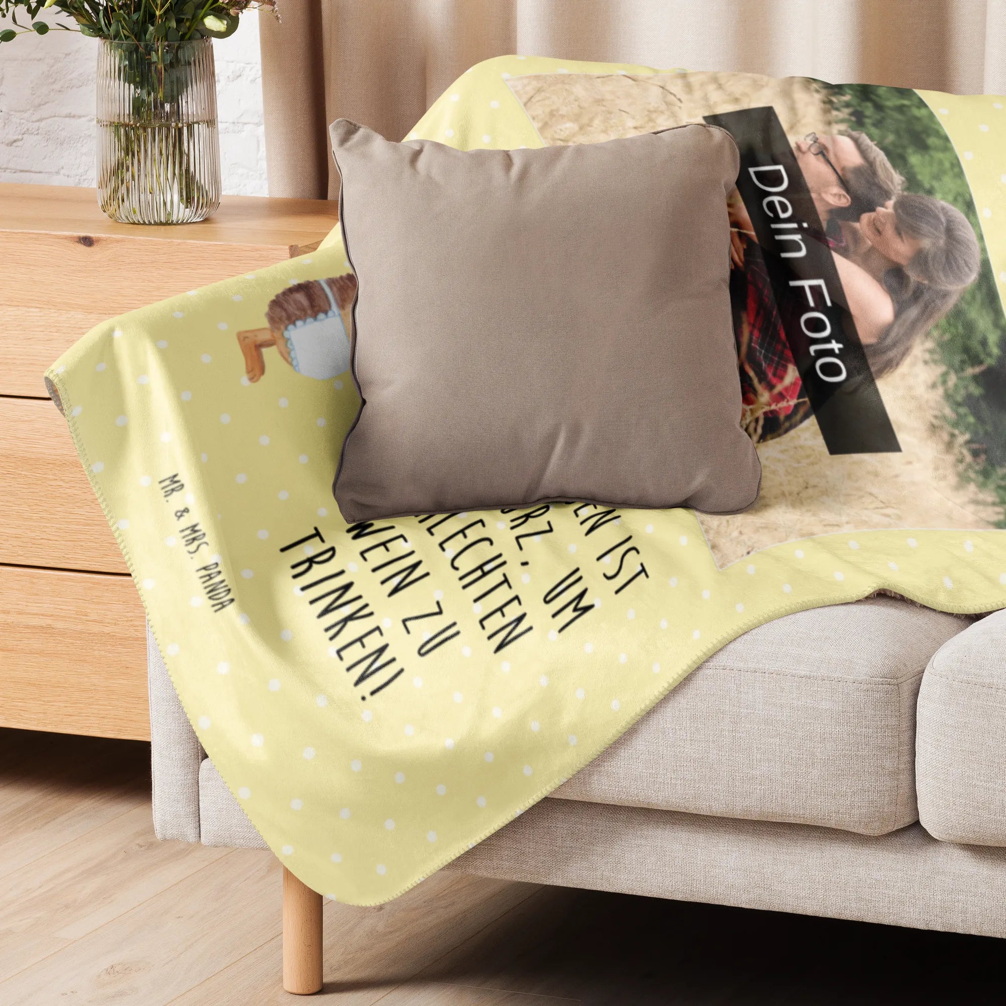 Mach es dir gemütlich mit der einzigartigen Sherpa Foto Kuscheldecke von Mr. & Mrs. Panda! Mit den Maßen 1500 mm x 1000 mm ist sie ideal, um sich einzukuscheln oder deinem Raum einen besonderen Flair zu verleihen. Diese Decke besteht aus 100% ultraweichen Polyesterfasern und begeistert durch ihre Qualität und Pflegeleichtigkeit. Dank der flauschigen Sherpa-Seite fühlst du dich immer warm und geborgen, während der glatte Seitenstoff für ein angenehmes Hautgefühl sorgt. Die leuchtenden Farben bringen Frische in dein Zuhause und die Möglichkeit, die Decke mit deinem Wunschfoto zu individualisieren, macht sie zum perfekten Geschenk für Freunde und Familie. Vergiss nicht, die Decke vor der ersten Nutzung zu waschen, um den besten Komfort zu gewährleisten! Pflegehinweise: verwende milde Reinigungsmittel. Diese Kuscheldecke wird schnell zu deinem neuen Lieblingsstück von Mr. & Mrs. Panda!