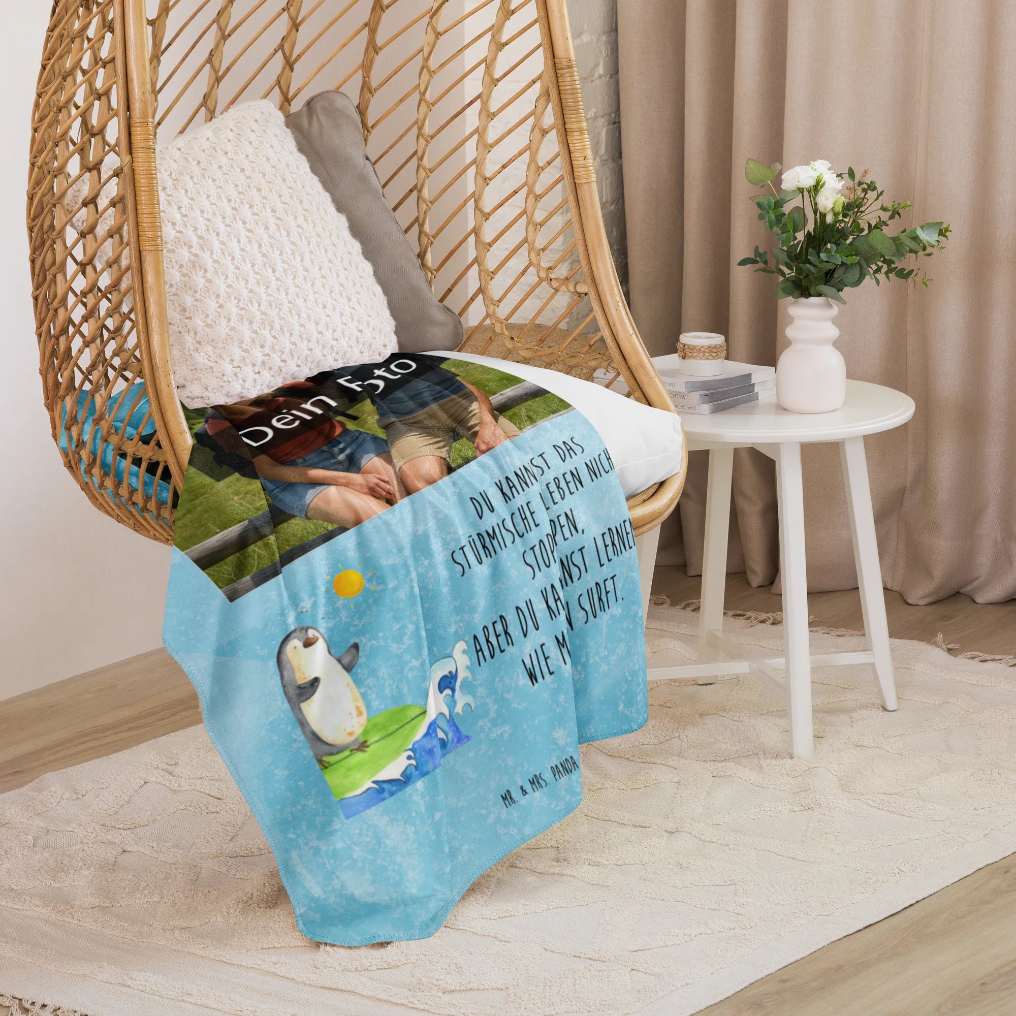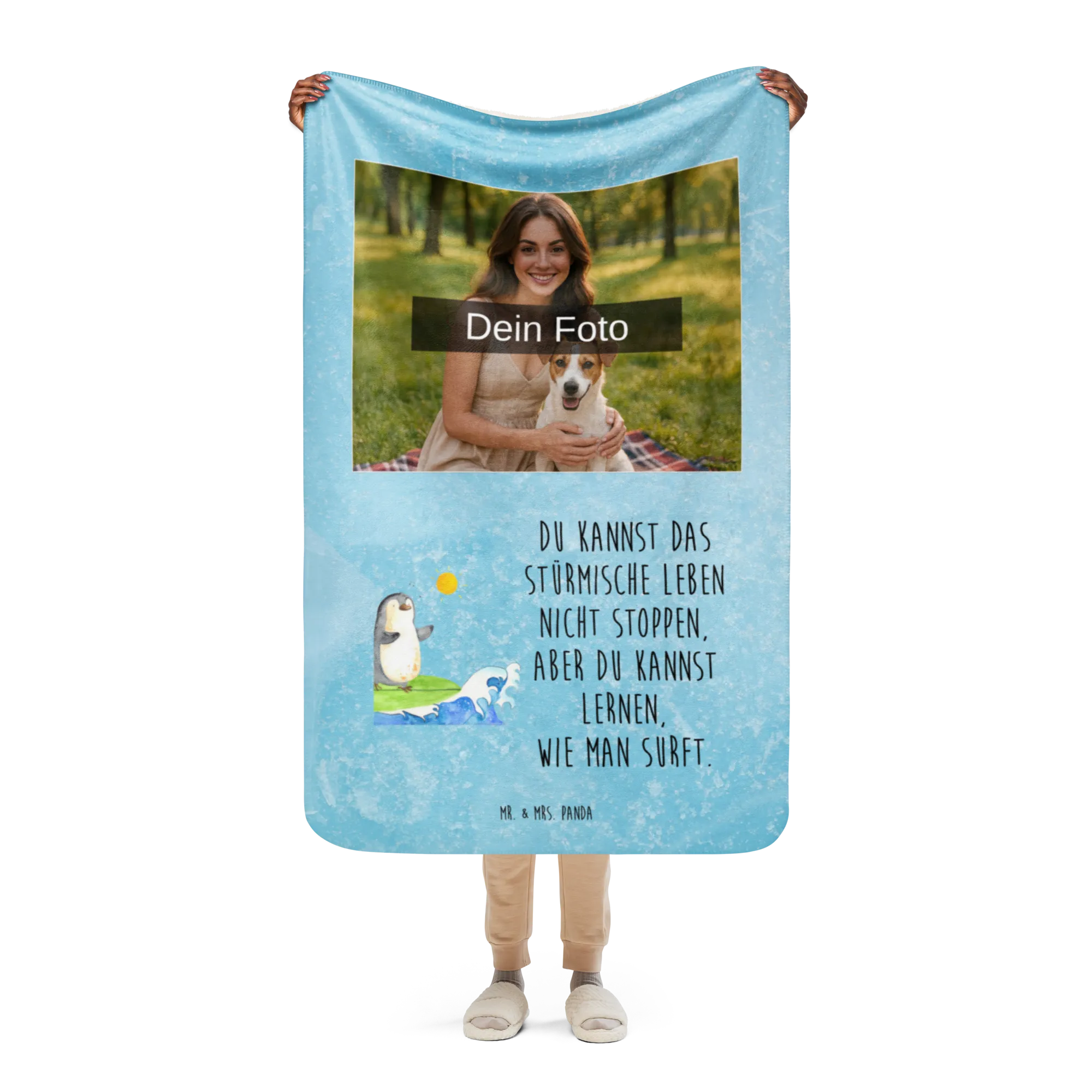 Sherpa Photo Cuddle Blanket Penguin surfer - 130 x 155 cm