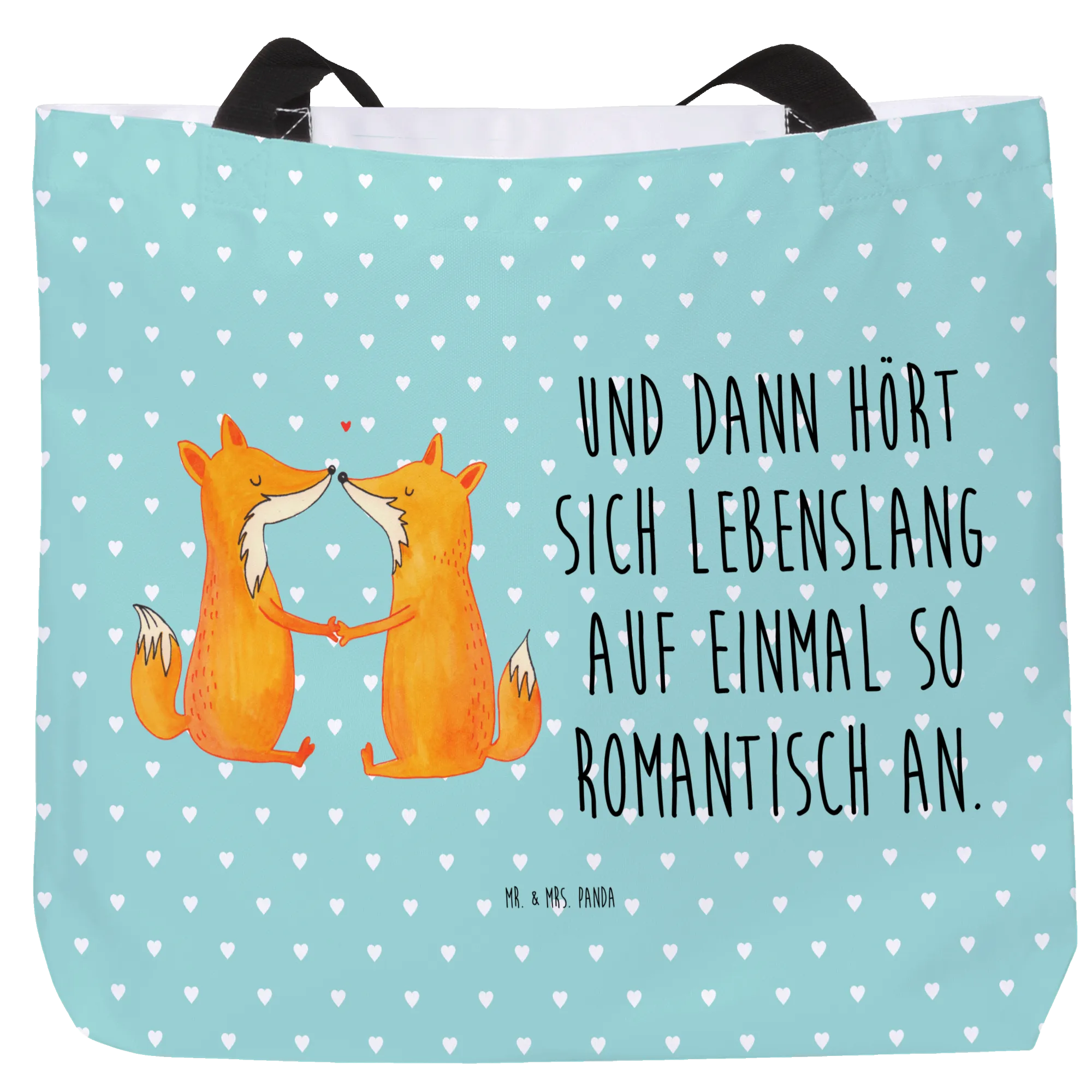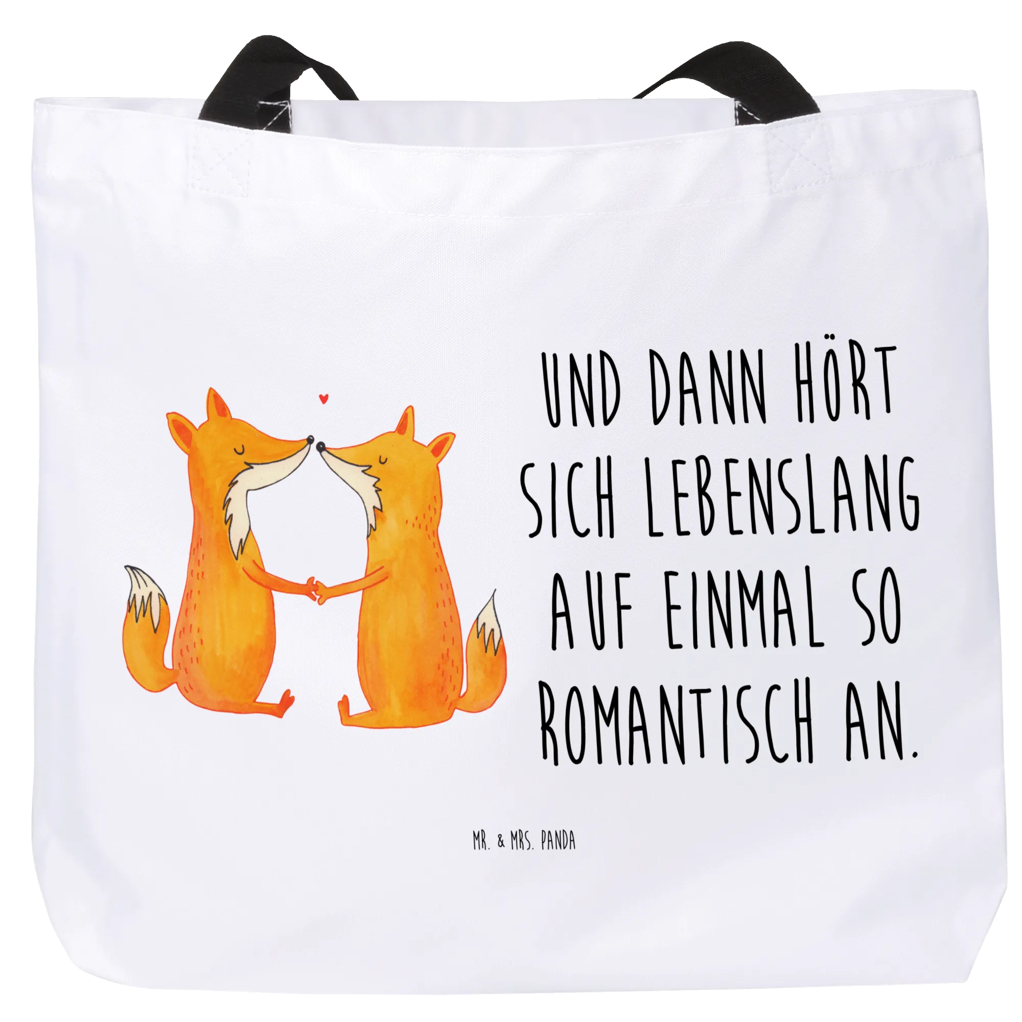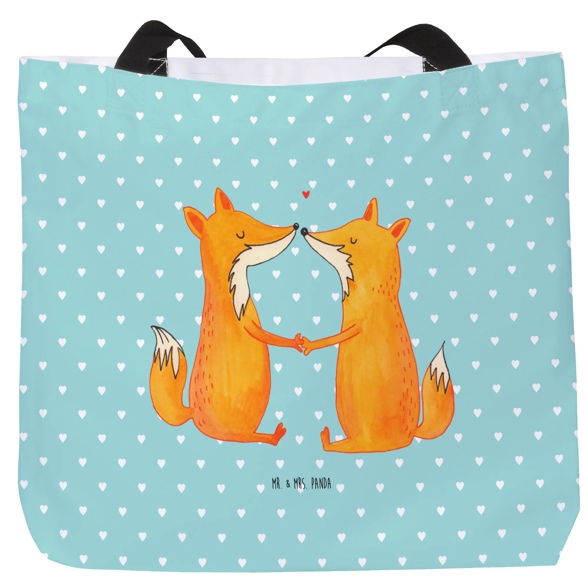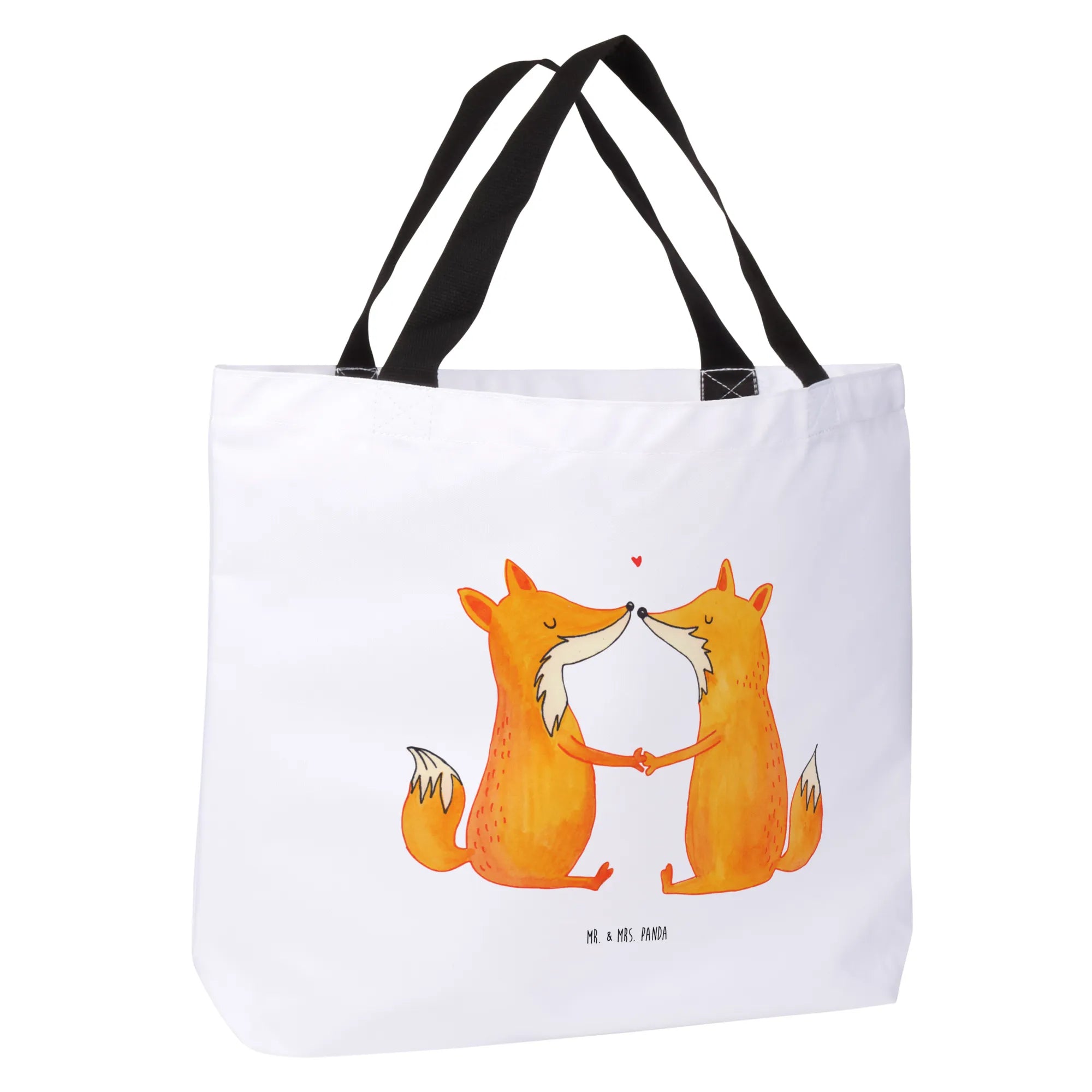 Introducing the enchanting Shopper from Mr. & Mrs. Panda, featuring the adorable "Foxes in Love" motif from our delightful Fox Collection. This gorgeous shopping bag is perfect for animal lovers, couples, or anyone looking to share a little love while they’re out and about! Our design showcases two sweet foxes sitting across from each other, holding paws in a charming depiction of love and companionship. Whether you’re heading to the beach, enjoying a day of shopping, or embarking on a romantic getaway, this spacious shopper is your perfect companion.