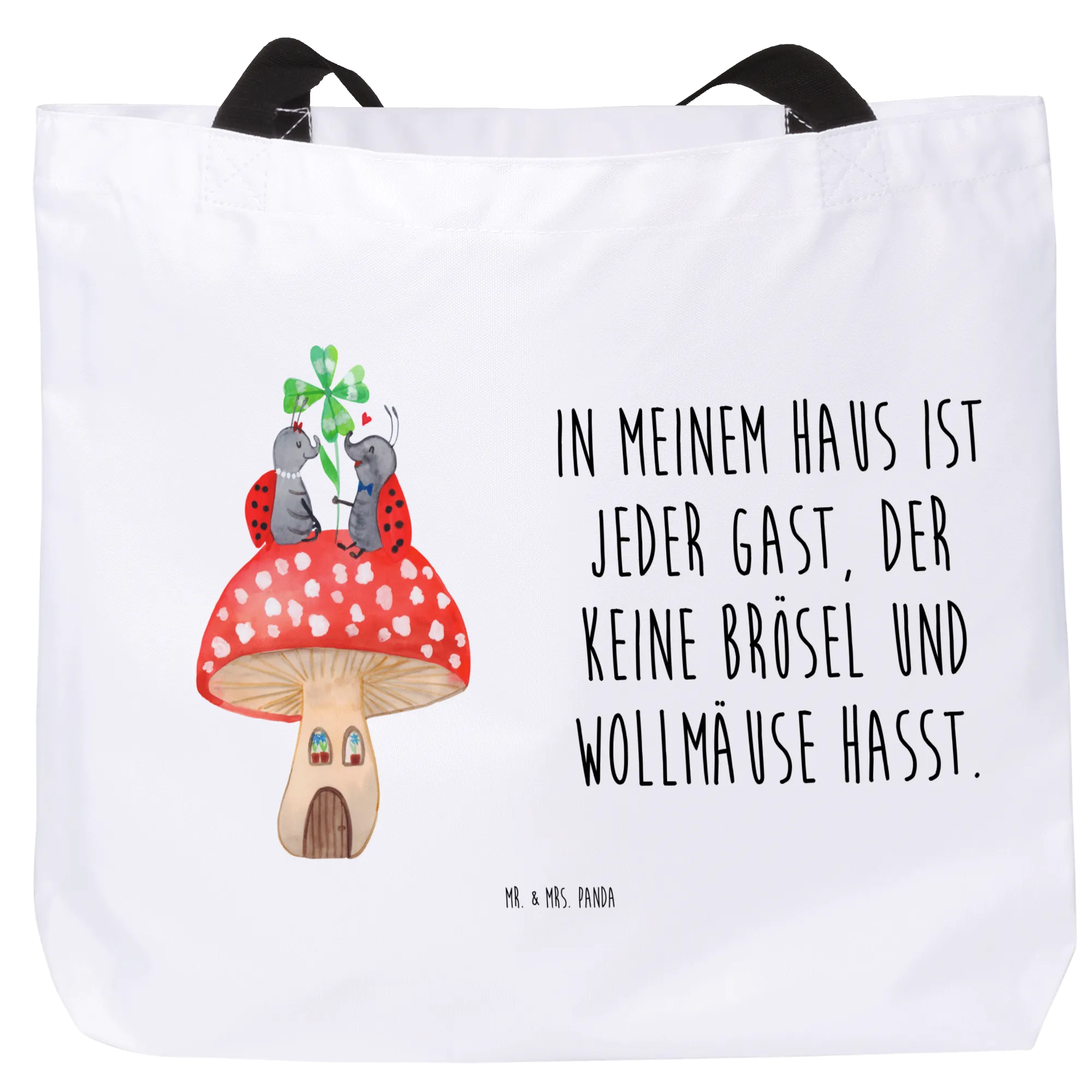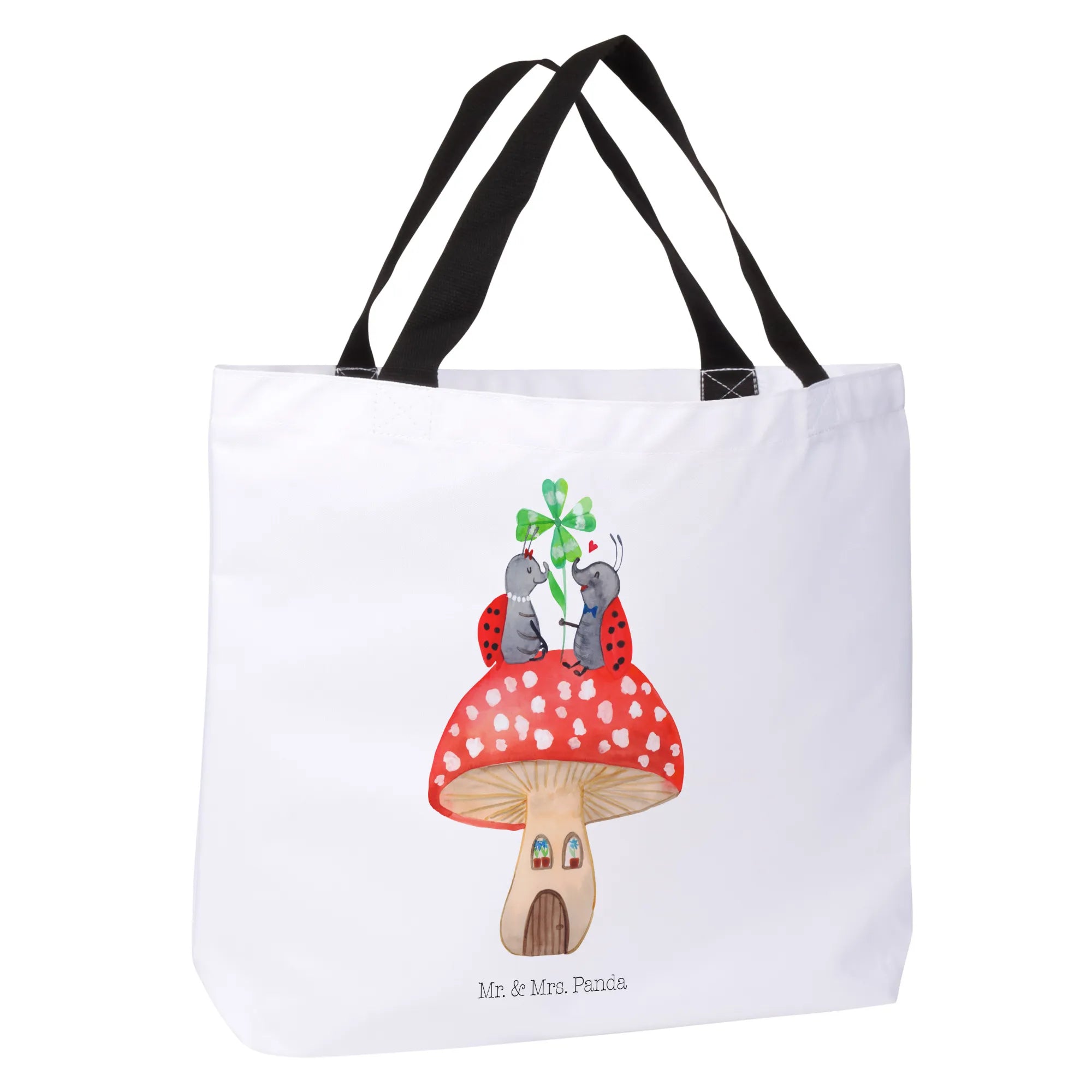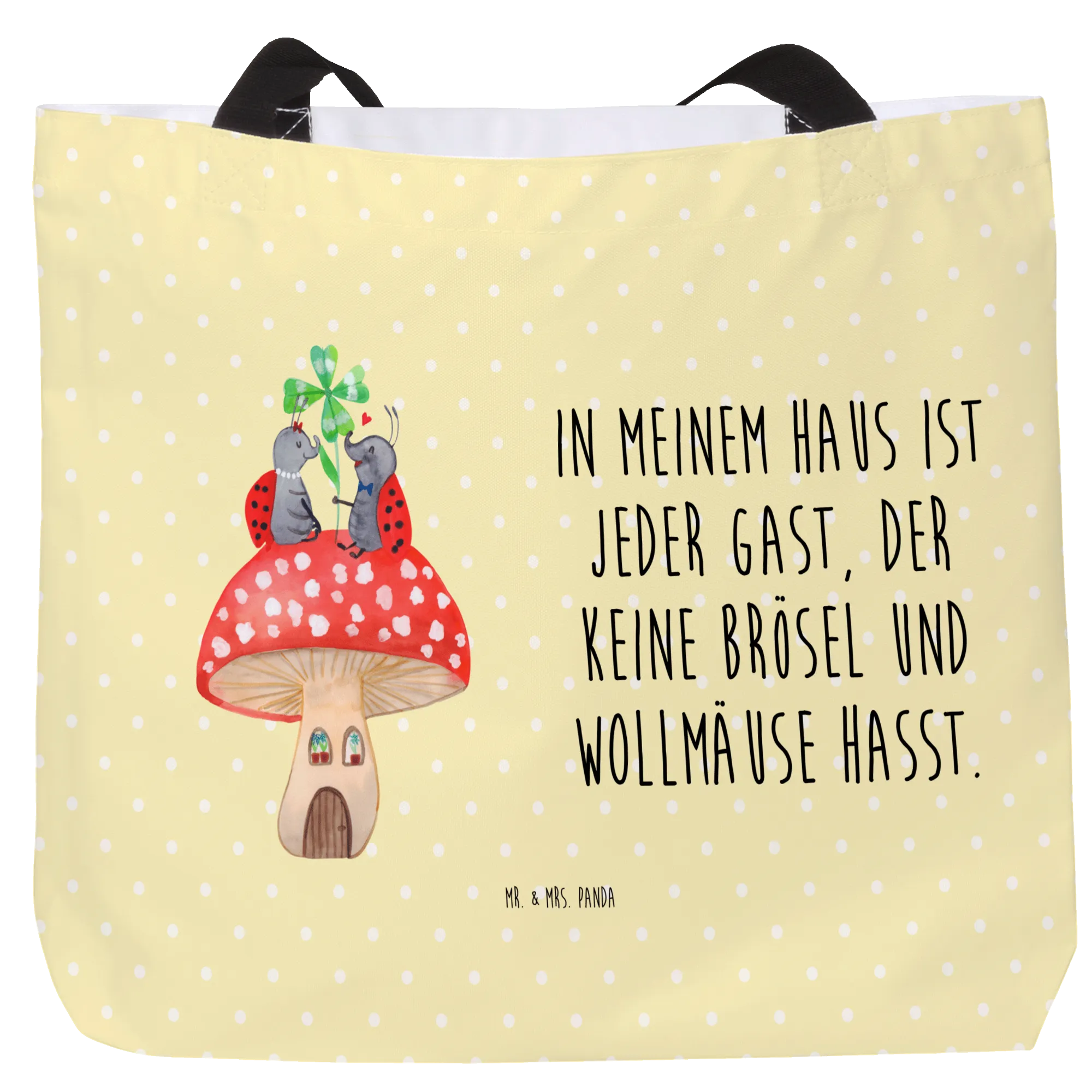 Ein wunderschöner Shopper von Mr. & Mrs. Panda: Unser Marienkäfer Paar auf dem Fliegenpilz strahlt Wärme und Zuneigung aus und macht diese Stofftasche zu einem täglichen Lieblingsstück. Das pastellige Gelb im Hintergrund setzt das liebevoll gezeichnete Motiv aus der Small World Kollektion perfekt in Szene.