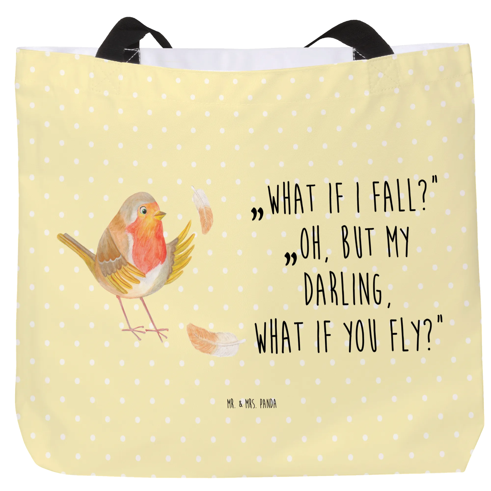 Shopper robin feathers Ausflug, Schultasche, Shopper, Strandtasche, Tüte, Beutel, XL, Schulbeutel, Tragebeutel, Einkaufstasche, Schultertasche, Freizeittasche, Alltagstasche, Einkaufsbeutel, XXL Tasche, Stofftasche, Gute Laune, Lustige Sprüche, Tiermotive, Tiere, What If I Fall, fliegen, Spruch Motivation, Vogel, Rotkehlchen, Motivationsbilder, Motivation Sprüche, Spruch Mut