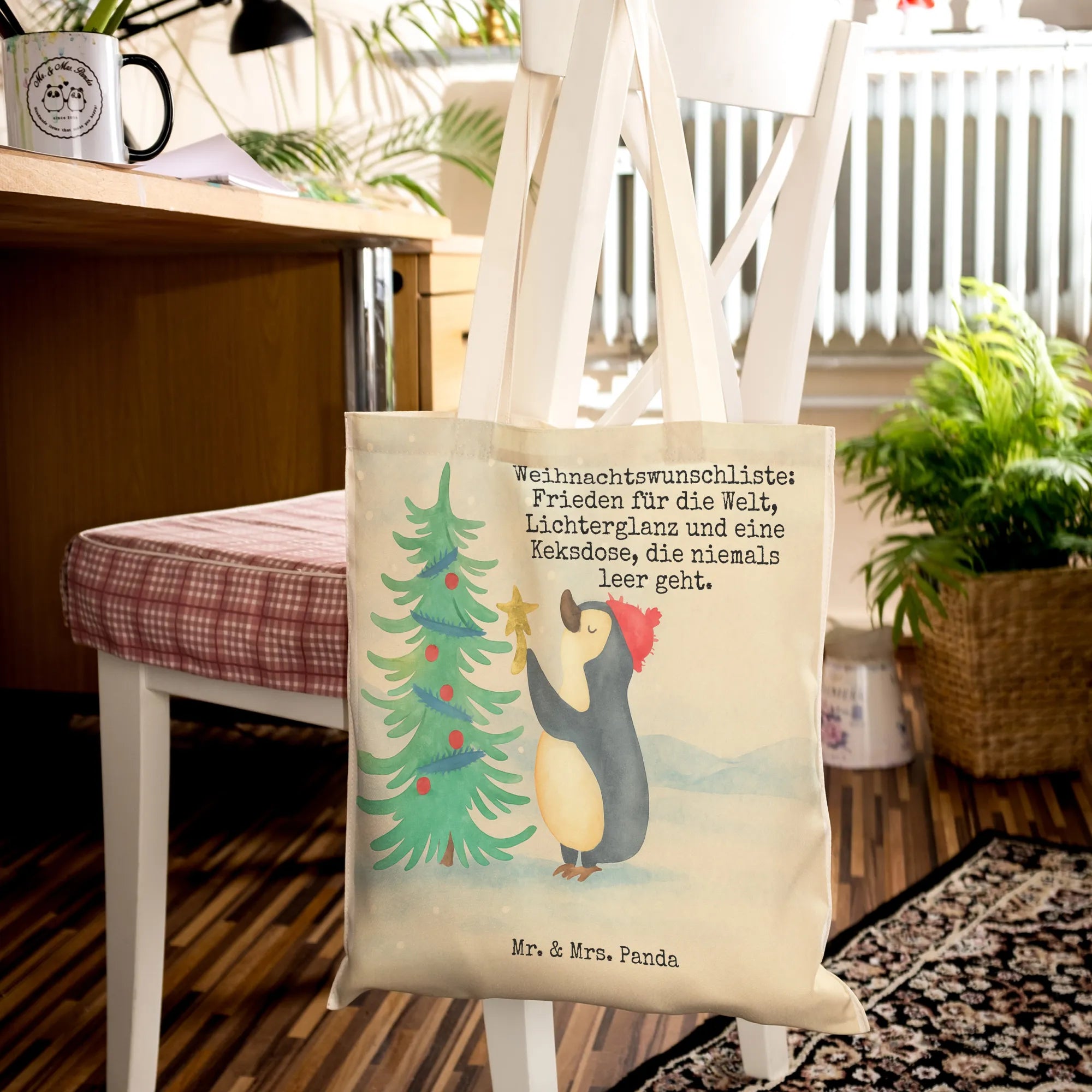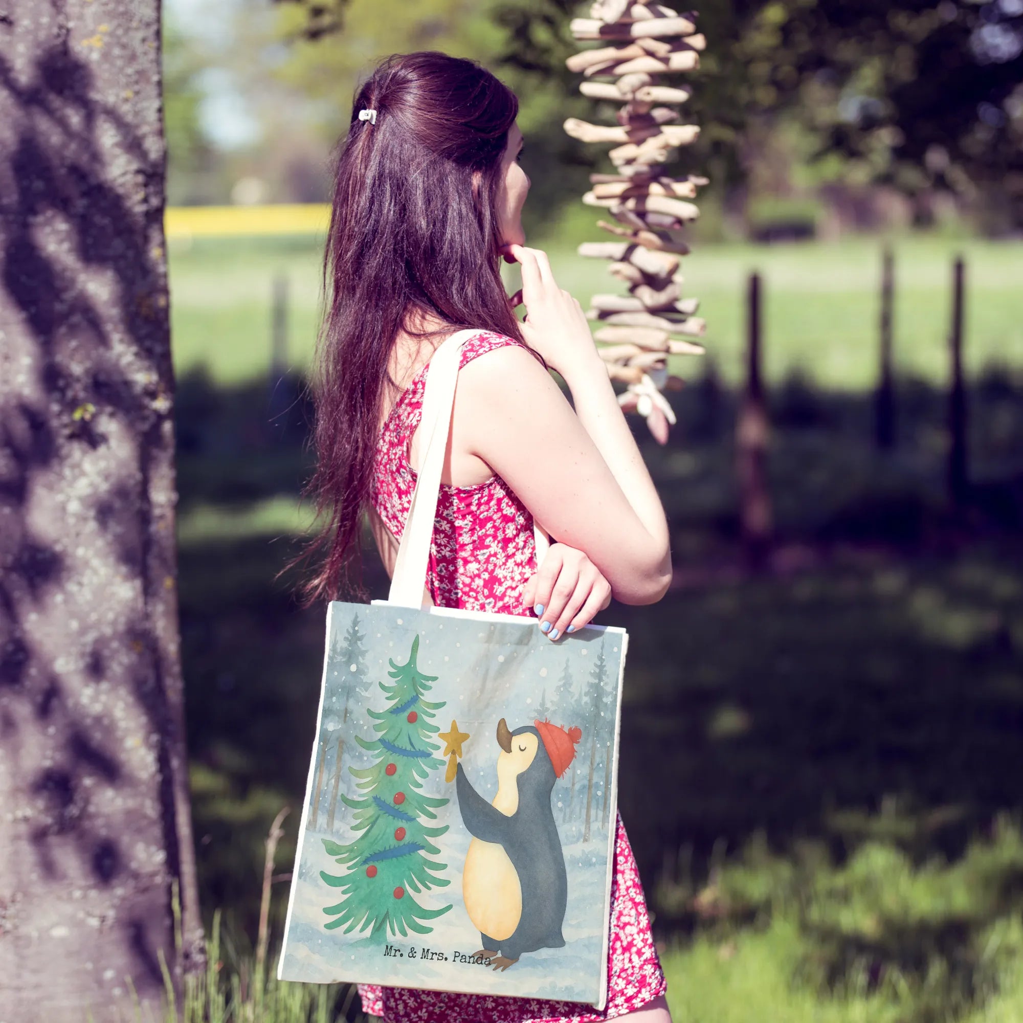 Einkaufstasche Pinguin Weihnachtsbaum Design - mit Spruch