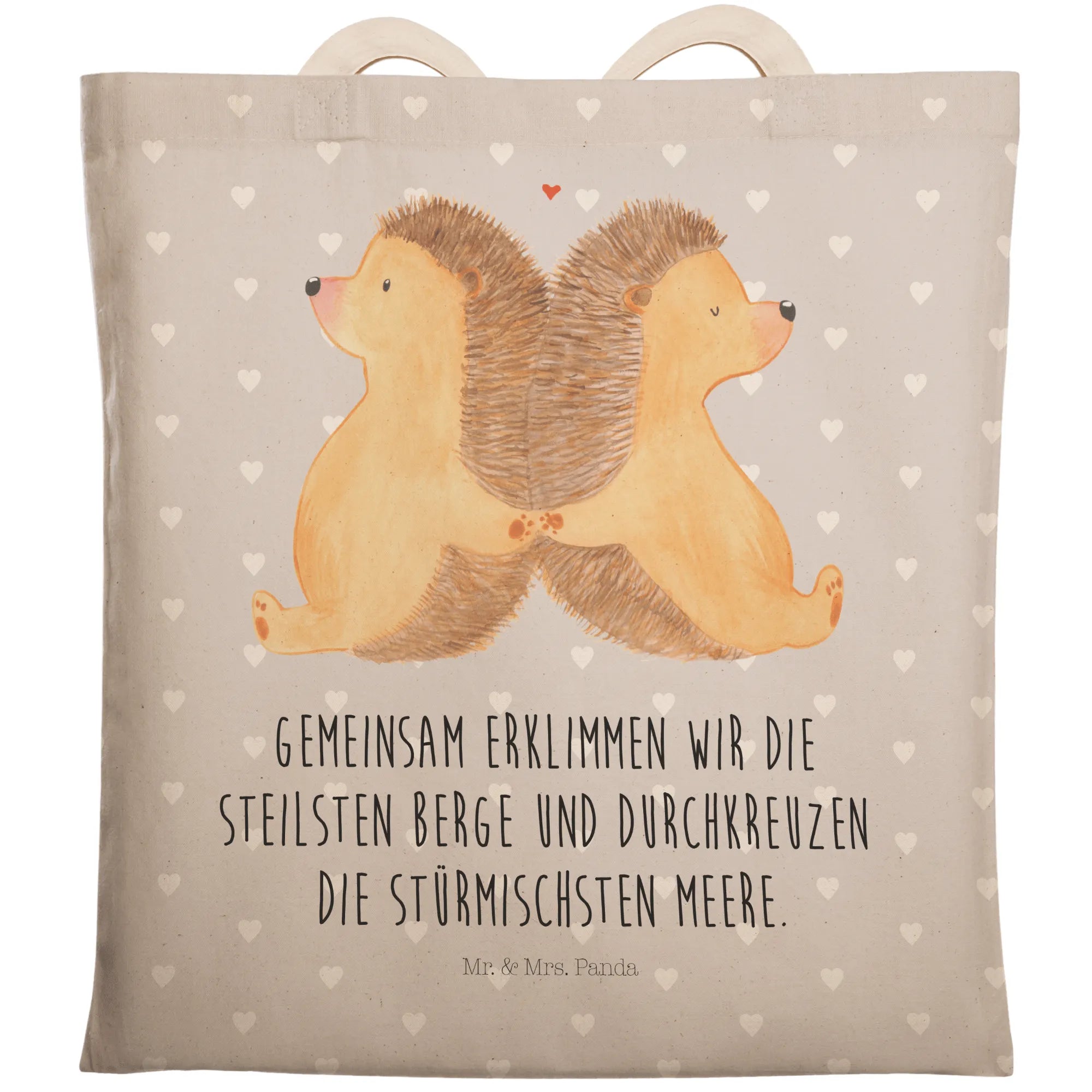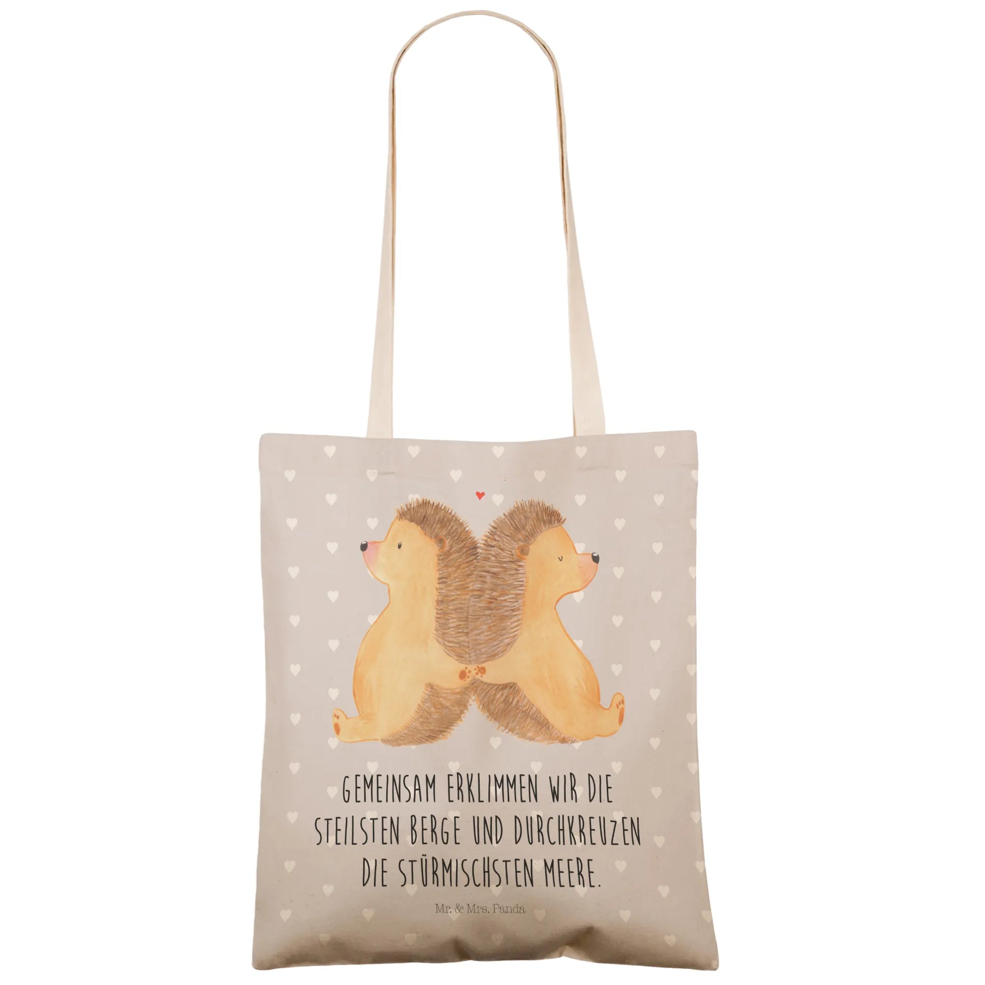 Shopping bag Hedgehogs holding hands - with a saying