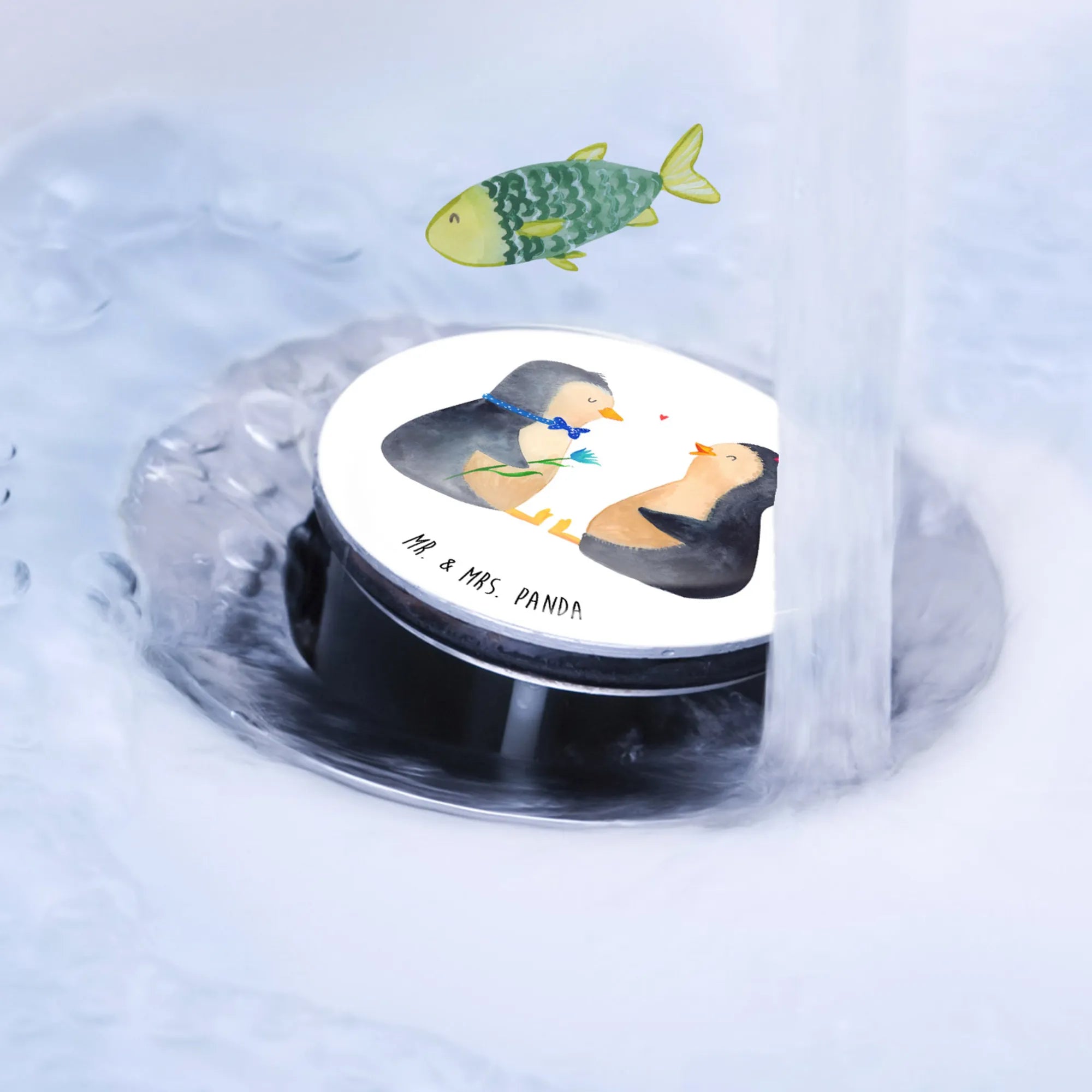 Introducing the charming Sink Plug by Mr. & Mrs. Panda! This magnificent sink stopper measures 72 mm in height and 40 mm in diameter, making it the perfect fit for any standard sink. Made from quality chrome-plated material, it boasts a beautiful design featuring delightful panda art and inspirational quotes. Not only does it look great, but it also features a unique integrated hair catch, so your drain stays clear and unclogged. The surface is designed with a sturdy coating for longevity and ease of use. Maintaining this charming accessory is simple; just rinse under warm water and avoid harsh cleaning agents to keep it shining. Upgrade your bathroom with this cute and functional washbasin accessory today!