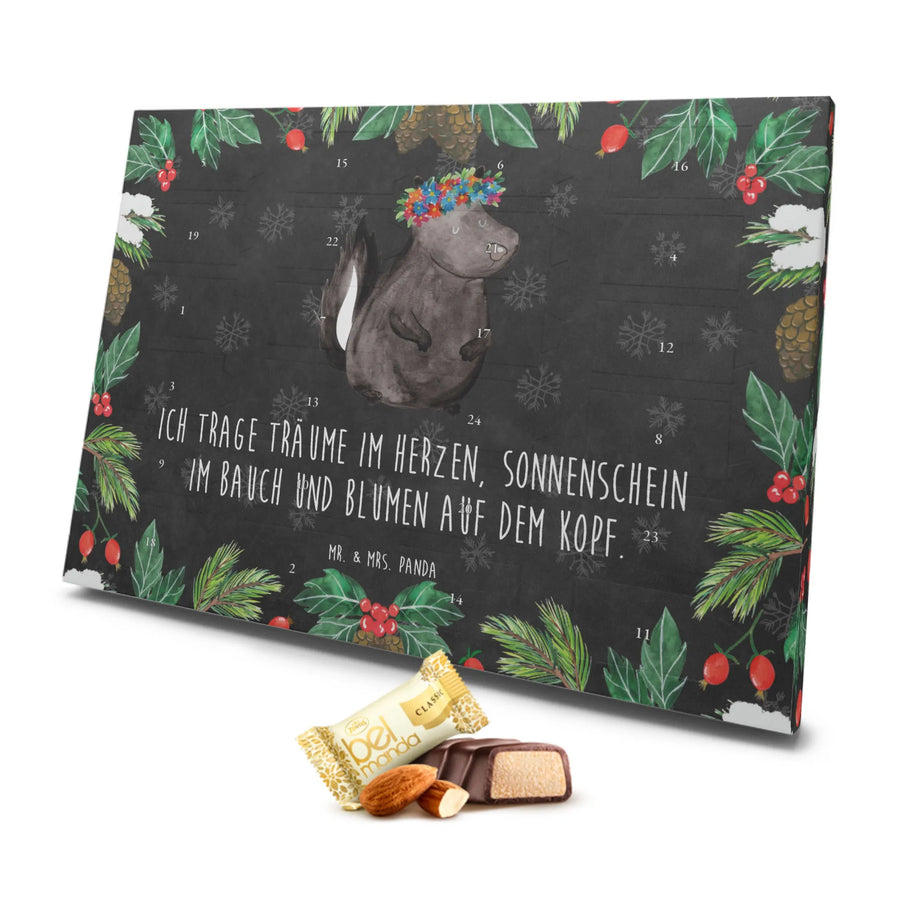 Der wunderschöne Marzipan Adventskalender mit dem einzigartigen Motiv "Stinktier Blumenmädchen" aus der Stinktier-Kollektion von Mr. & Mrs. Panda ist das perfekte Geschenk für alle Naturliebhaber und Freunde von süßen Überraschungen zur Adventszeit. Mit seinem liebevoll gestalteten Design bringt dieser Adventskalender Freude und Licht in den Dezember.