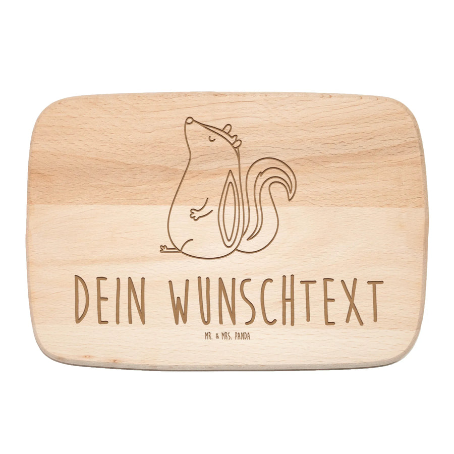 Verschenke Lächeln, Persönlichkeit und ein klares Statement – mit dem personalisierten Frühstücksbrett Stinktier sitzend von Mr. & Mrs. Panda. 🥐☕