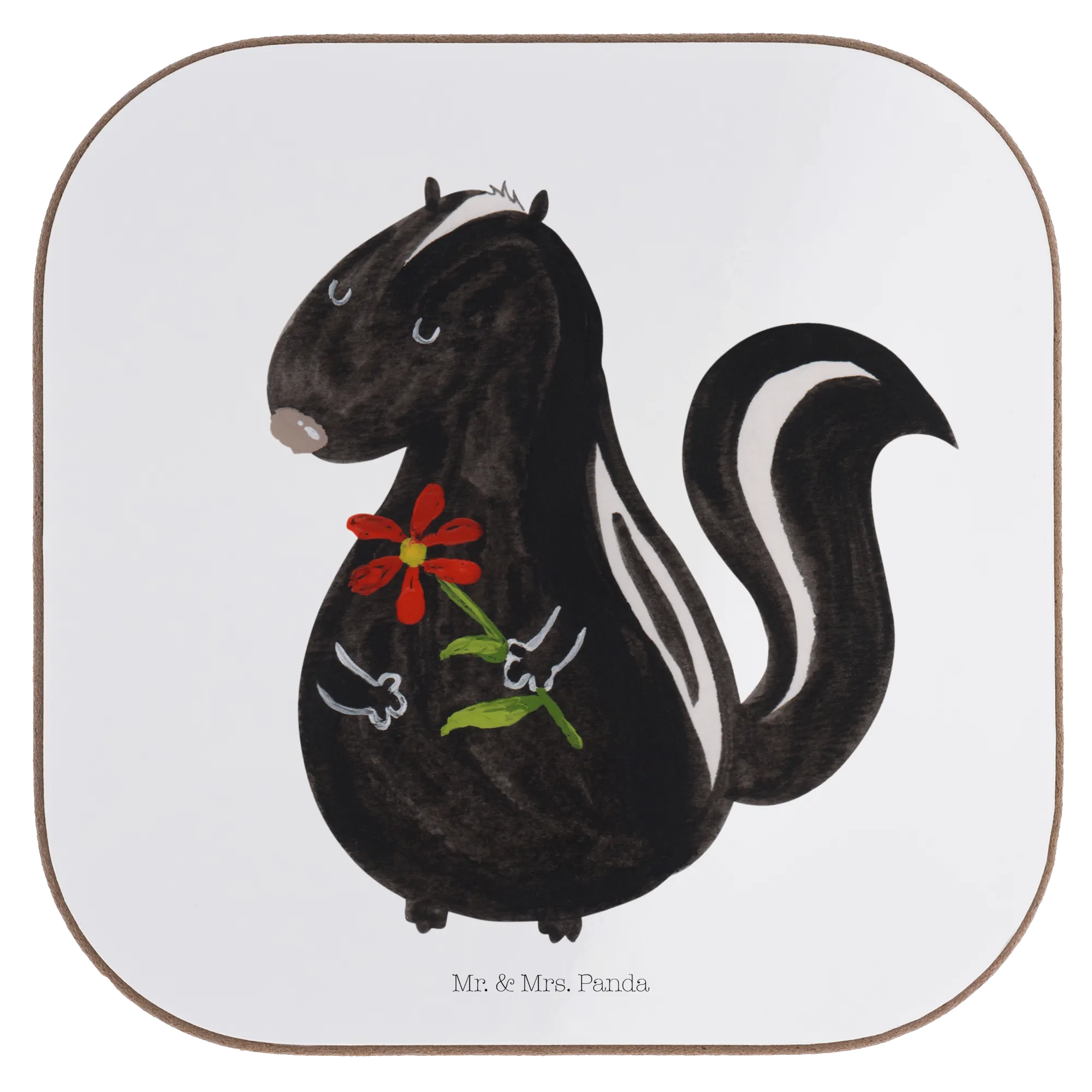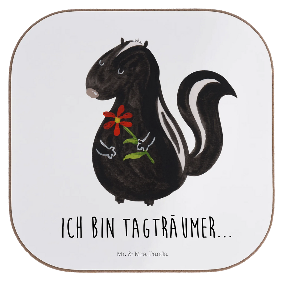 Square coaster skunk flower - with saying - White