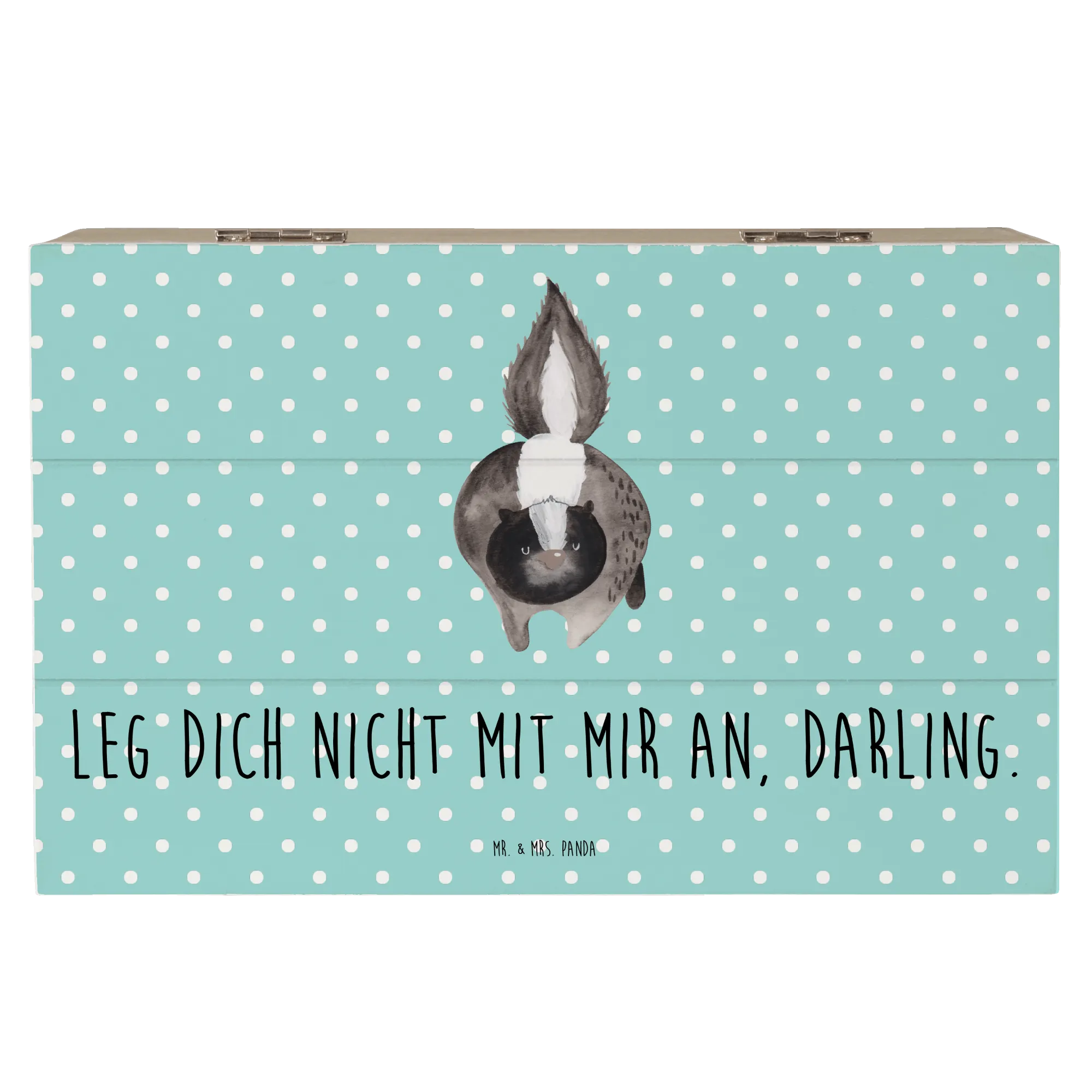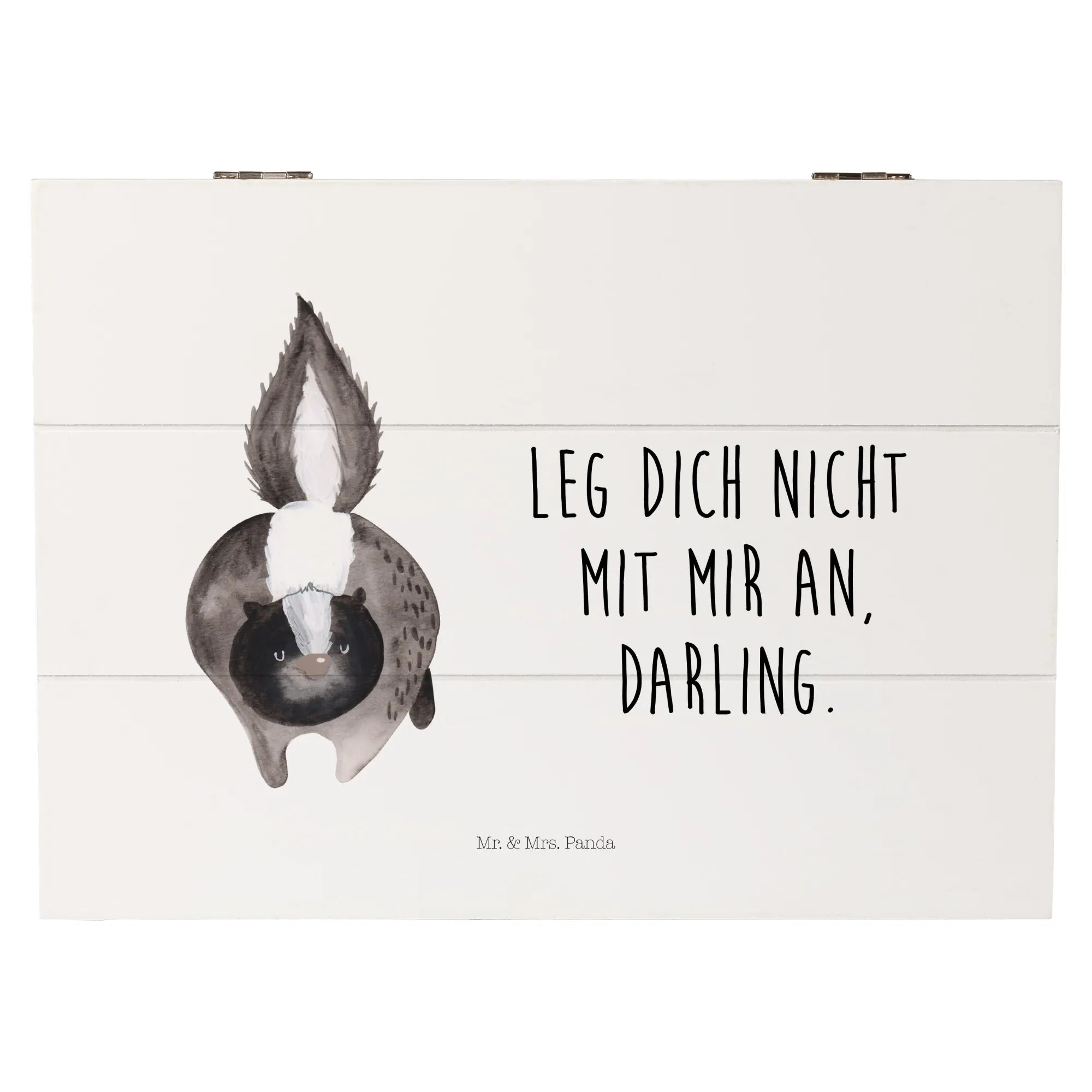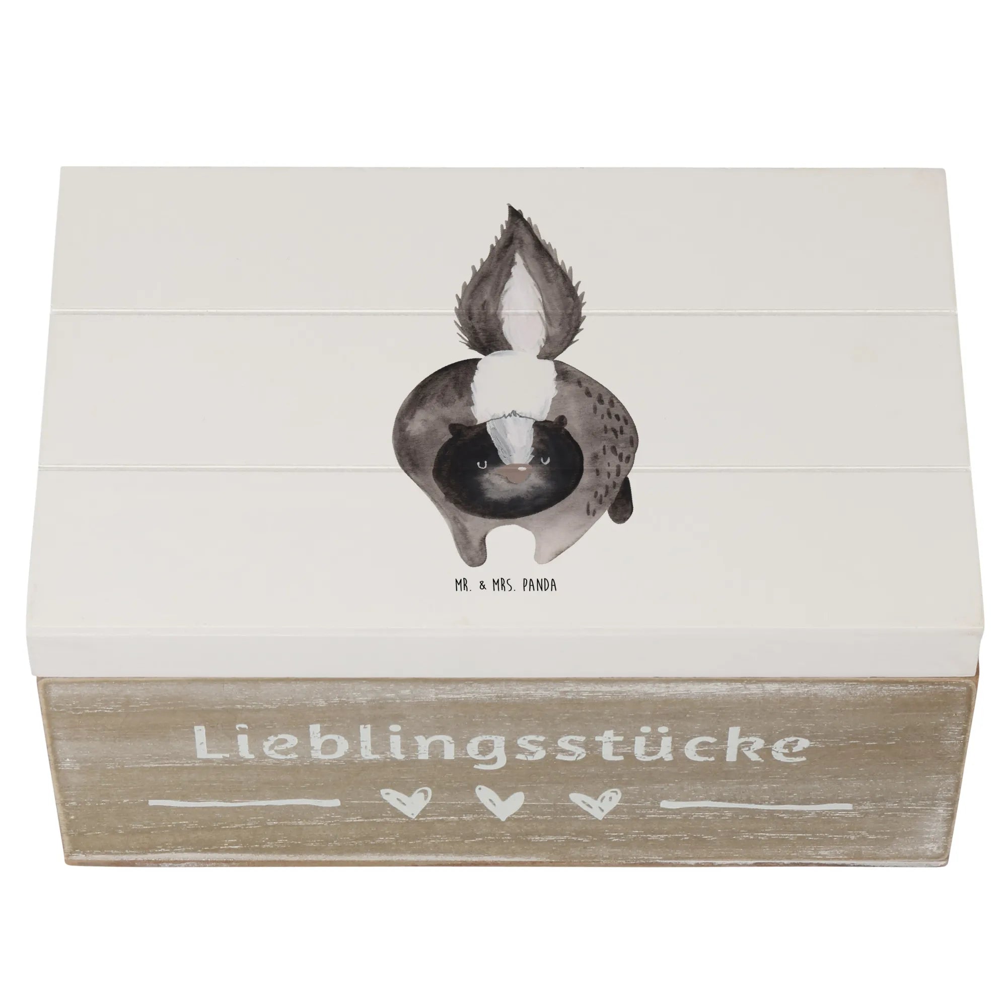 Wooden chest skunk attack - 22 x 15 cm - with saying - White