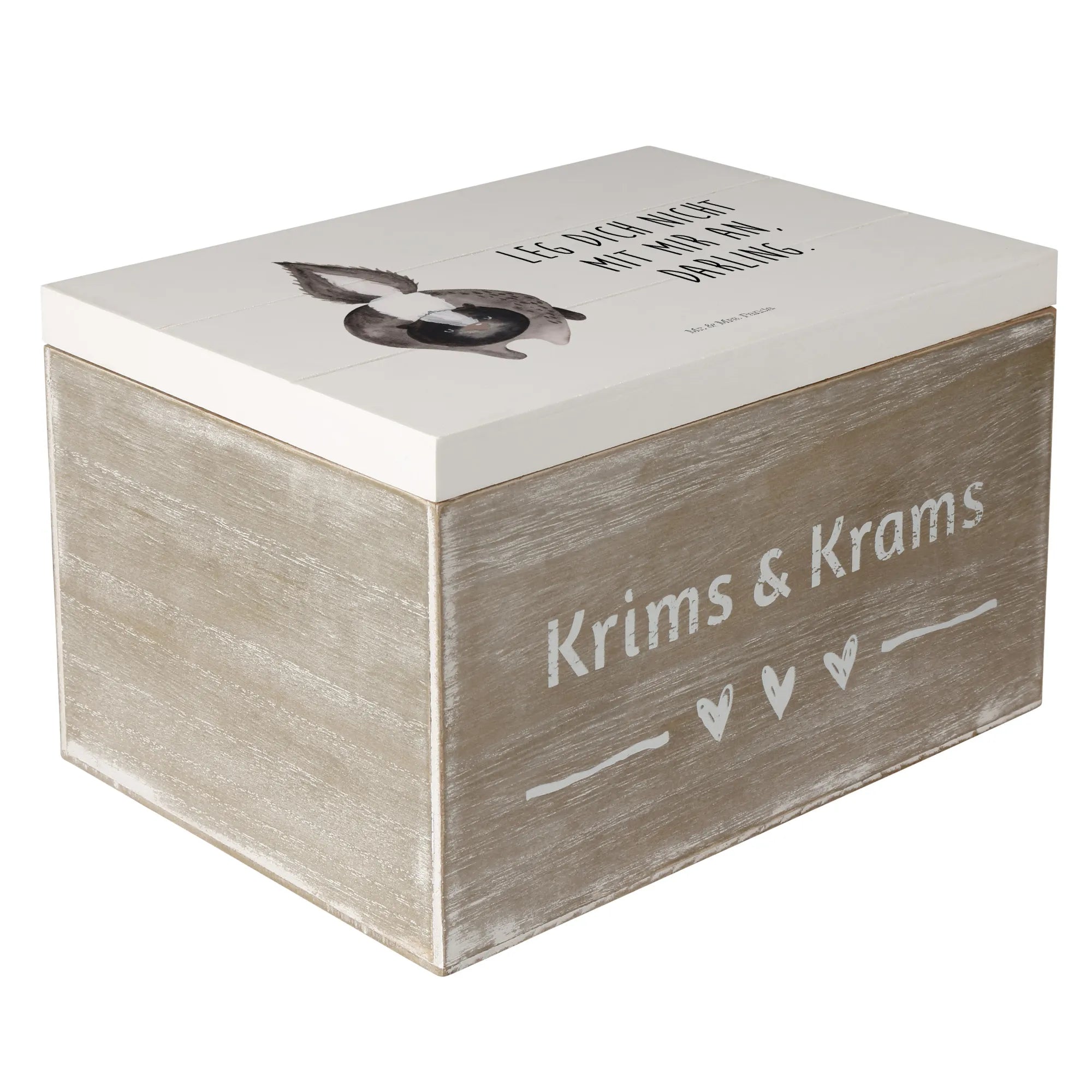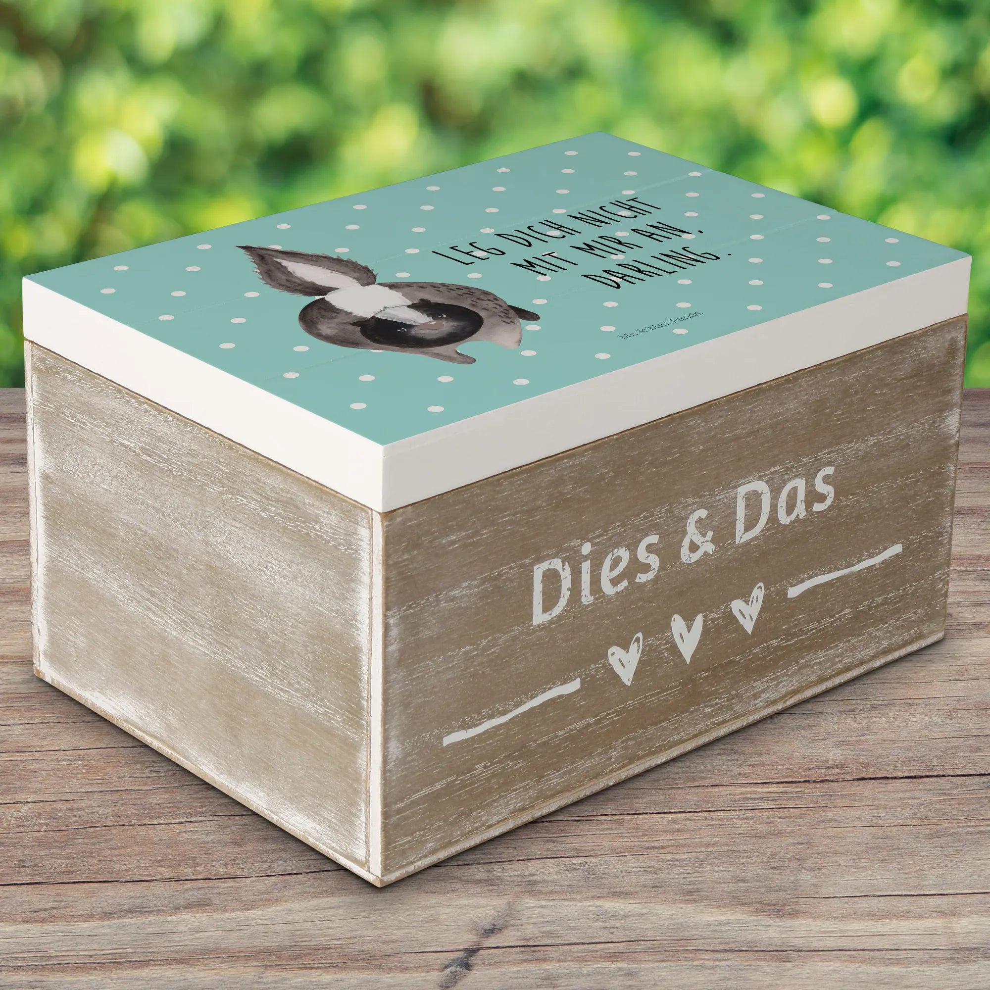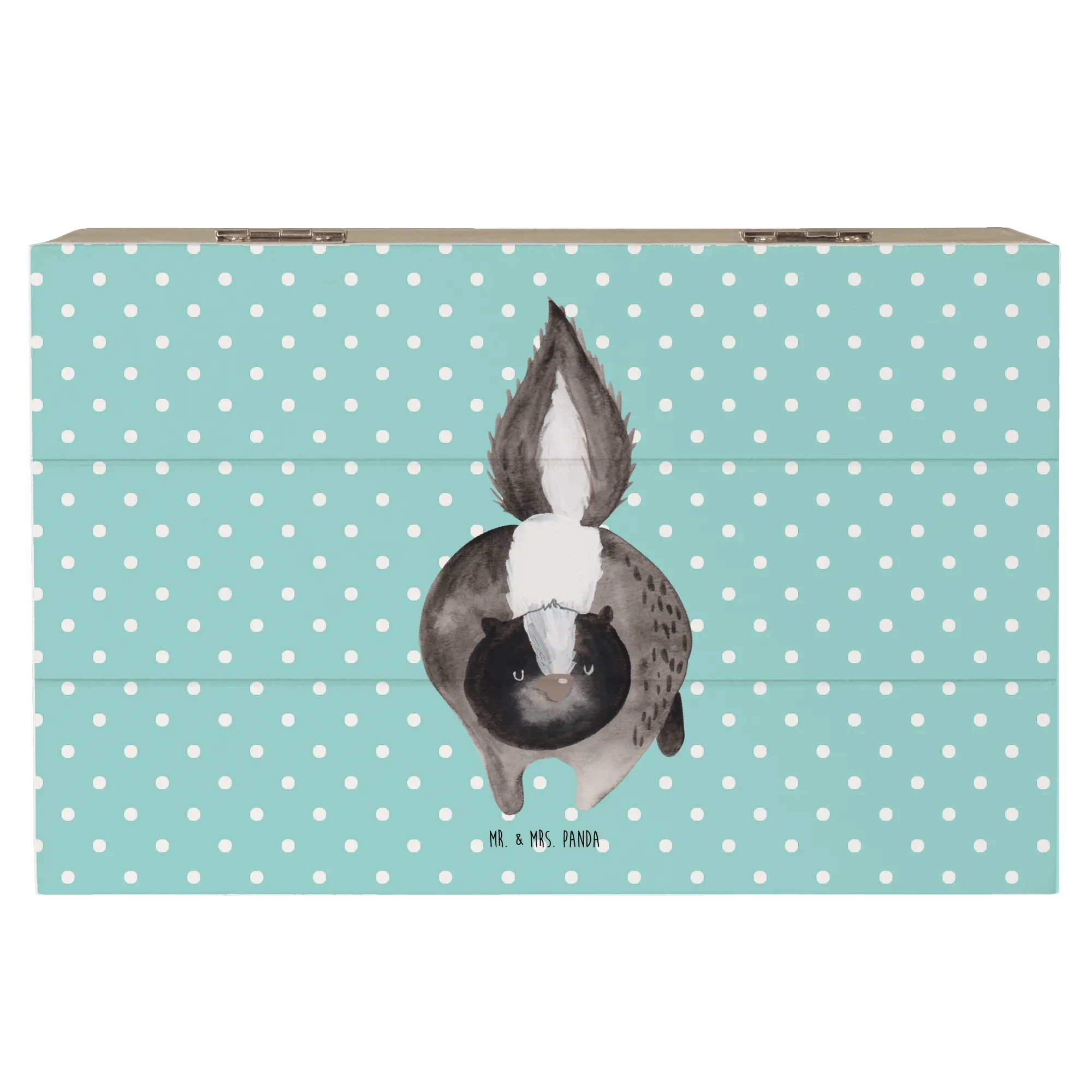 Wooden chest skunk attack - 22 x 15 cm - with saying - White