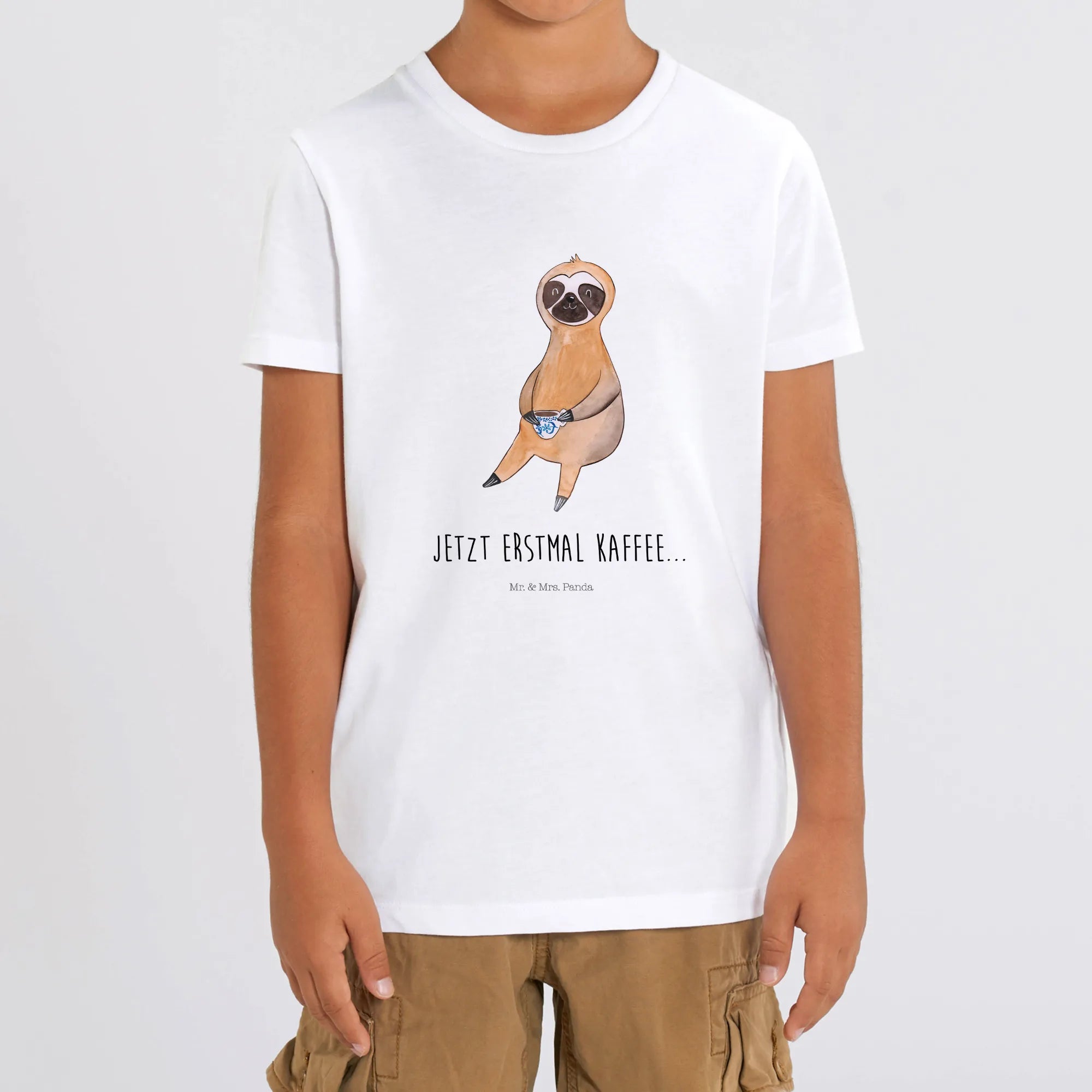 Looking for a delightful gift that's as unique as your little one? The Organic Kids T-Shirt featuring our adorable sloth and a coffee cup motif is the perfect choice!