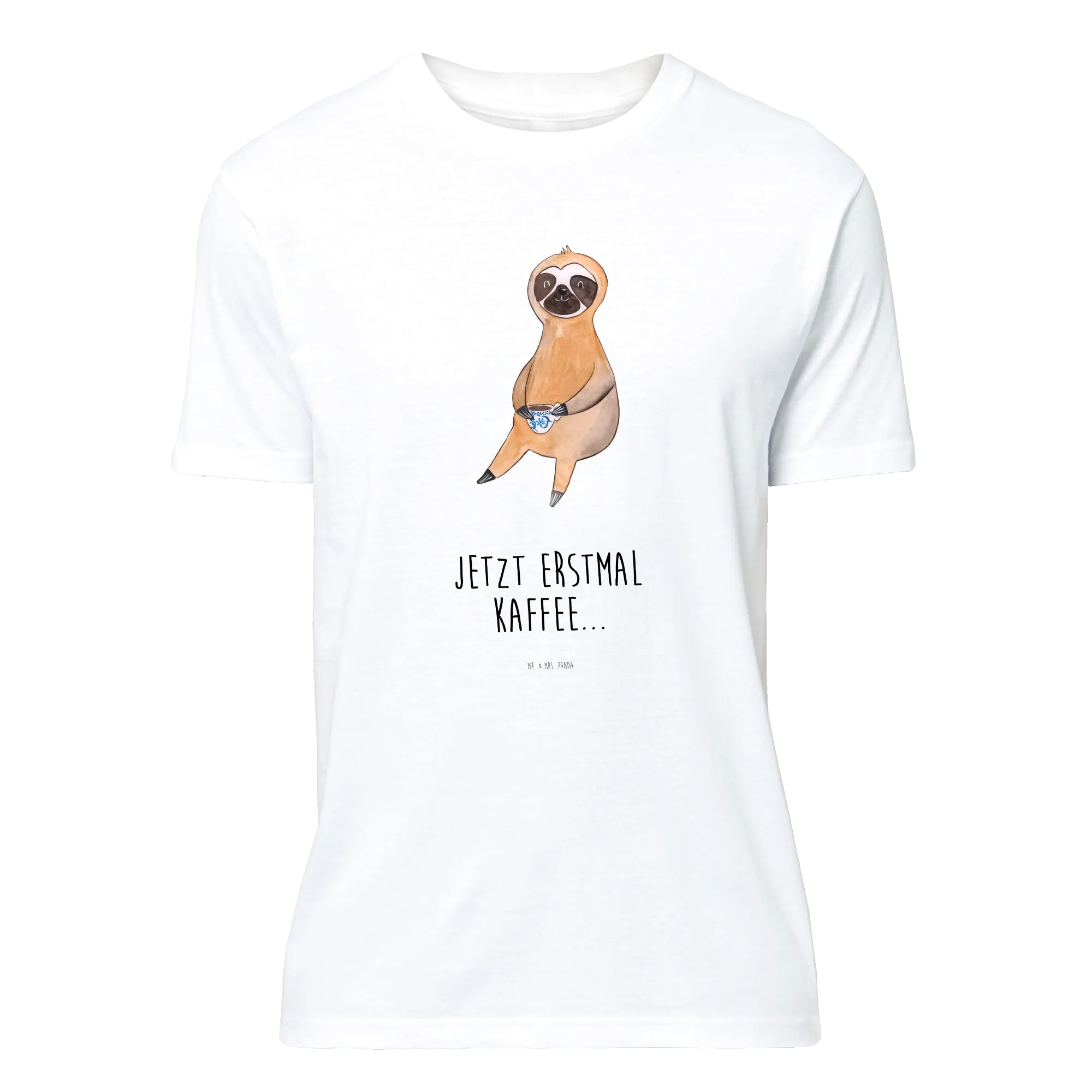 T-shirt sloth Coffee - Größe L T-Shirt - with a saying - White