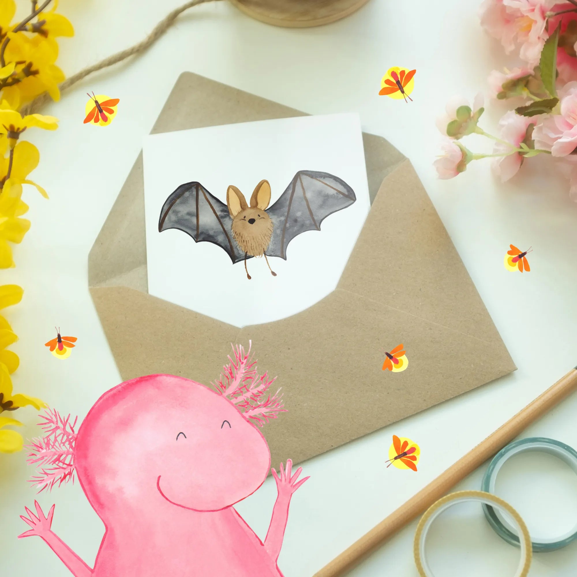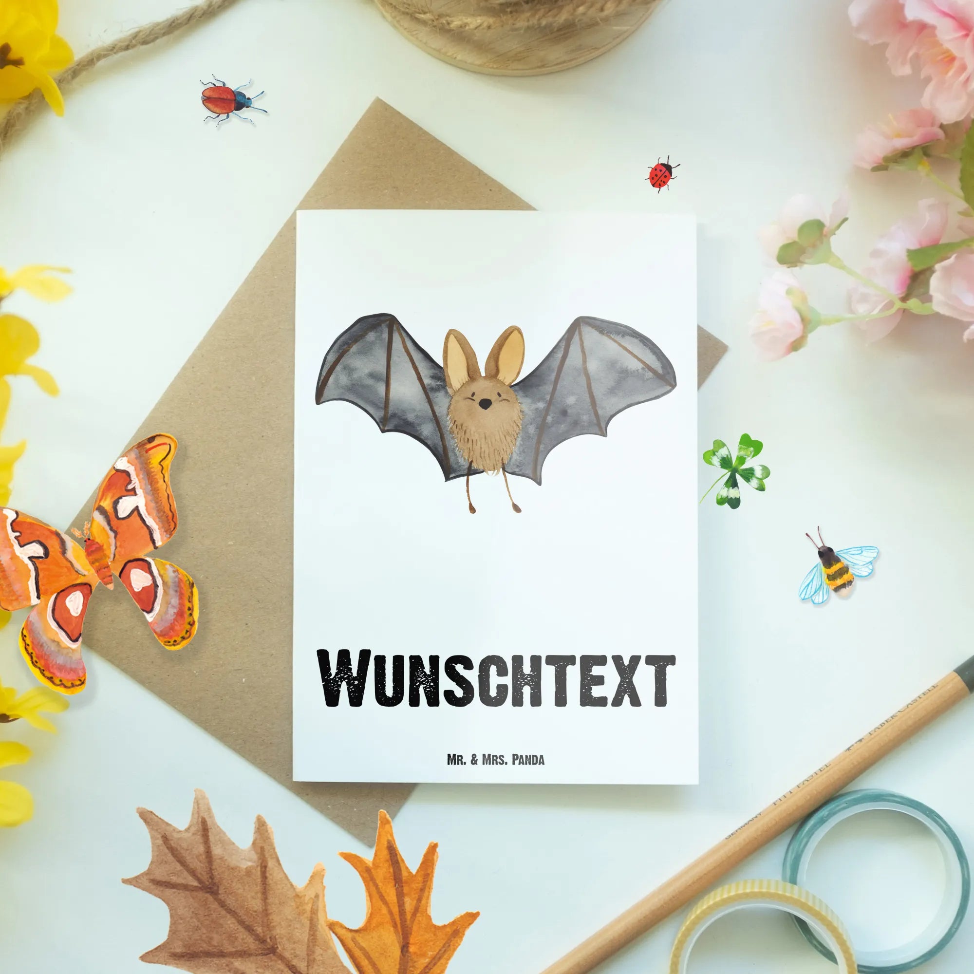 Personalised greetings card bat wing