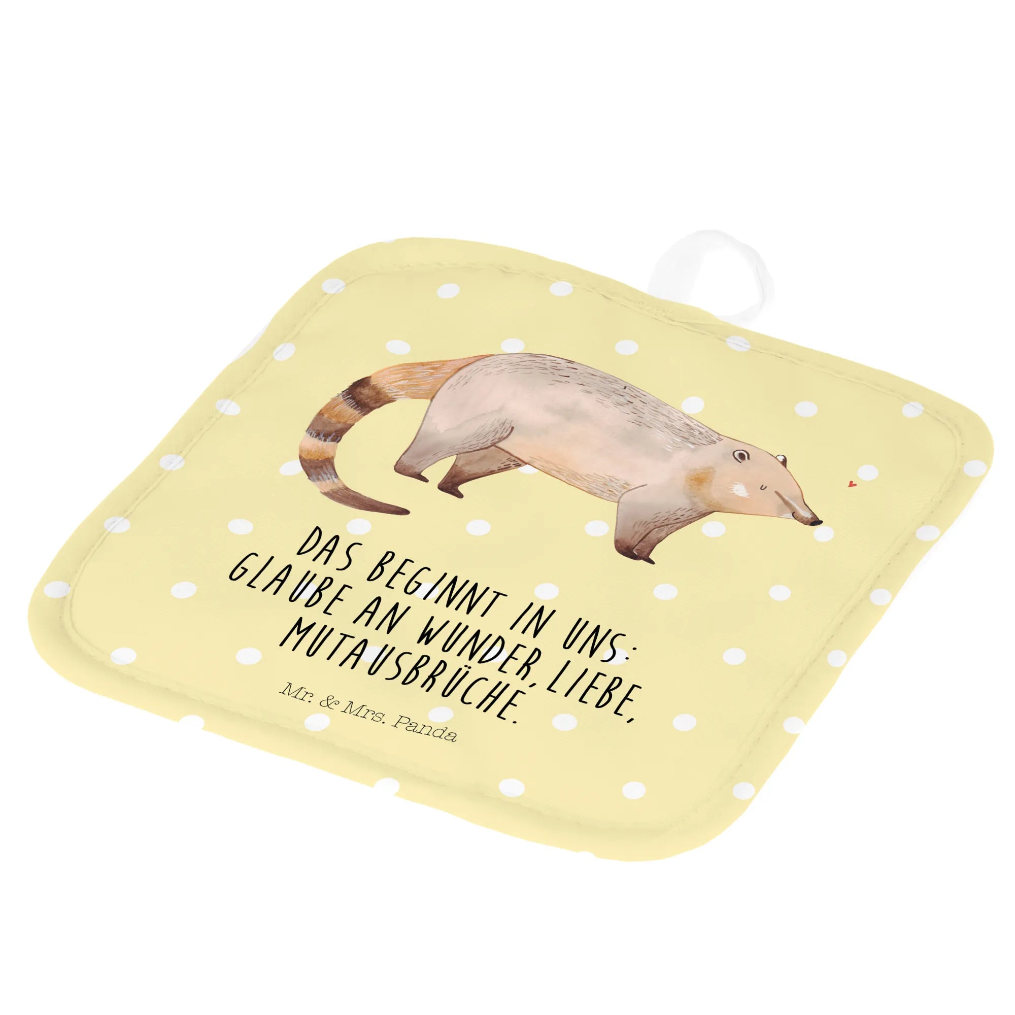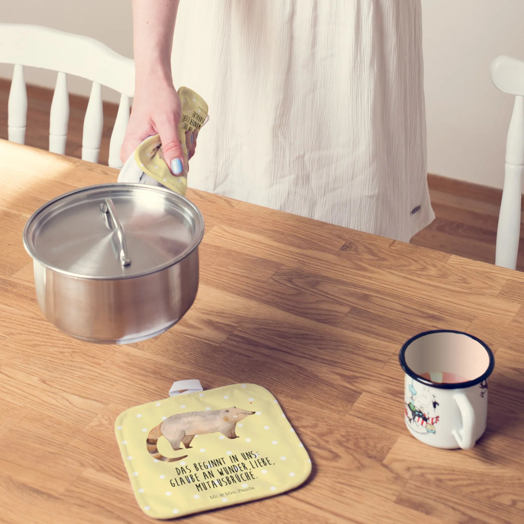 Pot holder Nasal Bear - with saying - Pastel Yellow