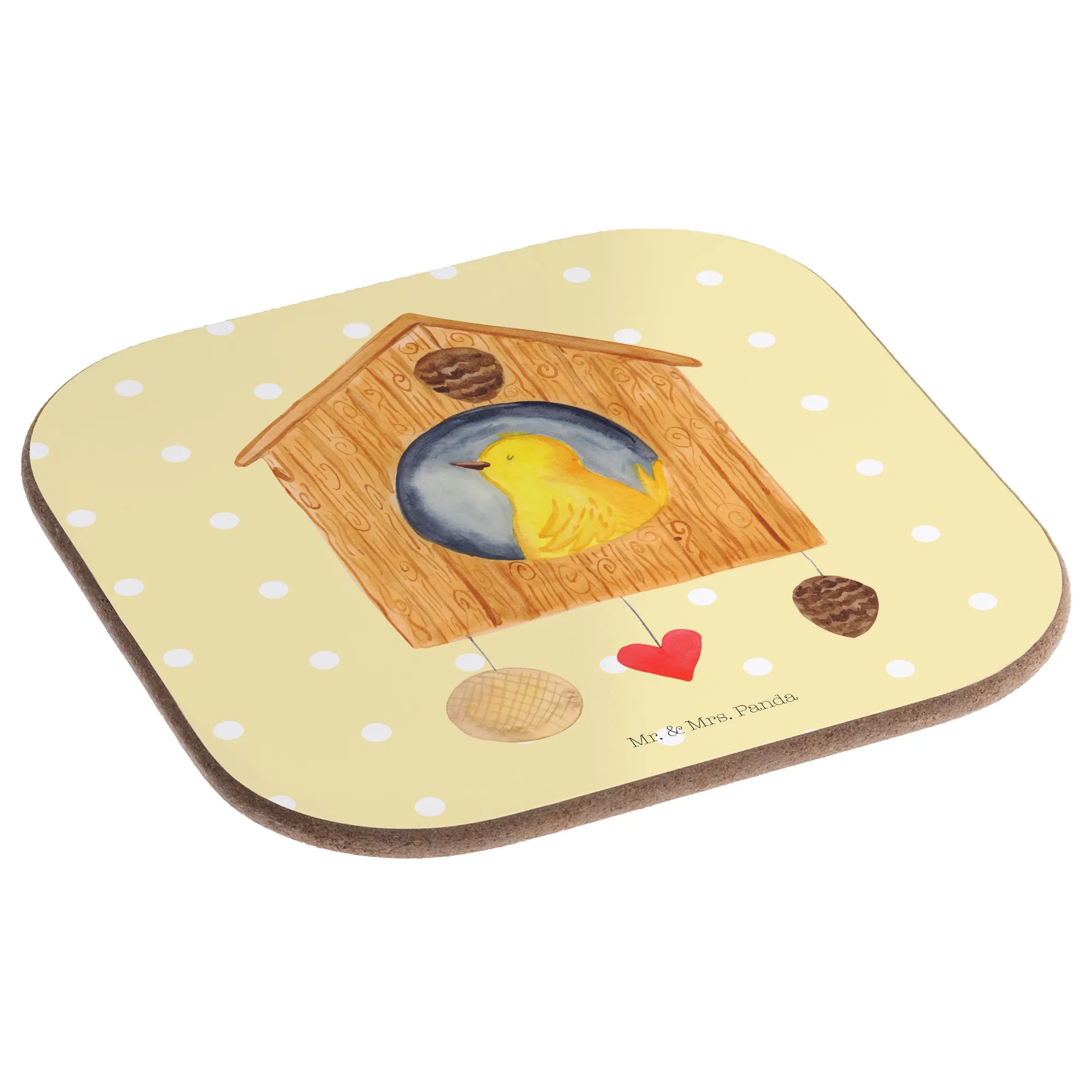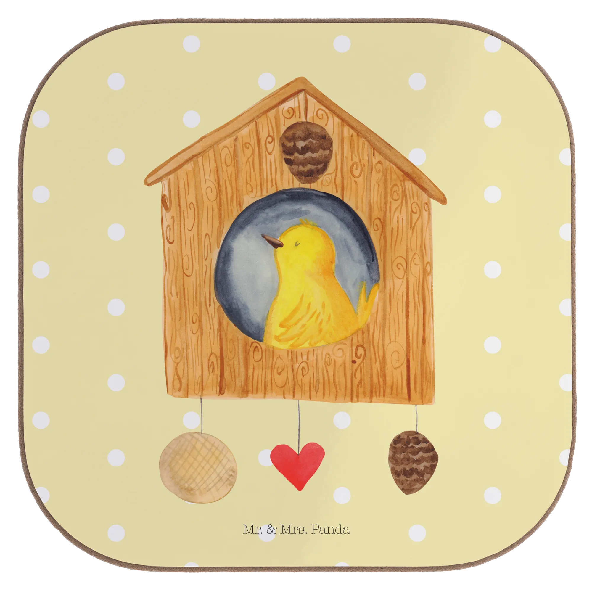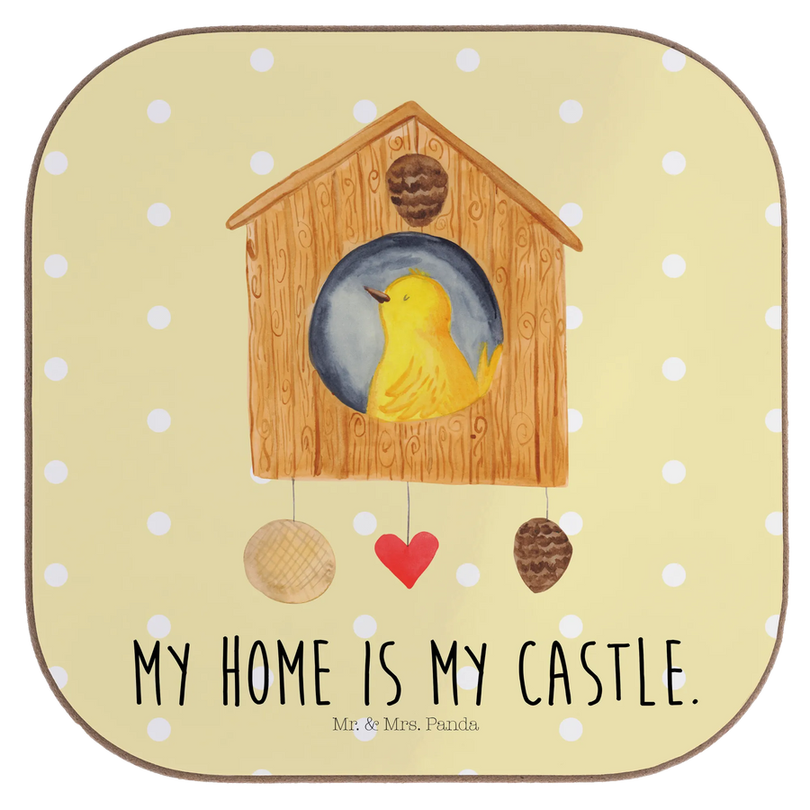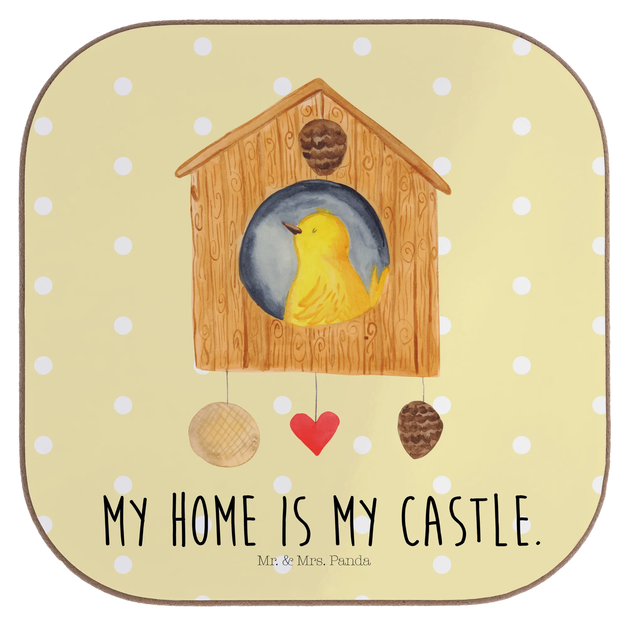 In the heart of nature, this charming motif captures a yellow bird nestled comfortably in its birdhouse, exuding warmth and serenity. This delightful little creature feels completely at home, proving that no matter where you are, comfort can always be found. As the saying goes, 'My home is my castle,' and in this cozy birdhouse, every moment feels just right—a true sanctuary for family and friends.