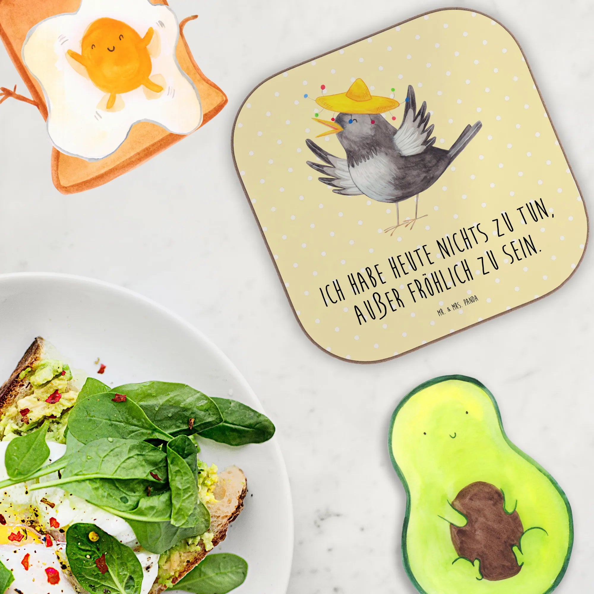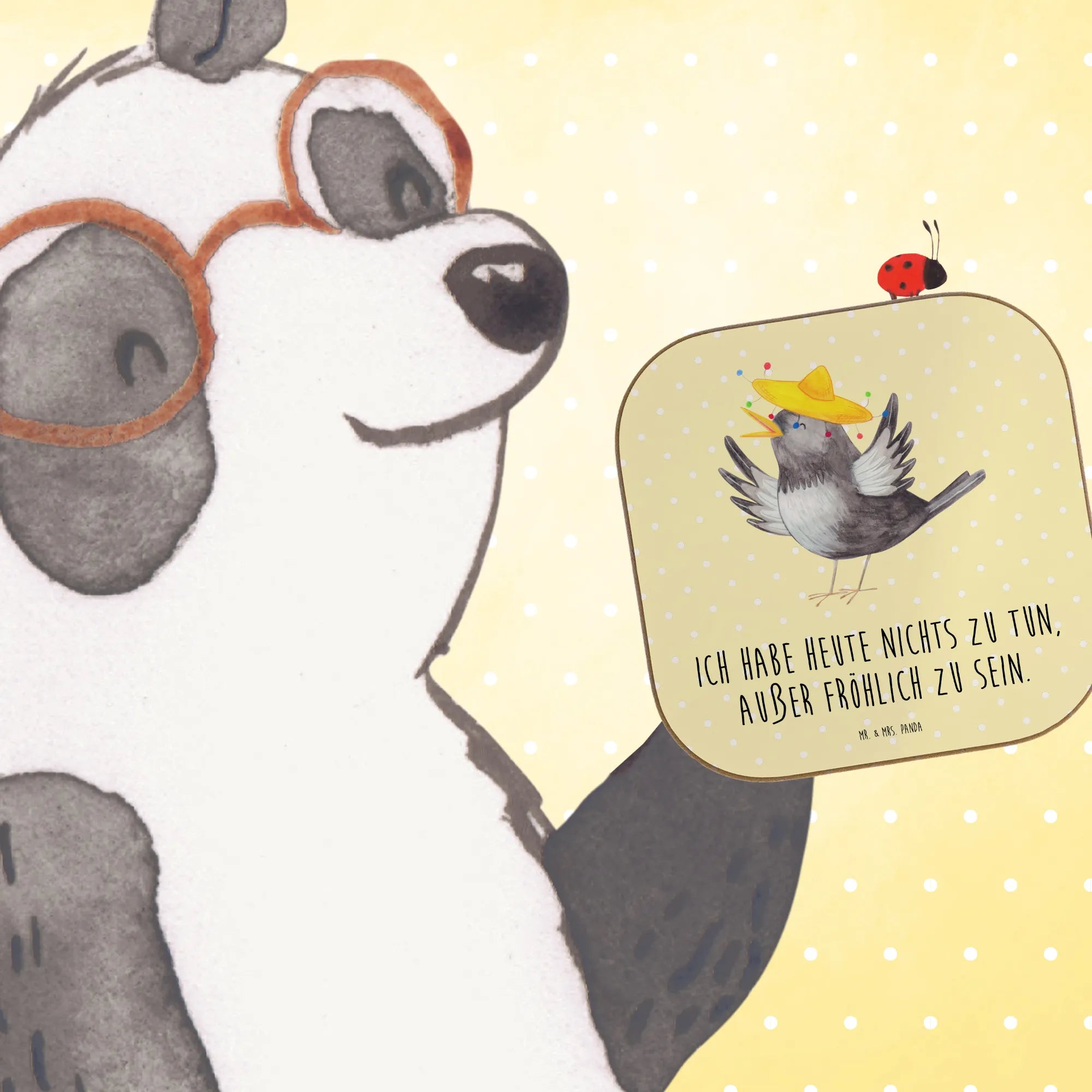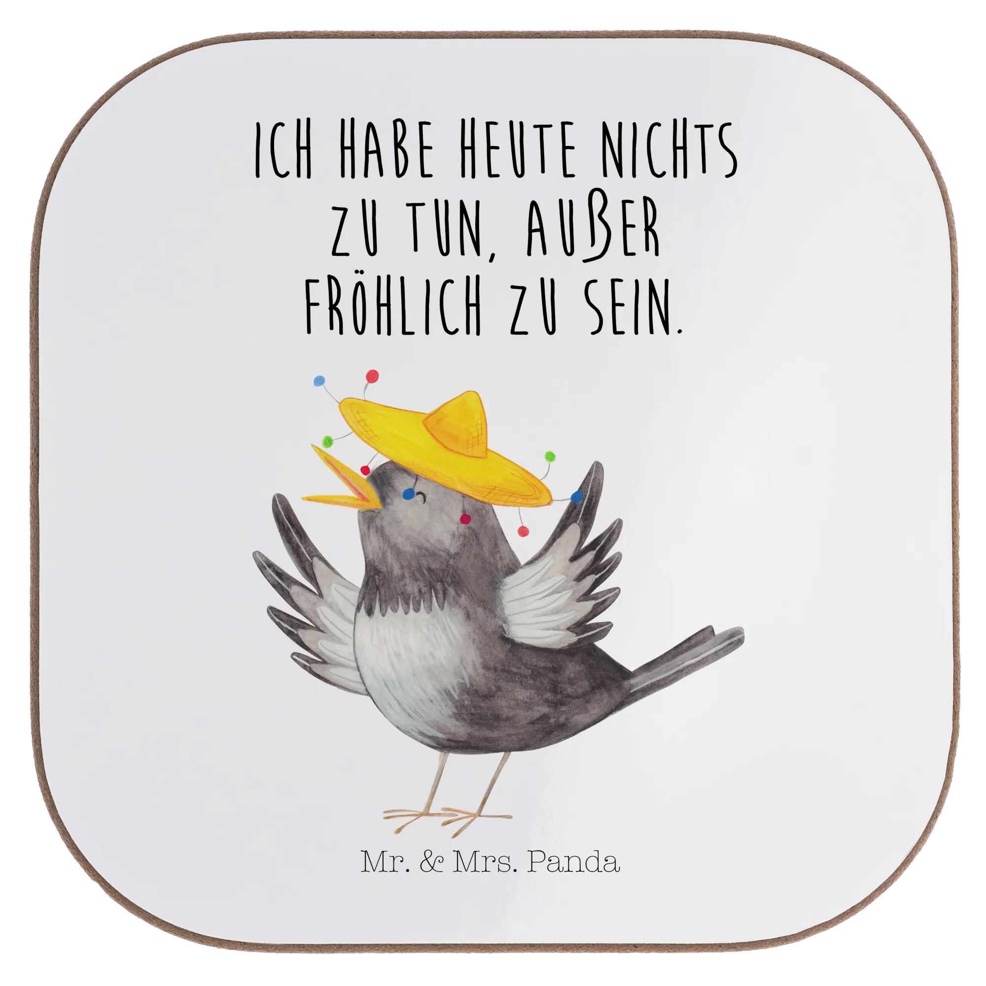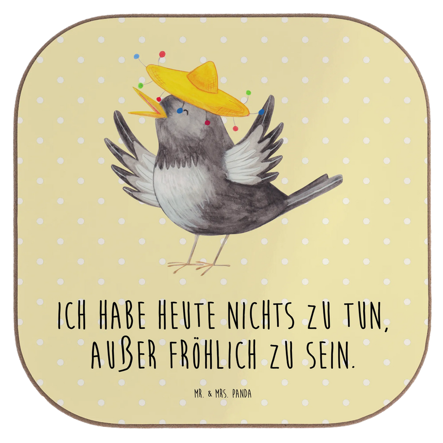 Square coaster Crow sombrero - with a saying - Yellow Pastel