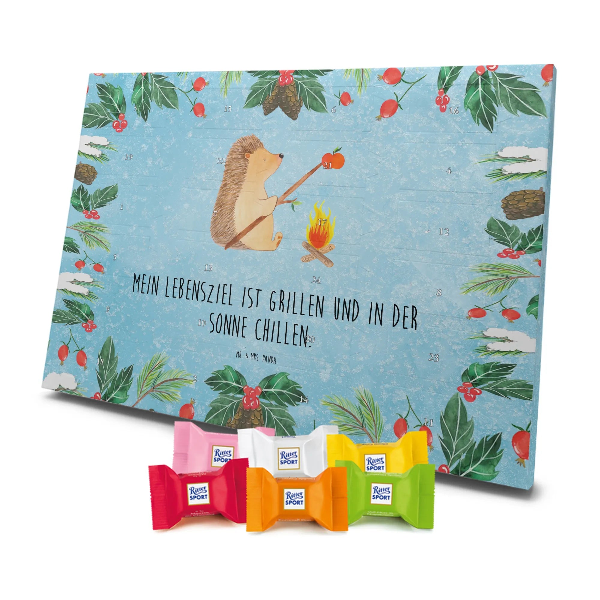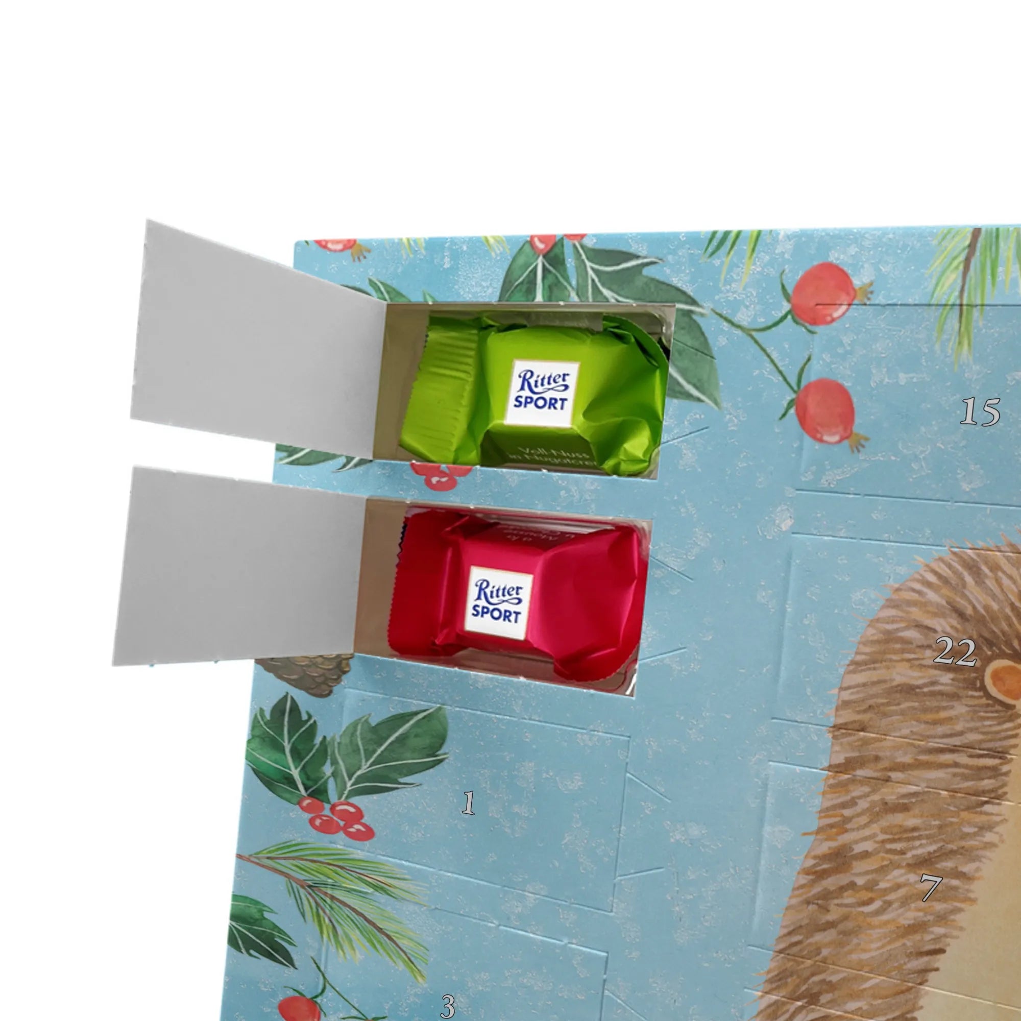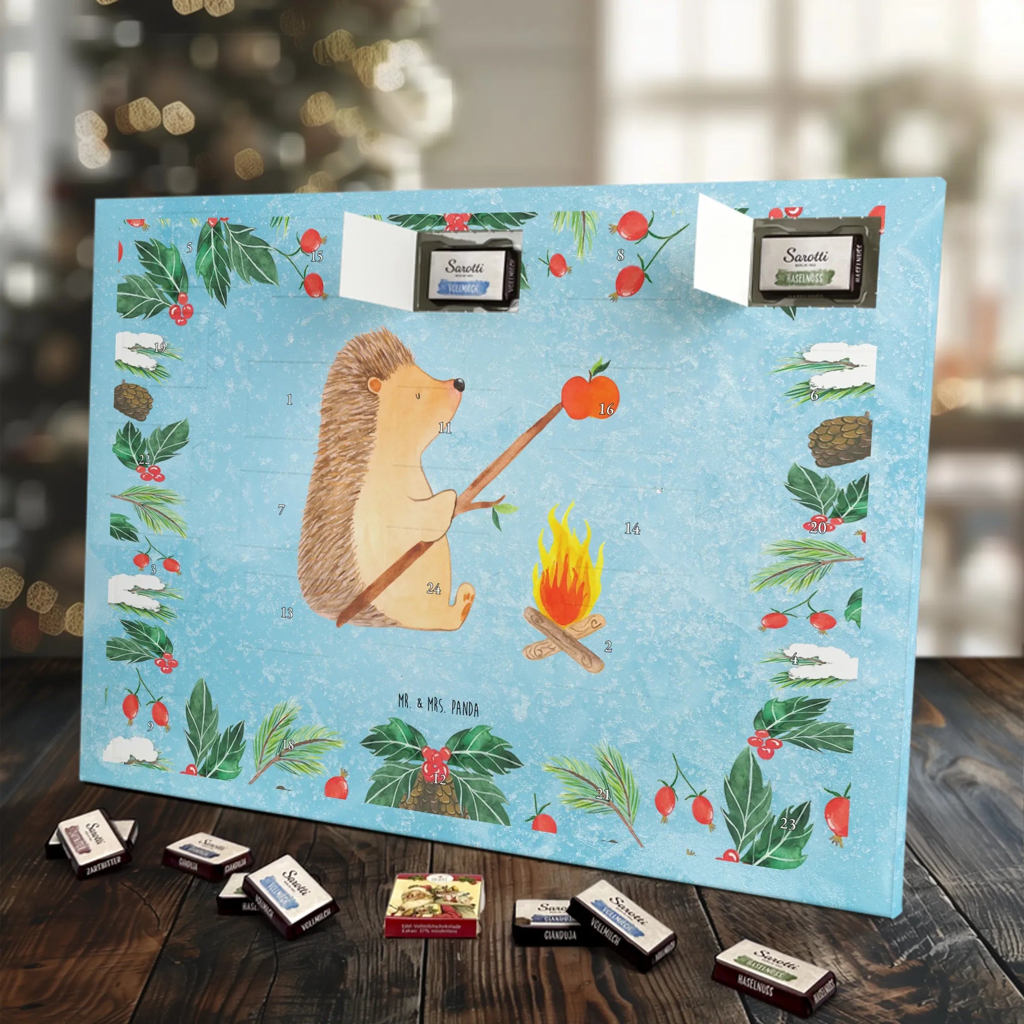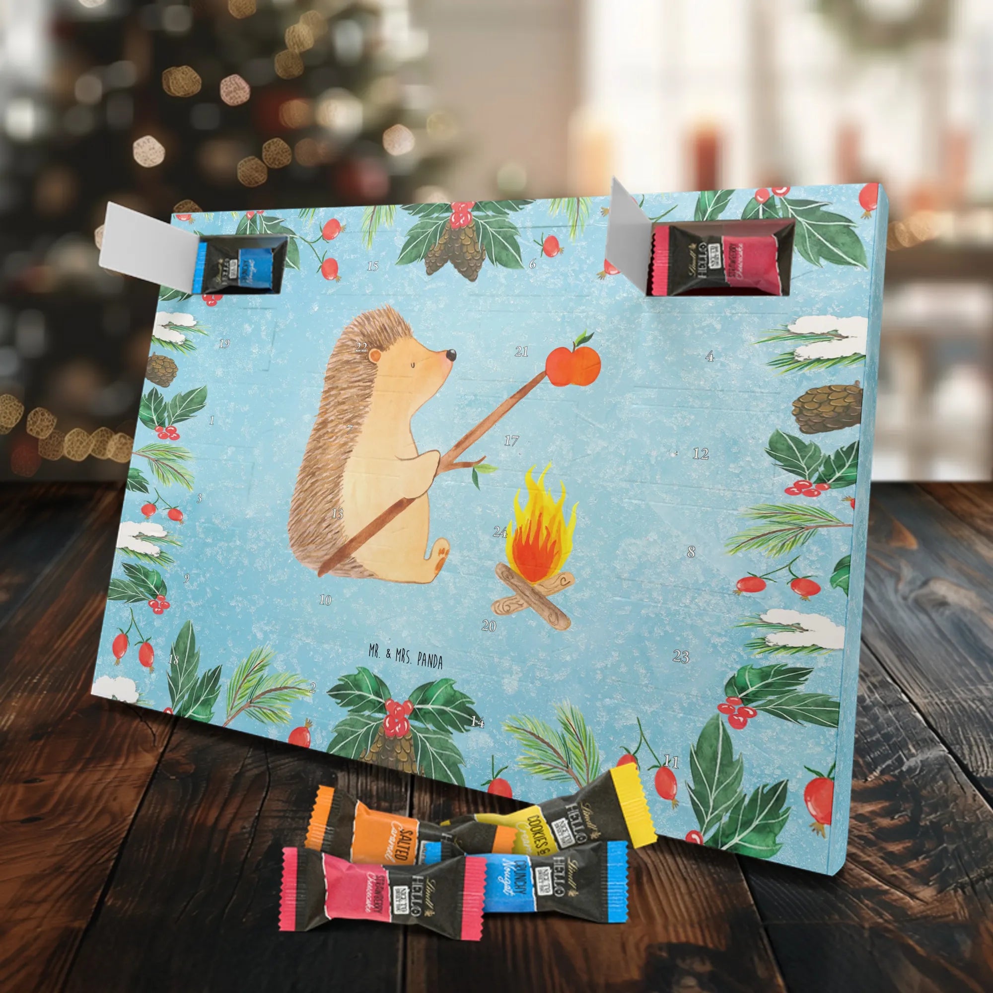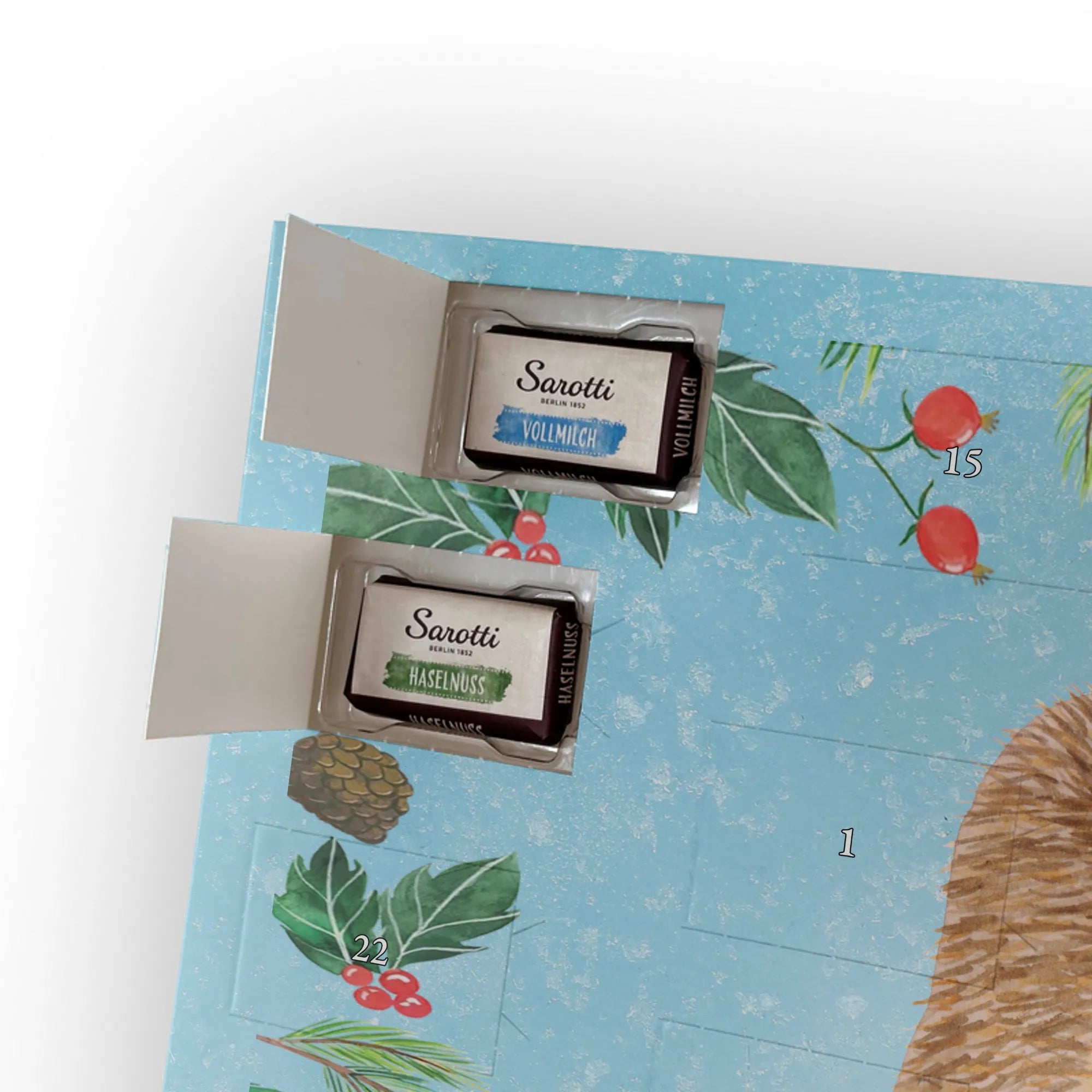 Chocolate advent calendar Hedgehog grilling - Classic - with saying - Ice Blue