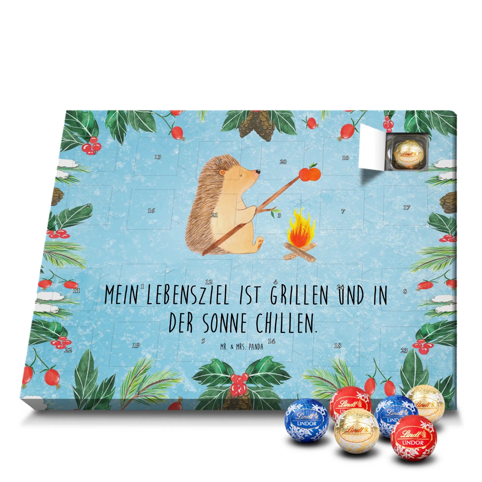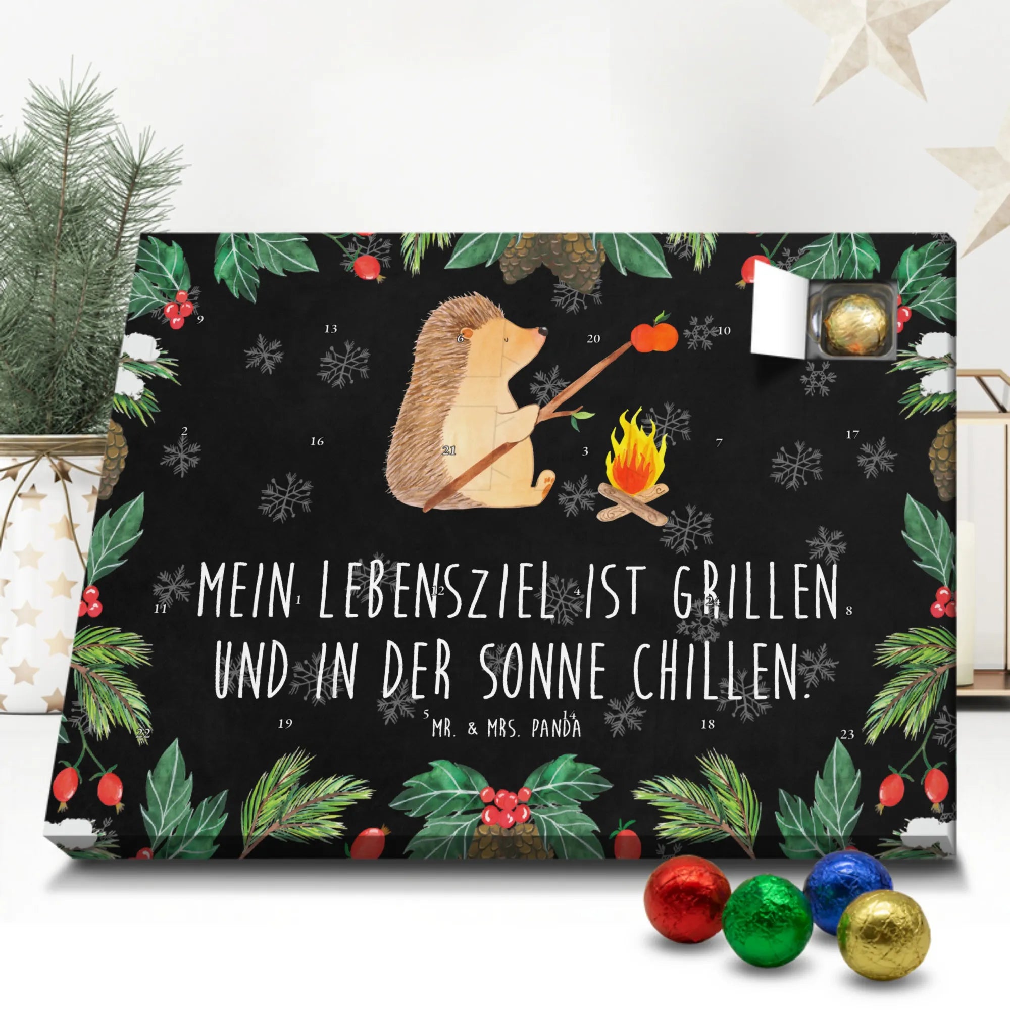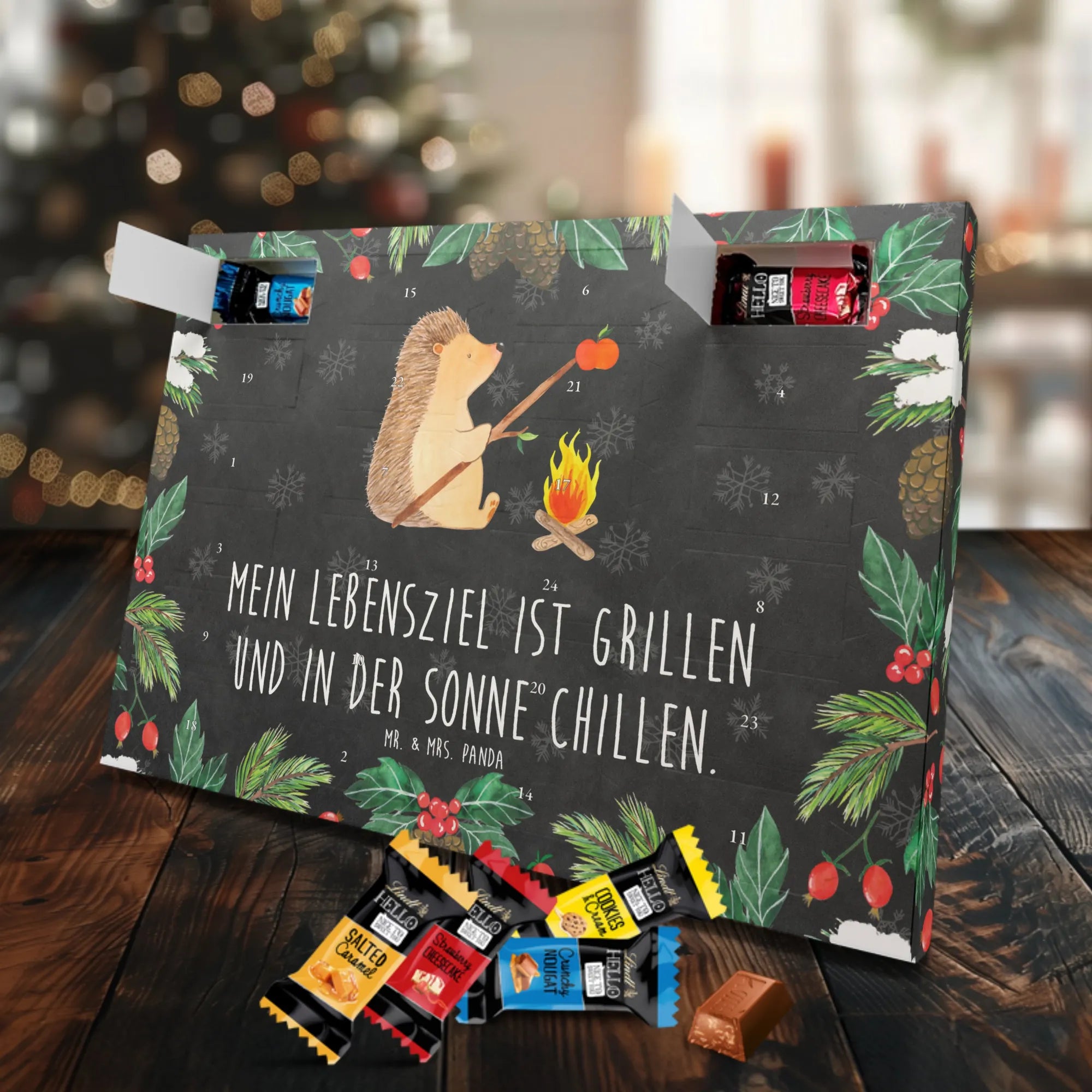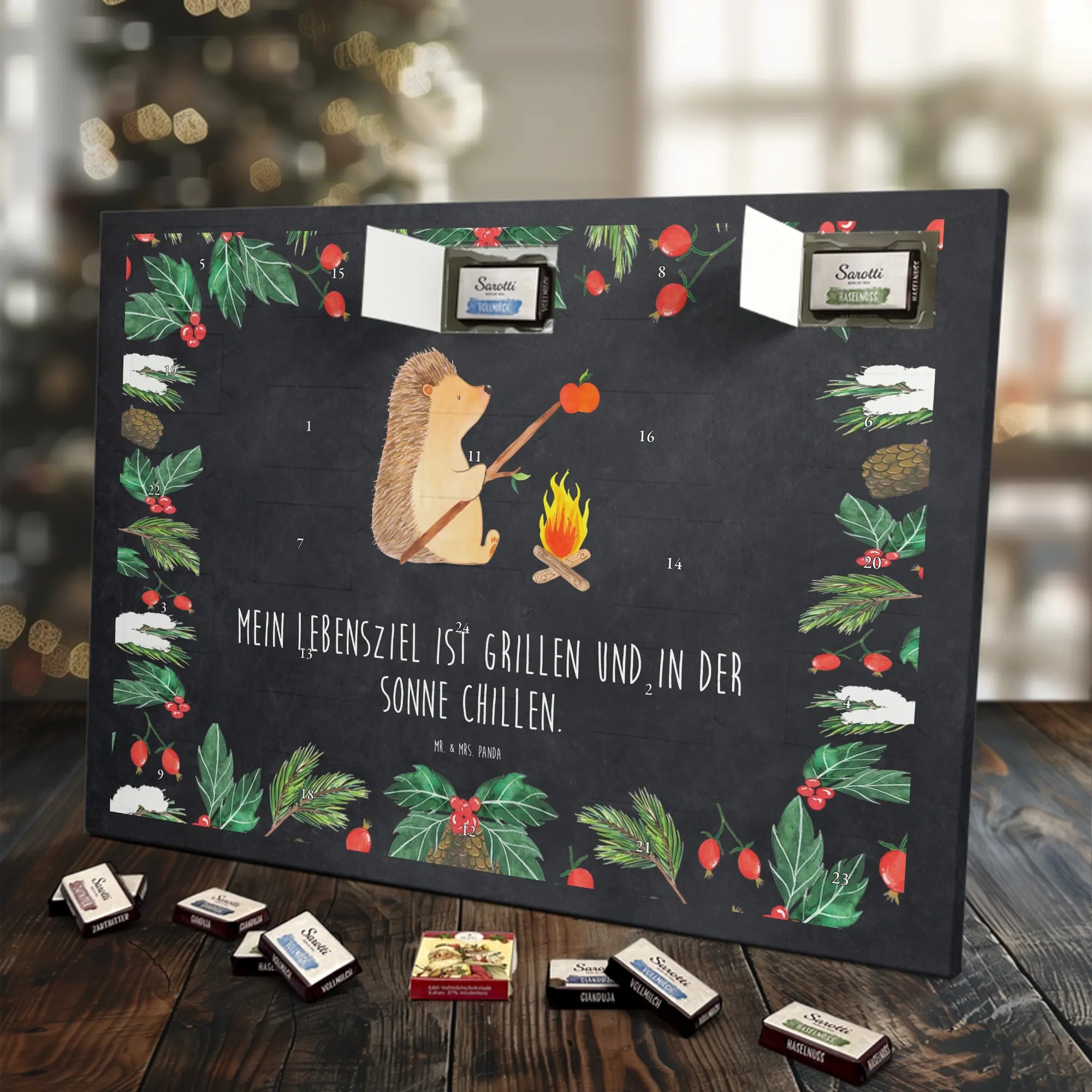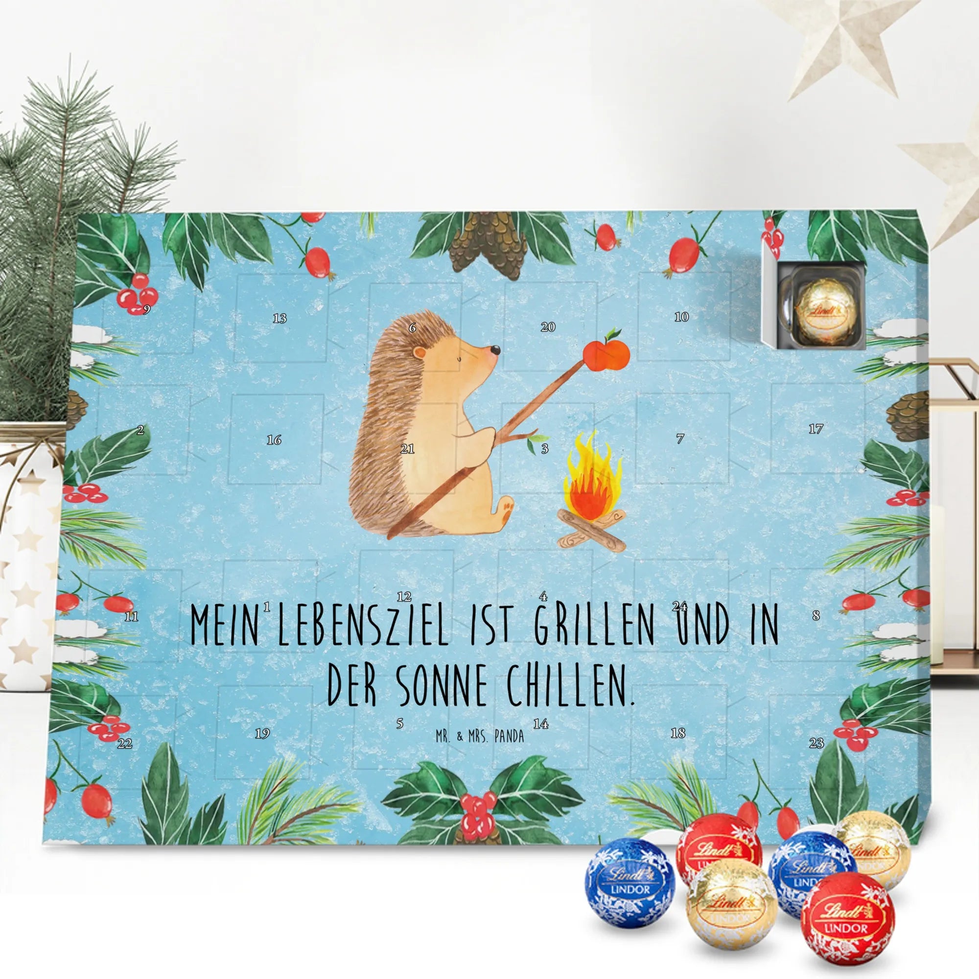 Chocolate advent calendar Hedgehog grilling - Classic - with saying - Ice Blue