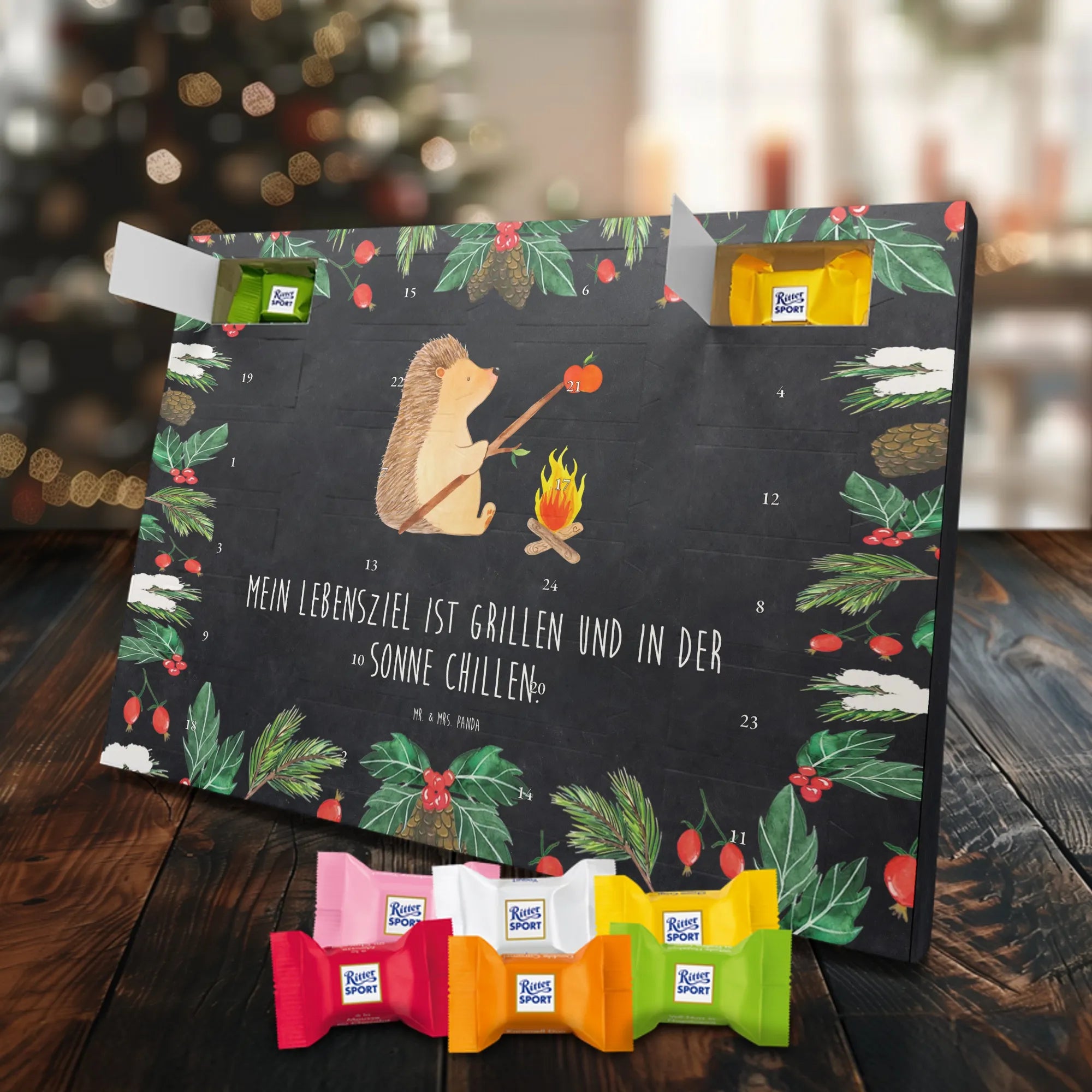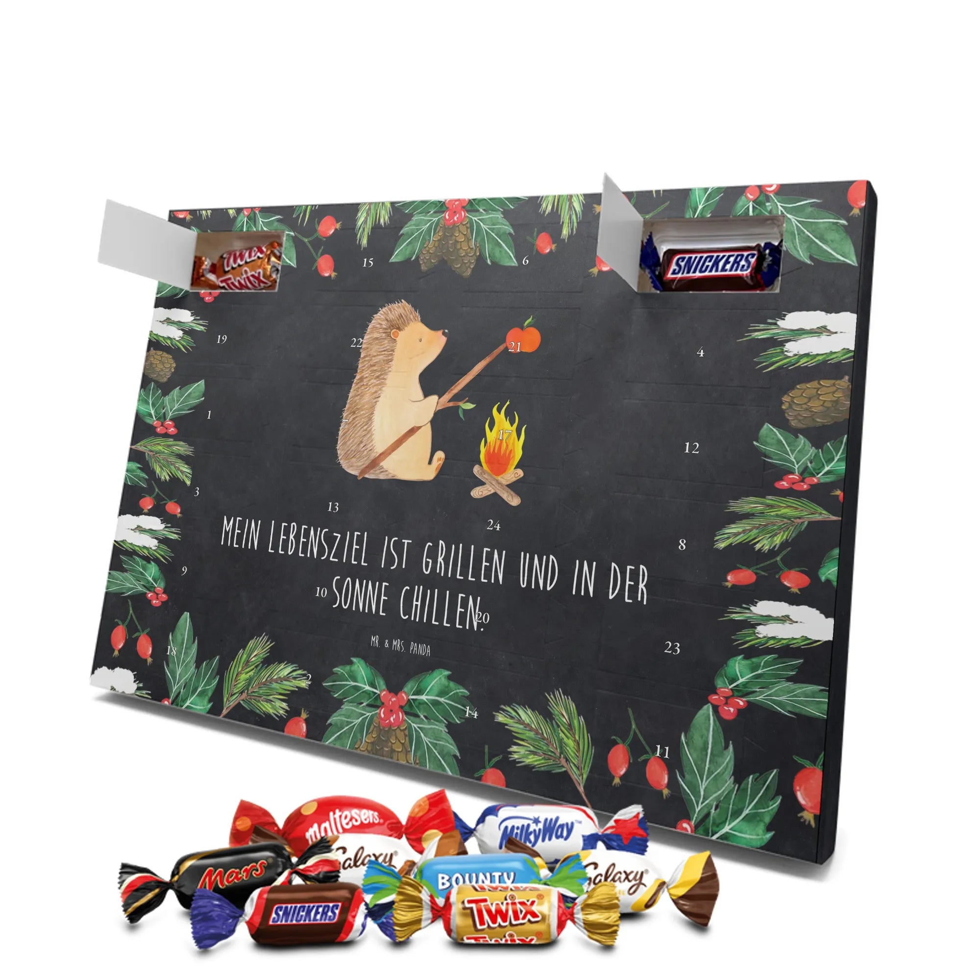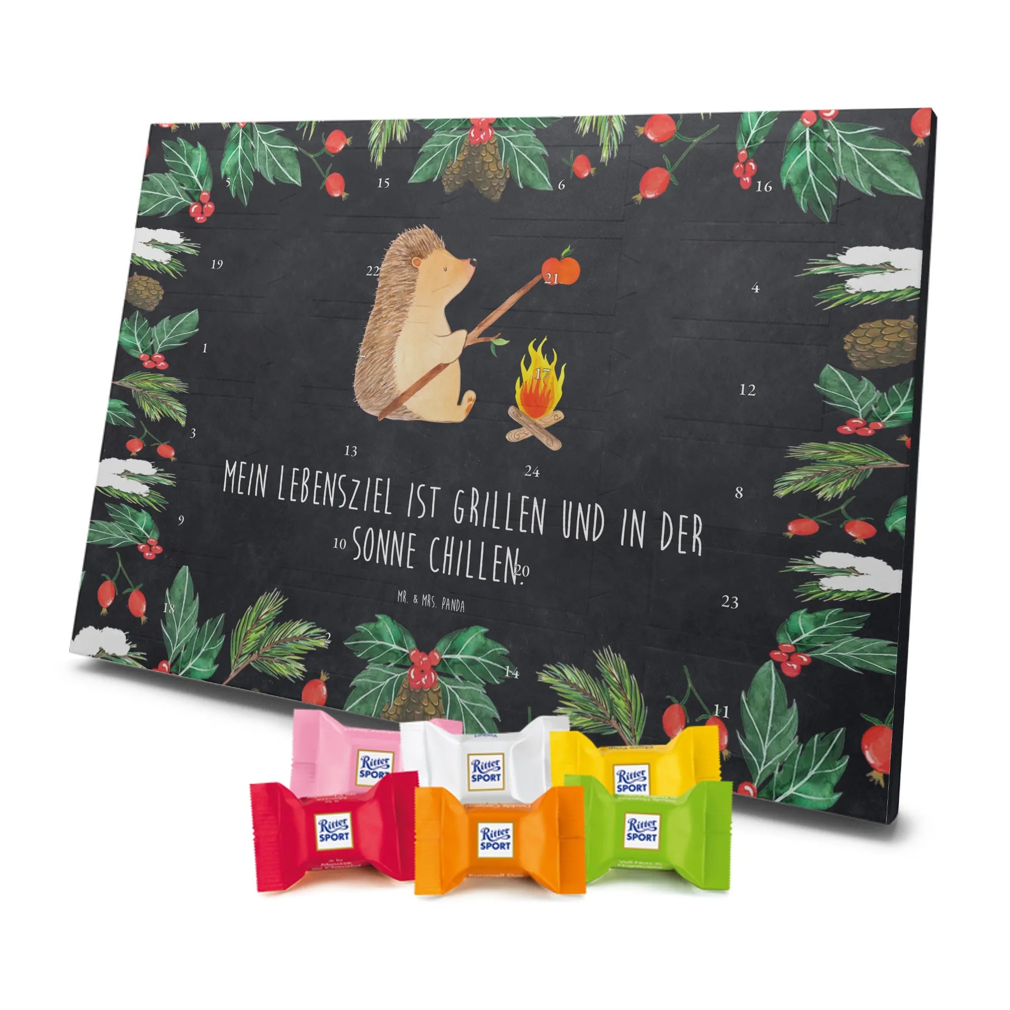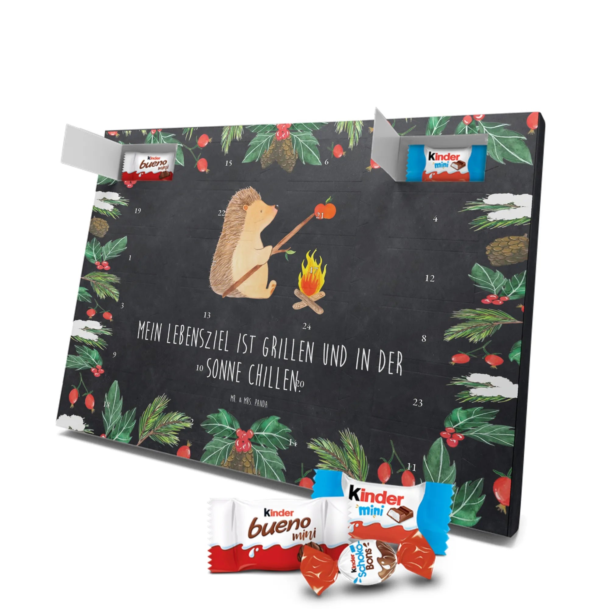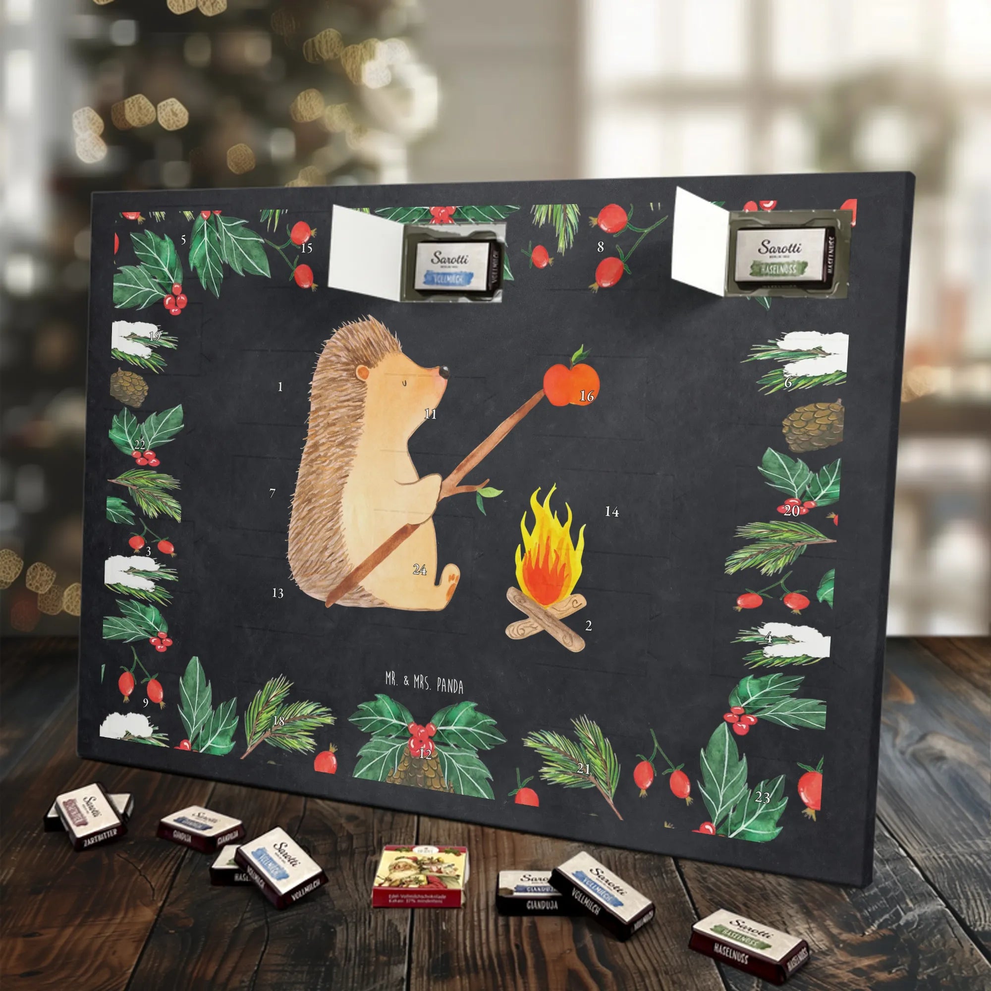 Chocolate advent calendar Hedgehog grilling - Classic - with saying - Ice Blue