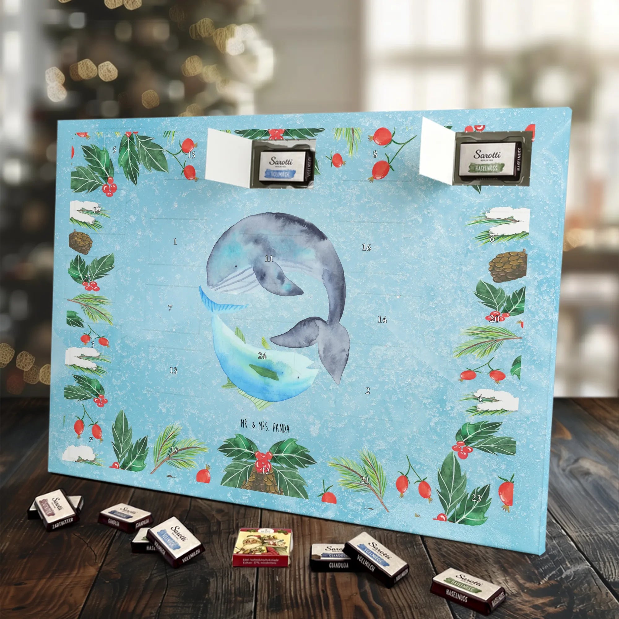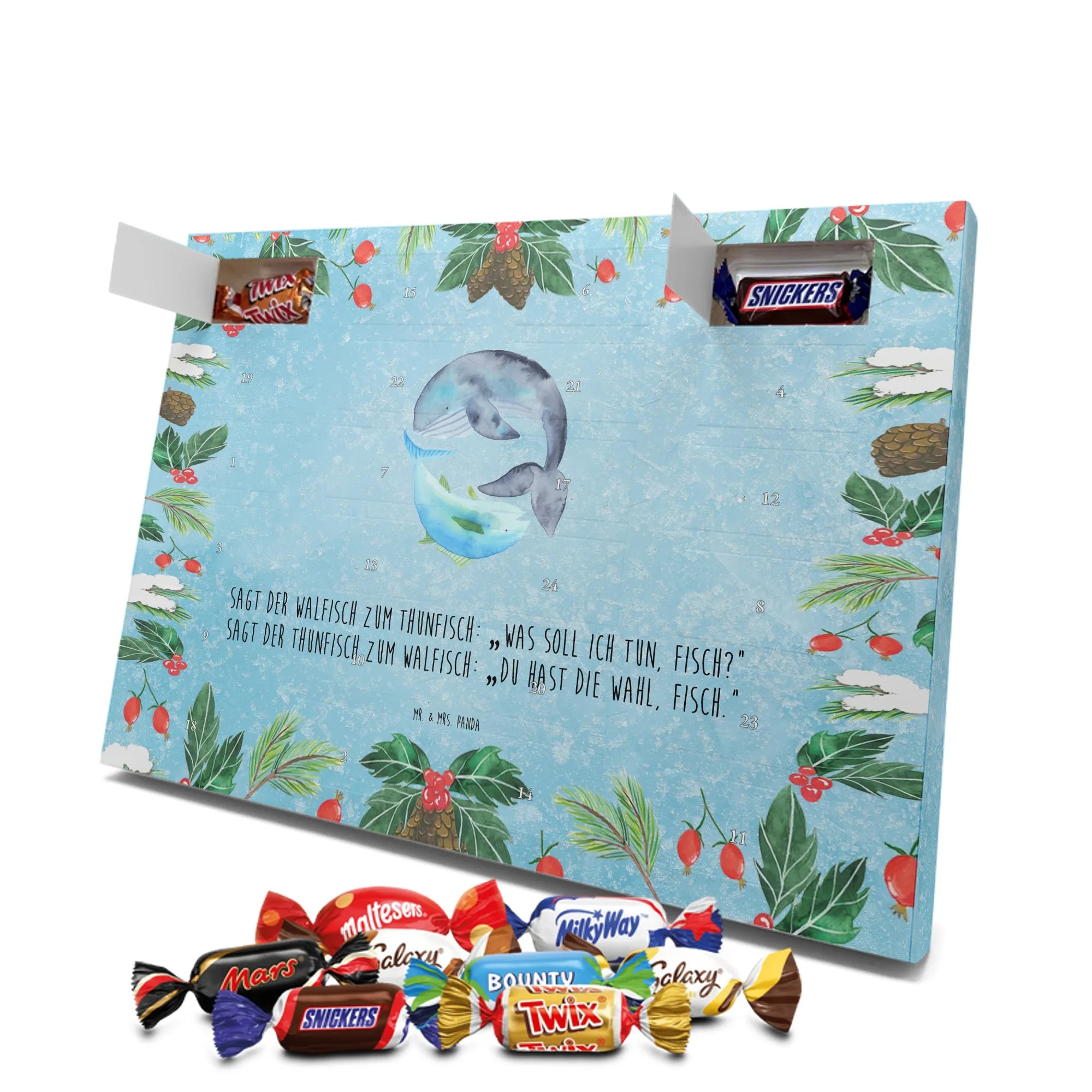 Chocolate advent calendar whale tuna - Classic - with saying - Ice Blue