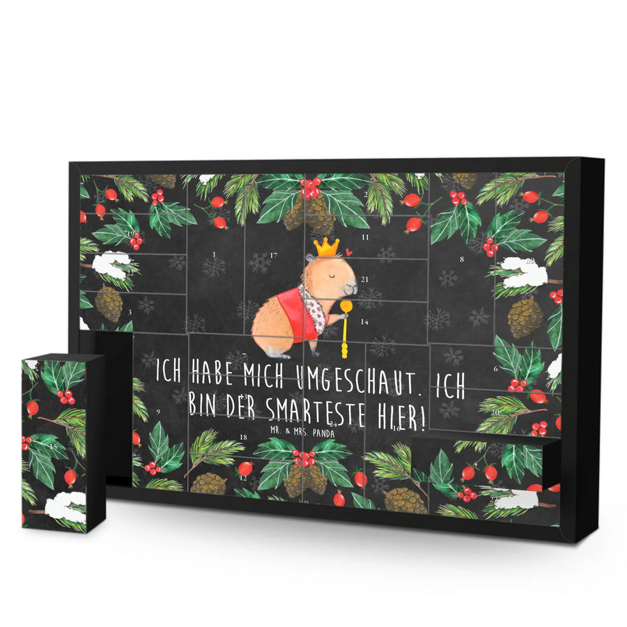 Meet the delightful Capybara King—a symbol of calm and wisdom! Dressed in a sparkling golden crown and a striking purple cloak with a fluffy white collar, he embodies peaceful royalty. With eyes gently closed, he radiates contentment while grasping a golden scepter tightly, exuding warmth. The floating heart signifies his loving nature. Embracing his mantra, 'Ich habe mich umgeschaut. Ich bin der Smarteste hier!' – a charming reassurance that wisdom dwells within us all, waiting to be acknowledged and celebrated.
