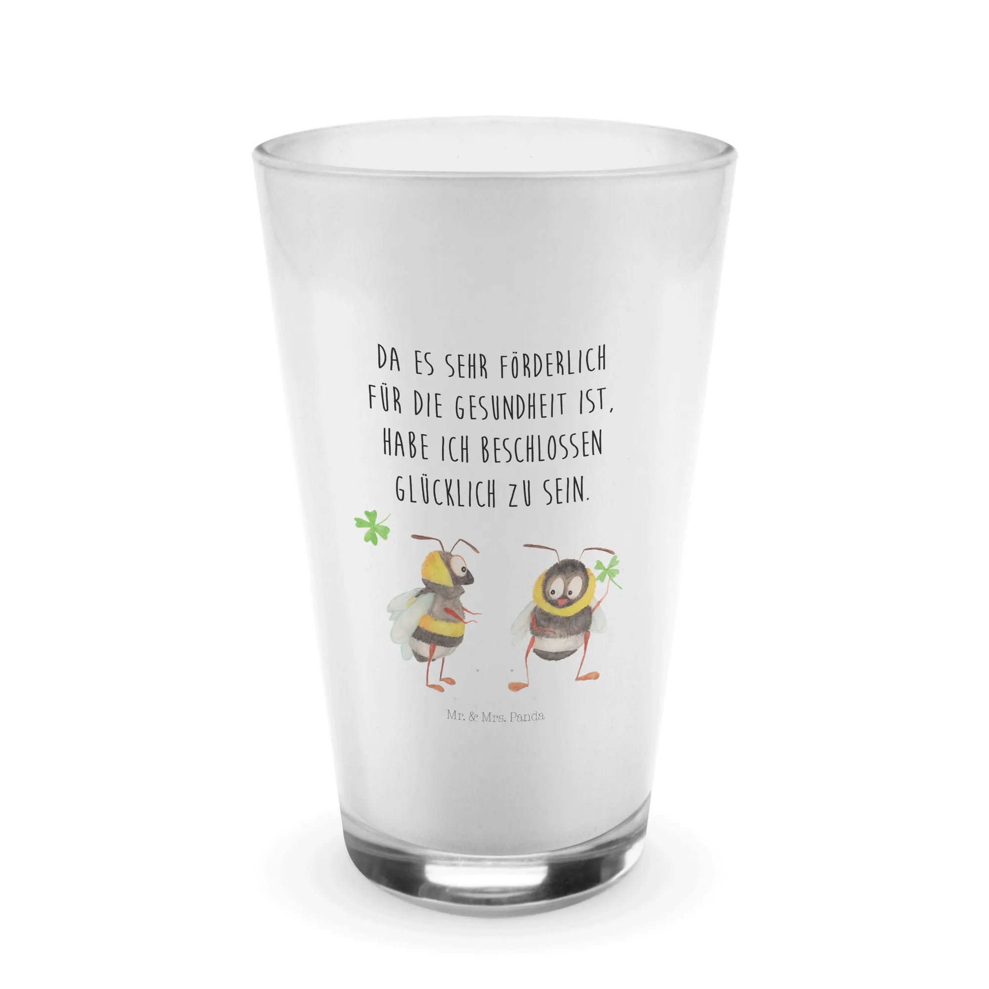 Designed for those who appreciate the little things in life, our glass features an adorable motif of two friendly bumblebees joyously facing each other while holding a bright clover. It embodies the essence of happiness, making it the ideal gift for animal lovers or anyone who enjoys a sprinkle of cheer in their everyday routine.