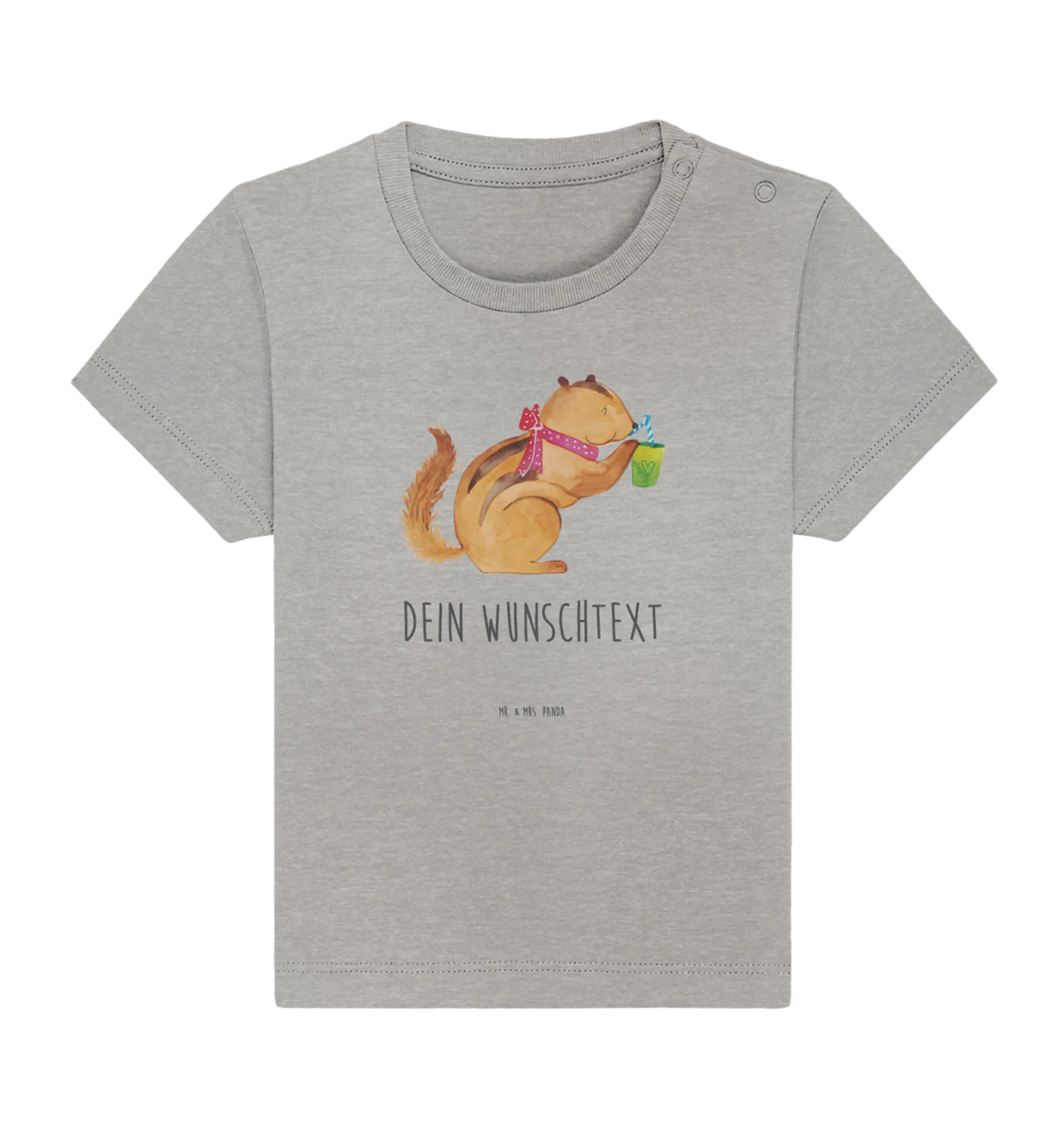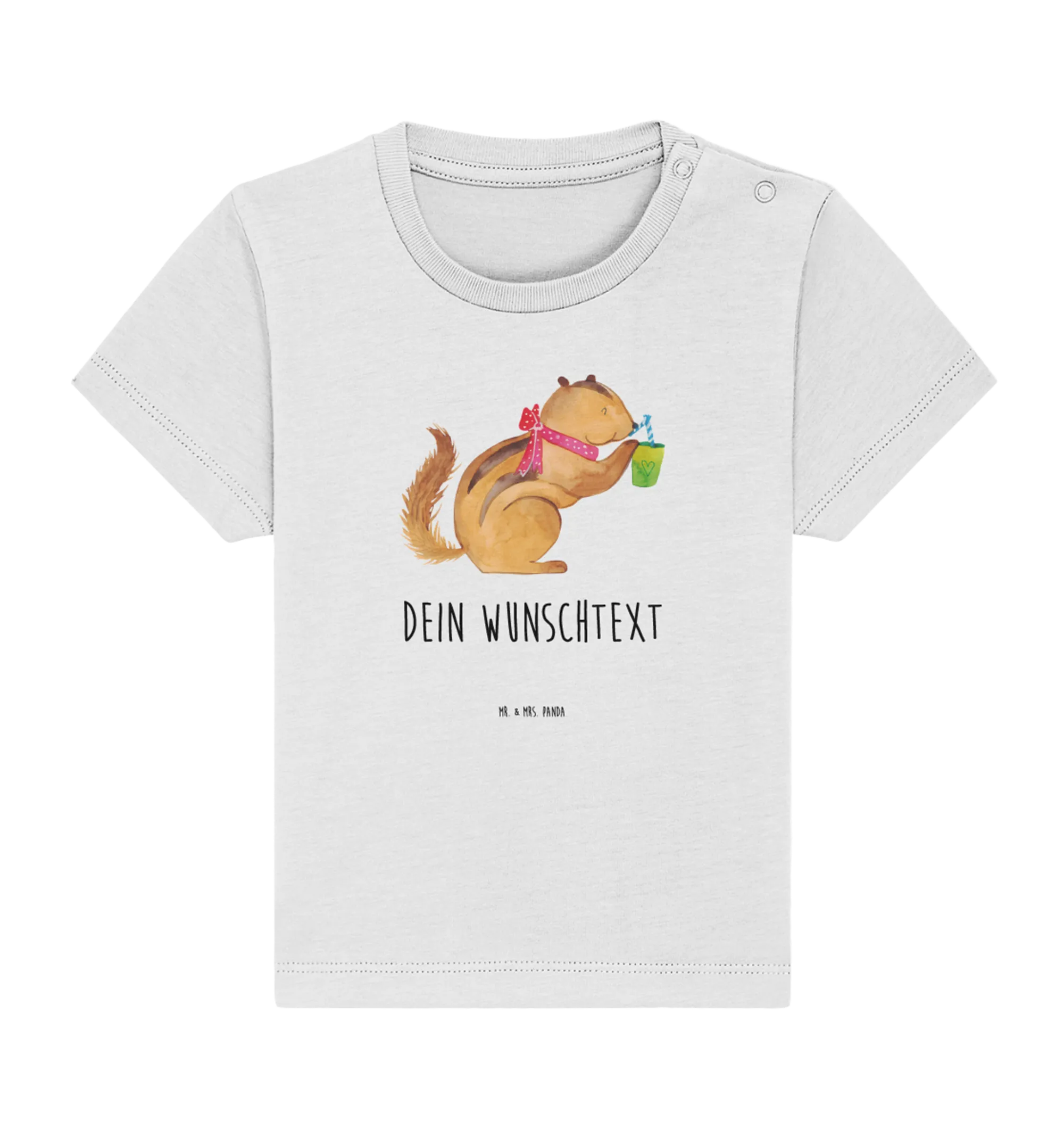 Beautiful personalized organic baby T-shirt from Mr. & Mrs. Panda featuring a premium quality print. Wonderful Material: - 100% cotton (organic quality, ring-spun, combed) - Weight: 155 g/m² - Single jersey - Fit: Regular fit - Button placket with 1 matching color snap and 1 hidden snap on the shoulder for easier dressing