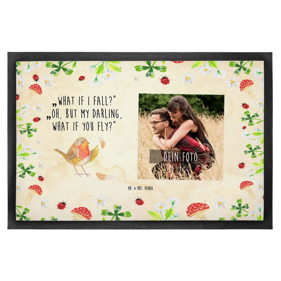 Personalized Photo Doormat robin feathers - 40 x 60 cm