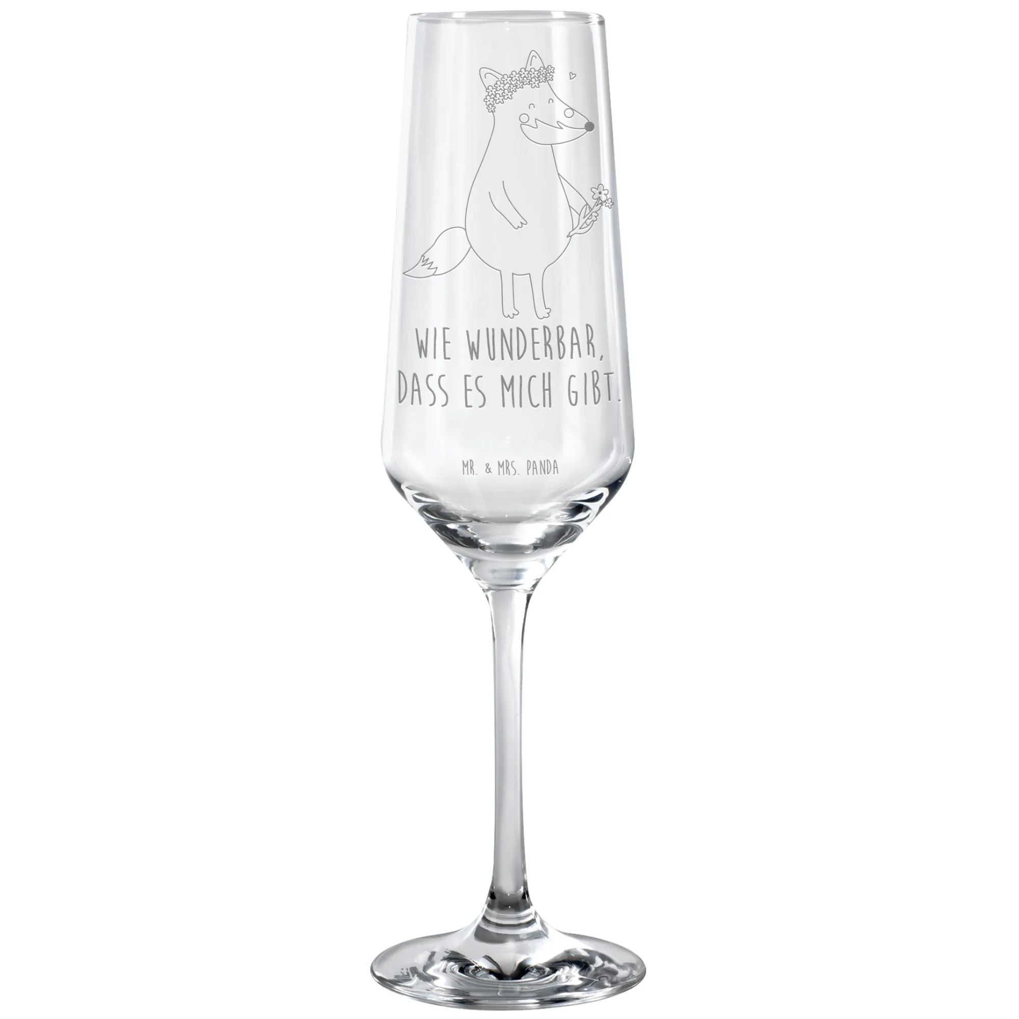 Sparkling wine glass Fox Flower - with saying