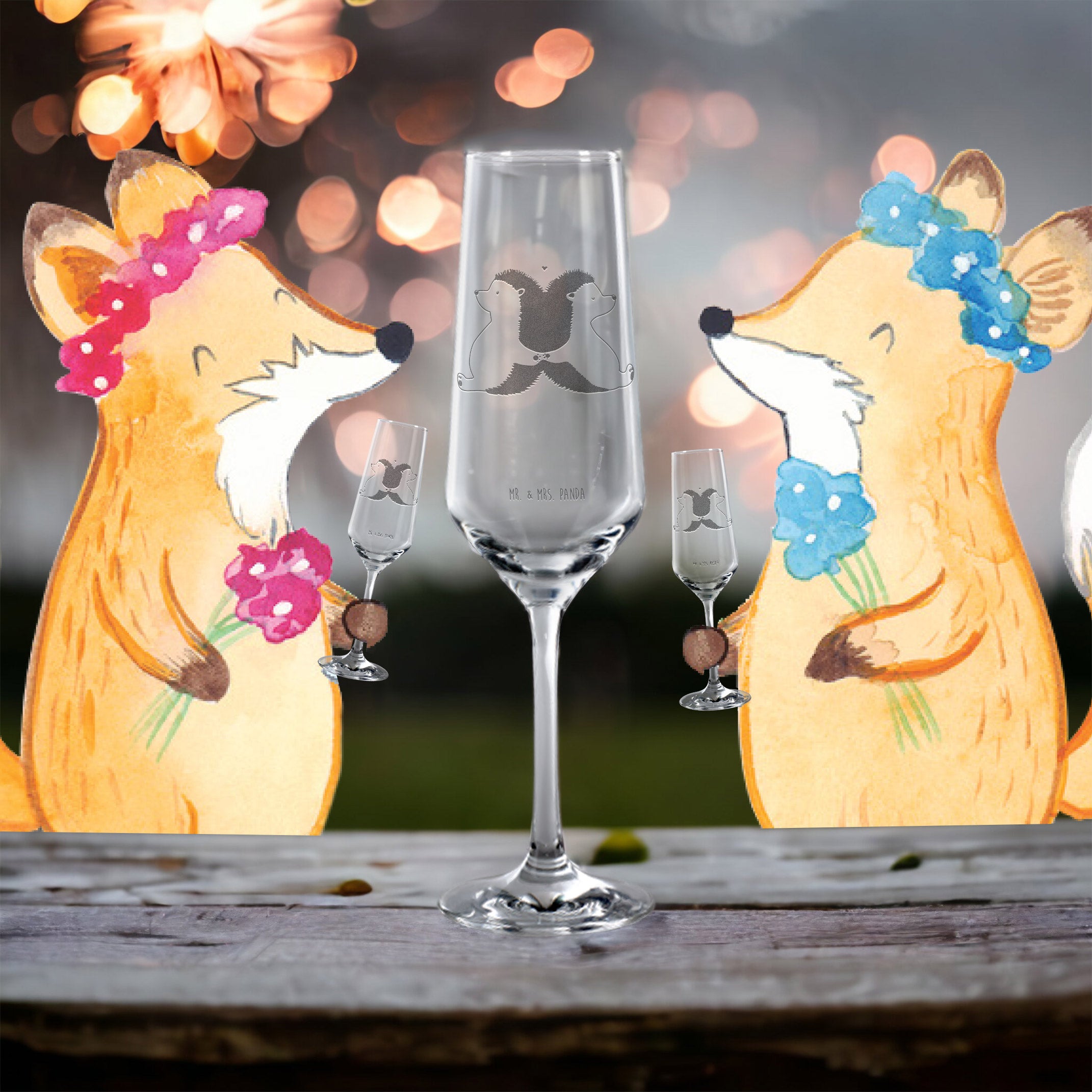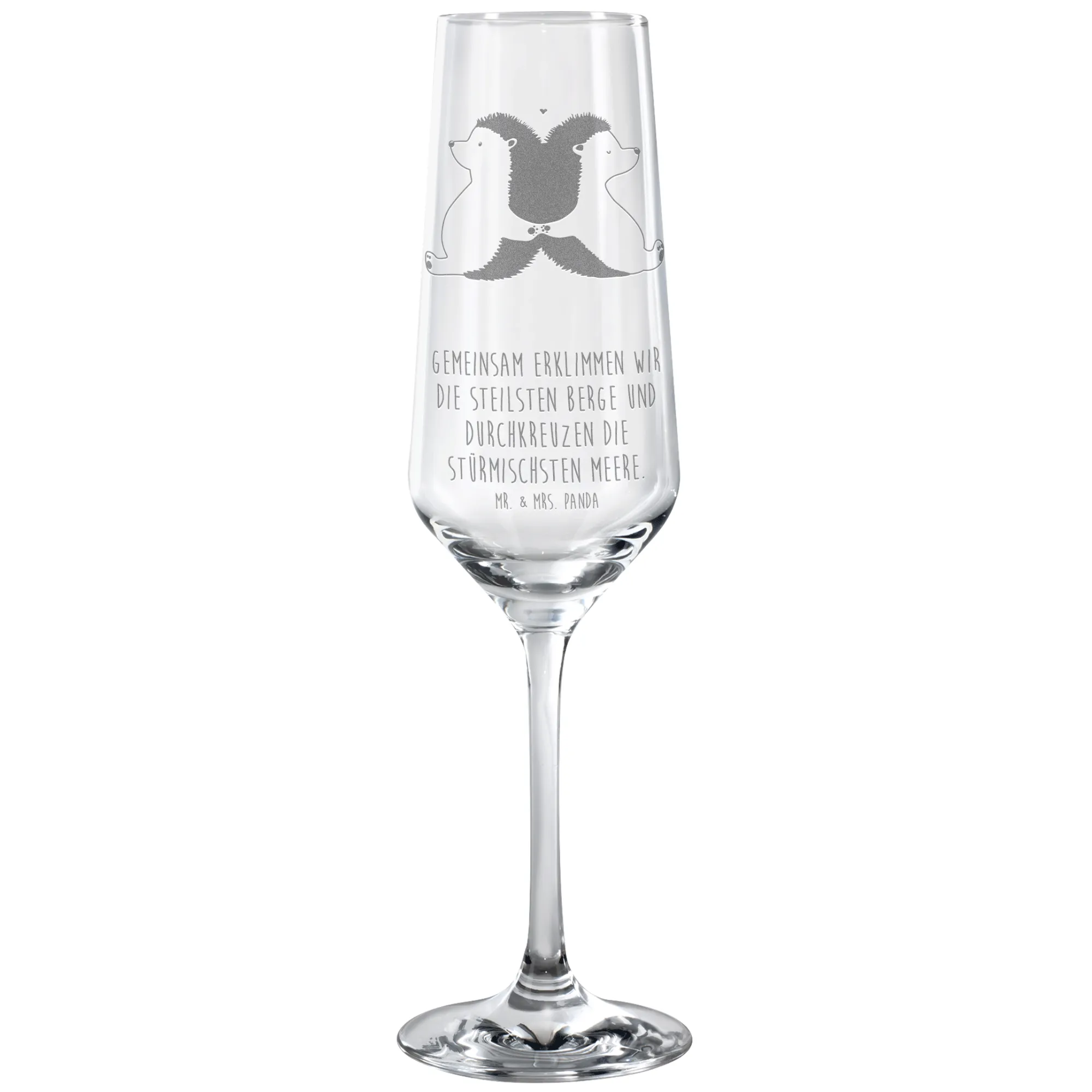 Sparkling wine glass Hedgehogs holding hands - with a saying
