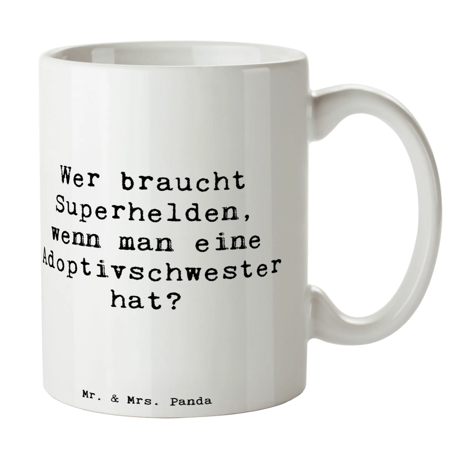 Mug Saying Wer braucht Superhelden, wenn man eine Adoptivschwester hat? - White