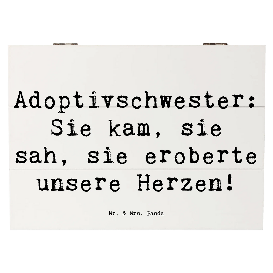 Wooden chest Saying Adoptivschwester: Sie kam, sie sah, sie eroberte unsere Herzen! - 25 x 18 cm - White