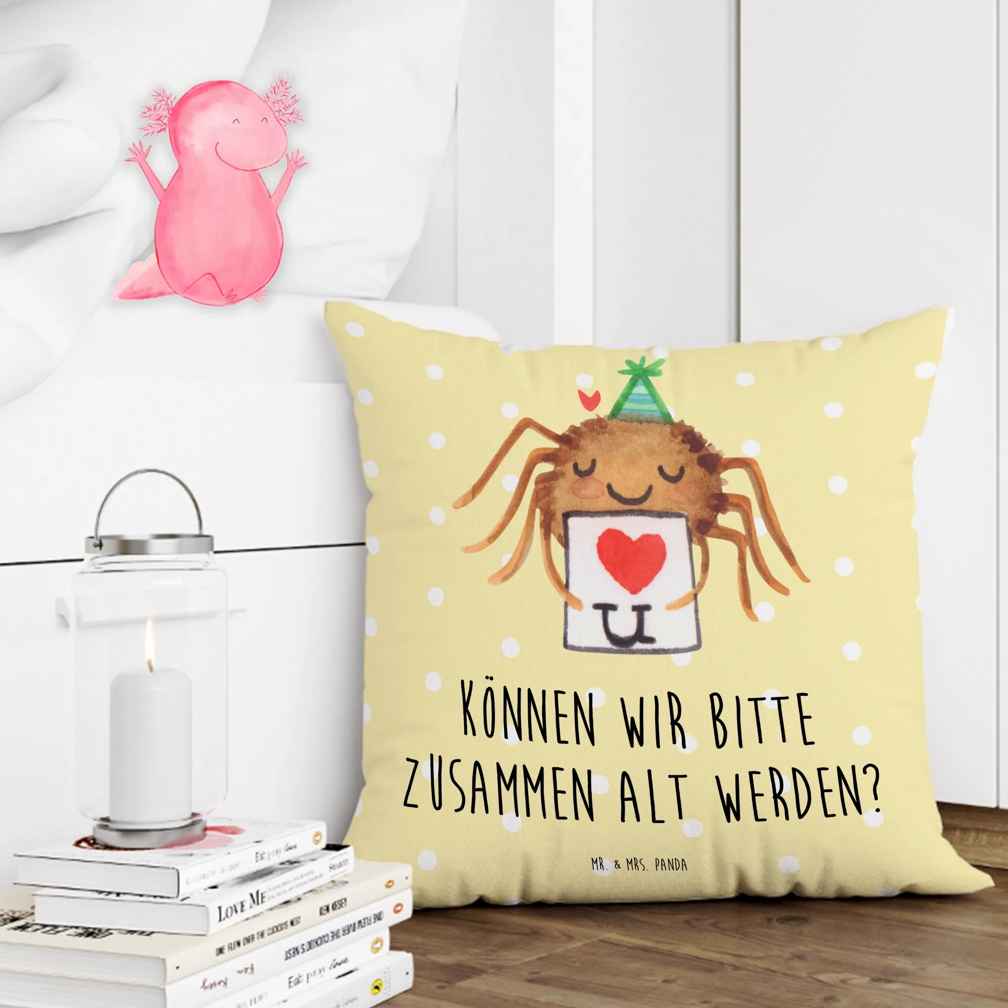 Step into the whimsical realm of the Spinne Agathe collection with Mr. & Mrs. Panda! Inspired by the lovely friendship that blossomed between Mrs. Panda and Agathe the spider, this delightful assortment showcases charming watercolor illustrations paired with uplifting messages. It’s a celebration of quirky friendships and joyful moments that make our lives brighter! Each piece, whether it’s a mug, a cushion cover, or a notebook, is designed to spark joy and spread positivity. Ideal for gifts or simply treating yourself, this collection is crafted for anyone who adores fun and playful designs. Agathe’s playful spirit shines through each creation, inviting everyone to embrace their inner joy and share happiness with the world. Join us in celebrating these little joys with the Spinne Agathe collection! Let’s fill our lives with creativity, laughter, and the cuteness of Agathe!