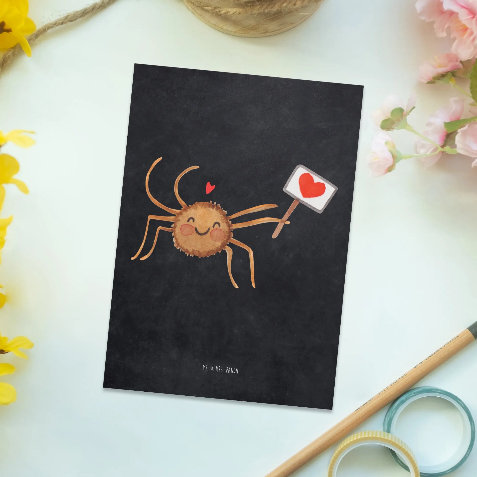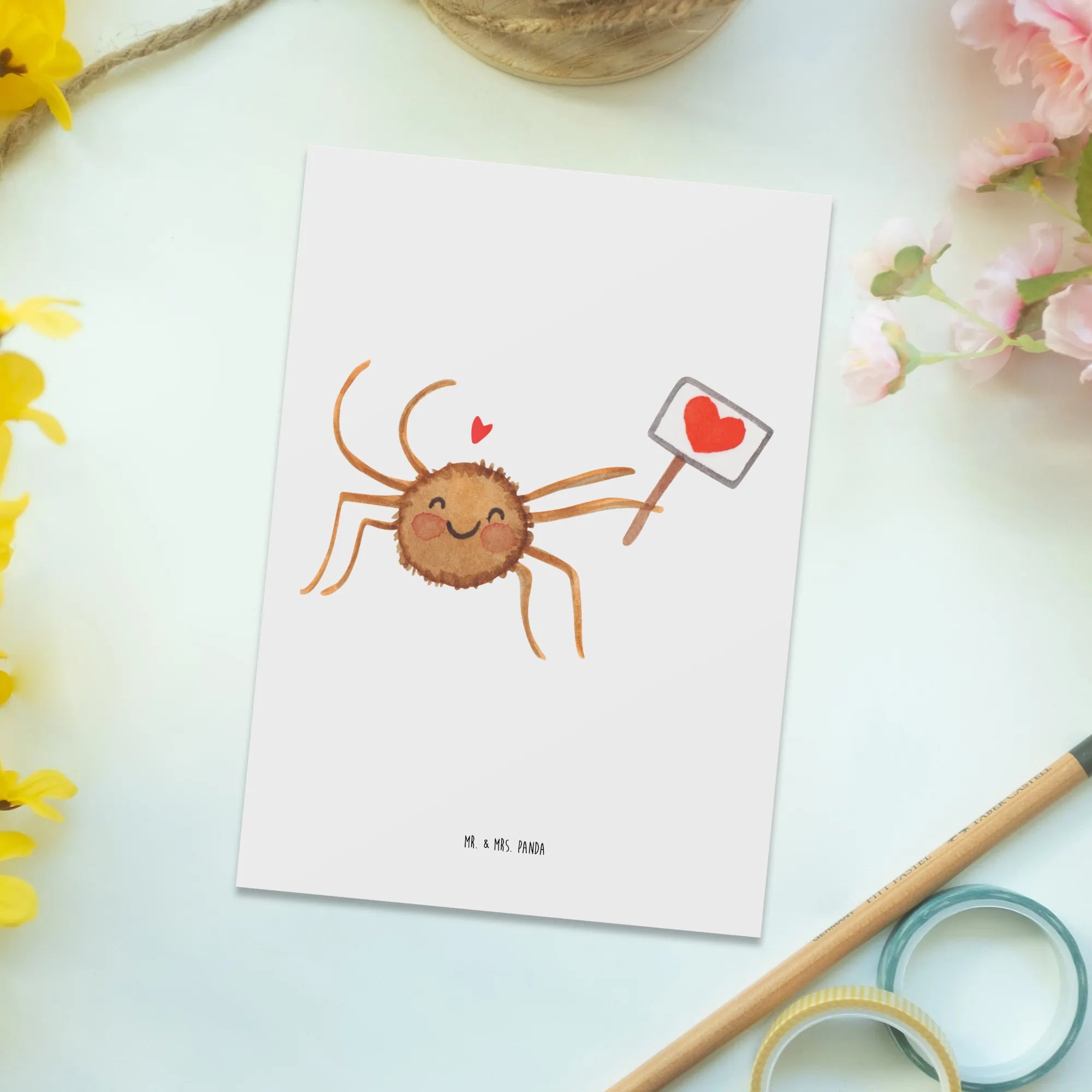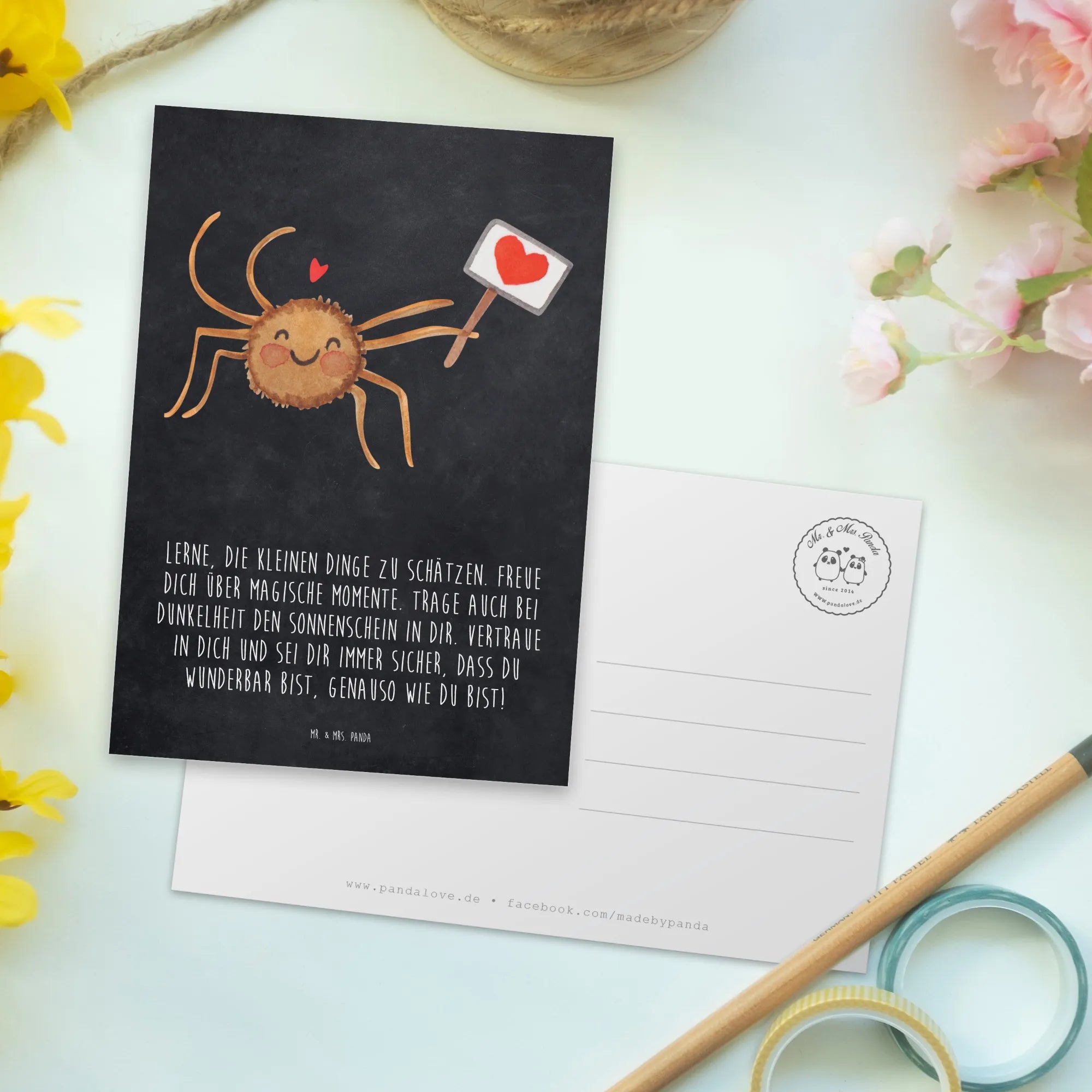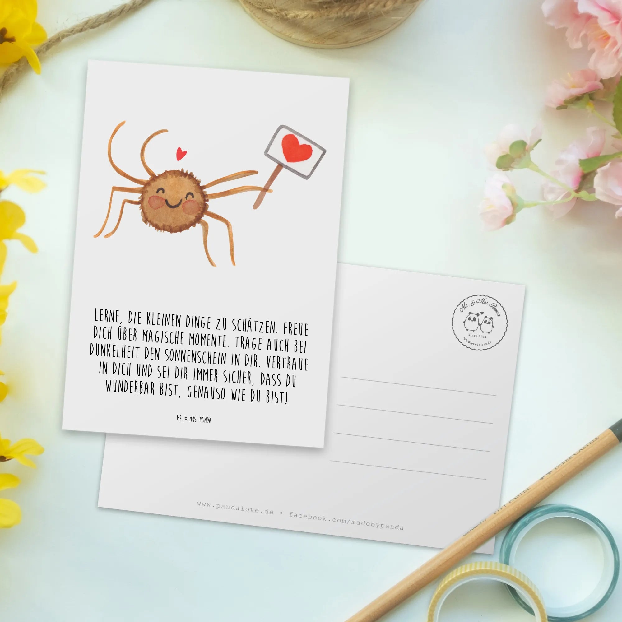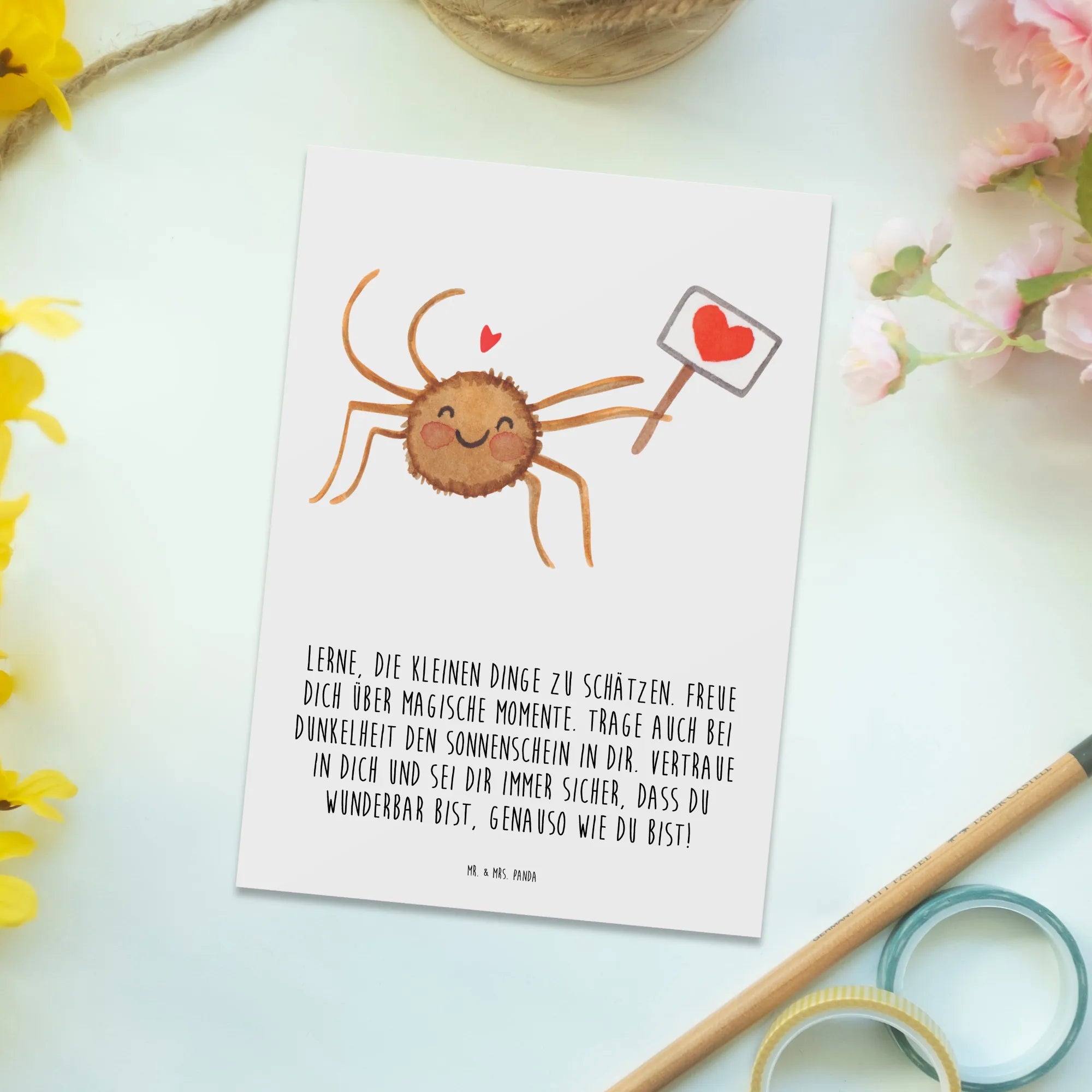 Looking to bring a little sparkle and motivation into someone’s day? Look no further than the Postcard Spider Agatha Motivation from the delightful collection of Mr. & Mrs. Panda! This charming postcard is not just a piece of paper but a heartfelt message turned into a lovely gift card that resonates with positivity and love. Featuring the adorable Spider Agatha, who beams with joy while holding a little heart sign, this postcard is designed to inspire and uplift anyone who receives it.
