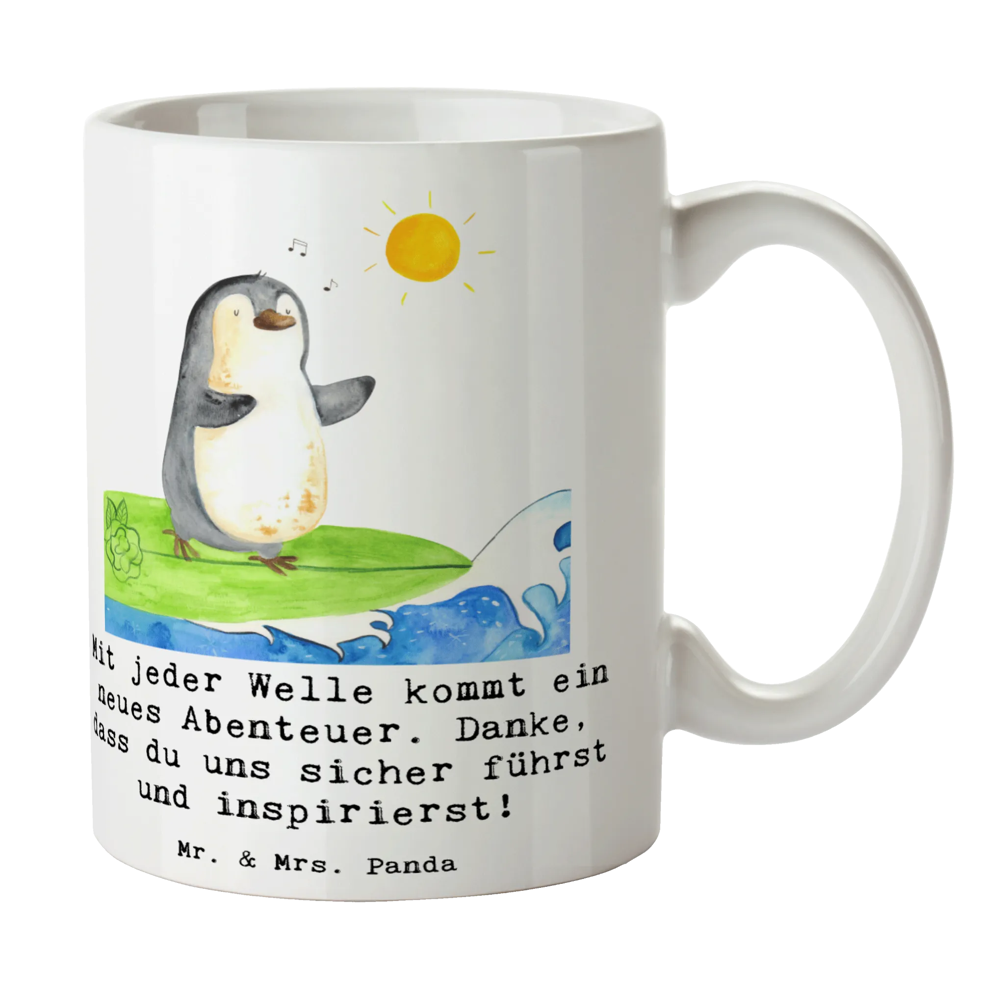 Mug Mit jeder Welle kommt ein neues Abenteuer. Danke, dass du uns sicher führst und inspirierst! Kaffeetasse, Keramiktasse, Tasse mit Zitaten, Geschenktasse, Teetasse, Porzellantasse, Tasse, Tasse mit Motiven, Bürotasse, Geschenk, Sport, Sportart, Hobby, Schenken, Danke, Dankeschön, Auszeichnung, Gewinn, Sportler